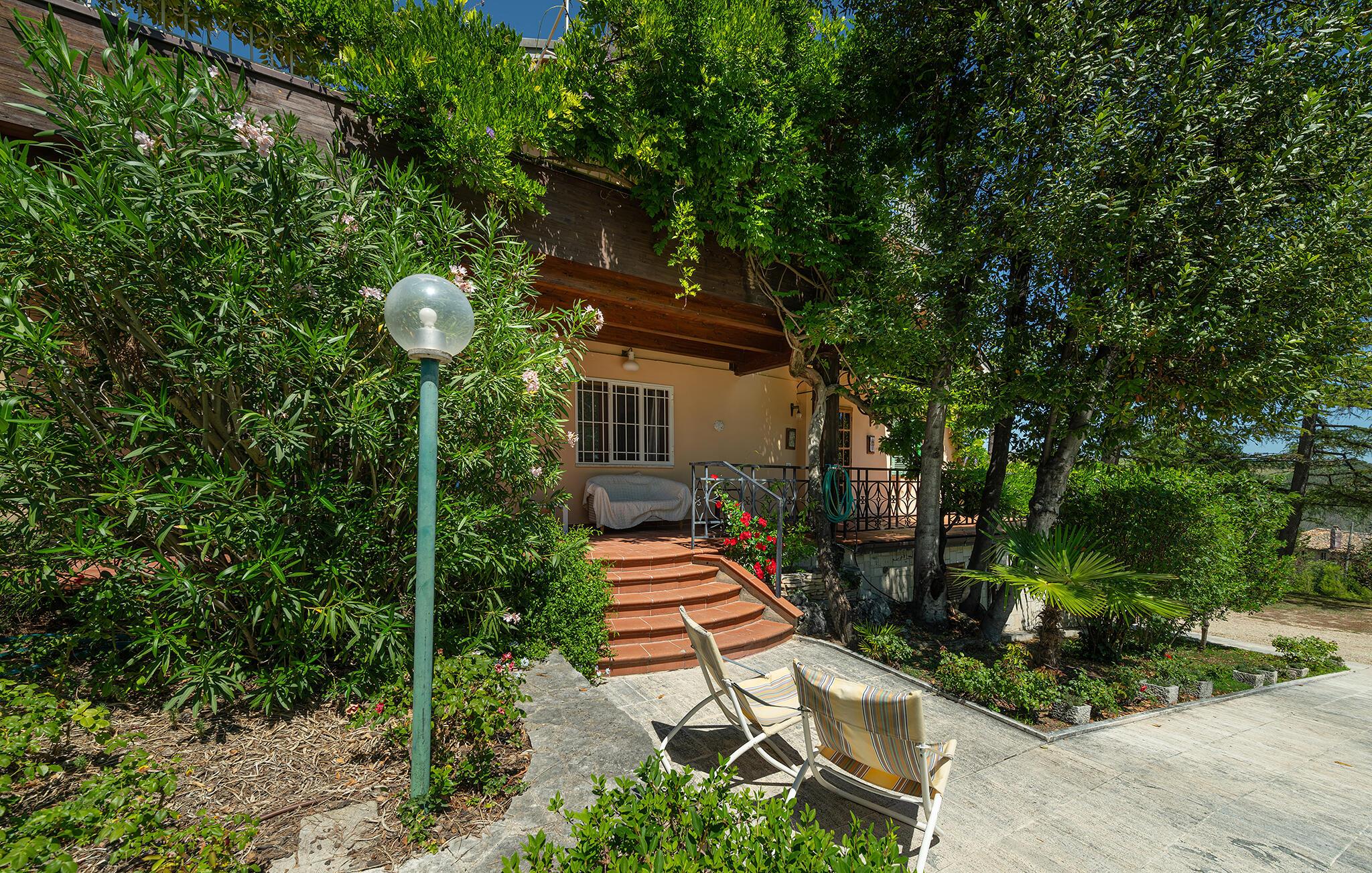 Den rummelige have lægger også op til at slappe af. Nyd solen, mens børnene leger gladeligt eller nyd en god bog i skyggen. Snup en frisk dukkert i poolen og lad blikket vandre over landskabet. I haven er der et lille bord under en romantisk pavillon, ideelt til en kop kaffe eller en aperitif ved solnedgang.