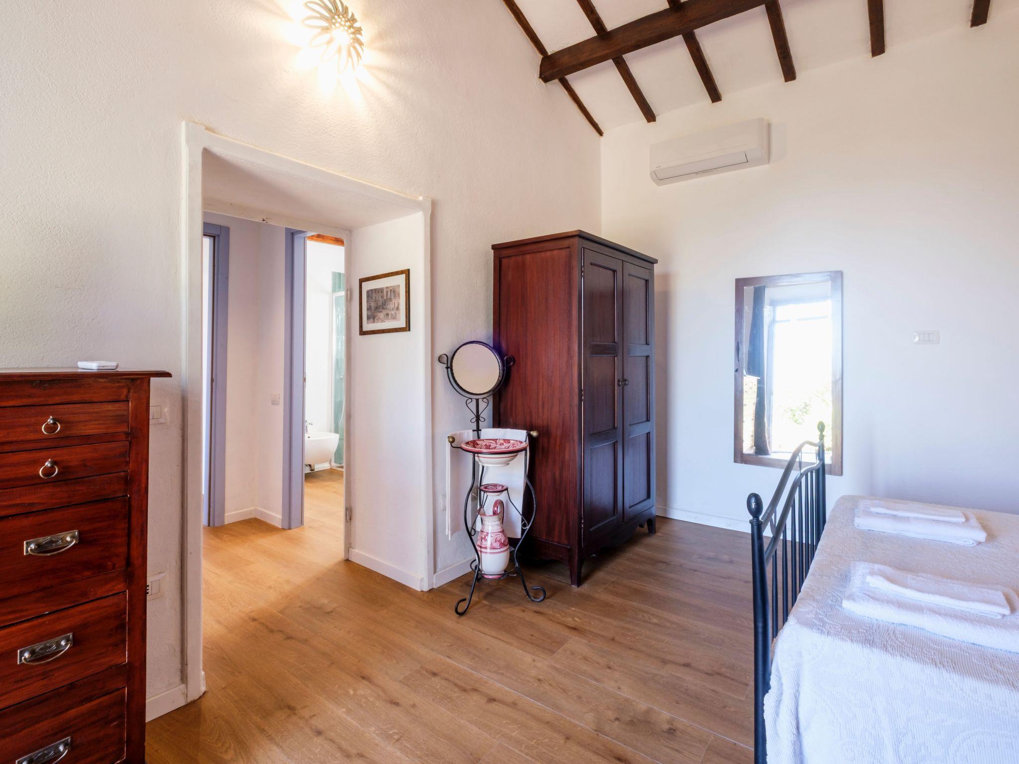 - Room 2 has a surface area of approximately 32 m2 with a double bed, a single bed, an en-suite bathroom (complete with WC, Bidet, comfortable shower with overhead shower head, washbasin), walk-in wardrobe, large window with a view of the Gulf of Olbia.