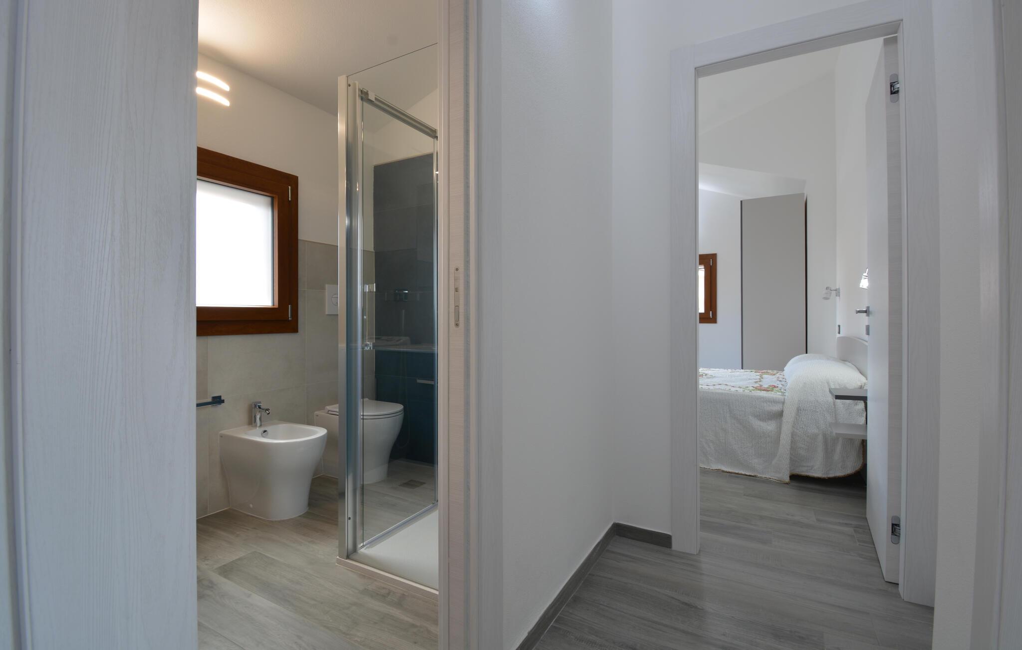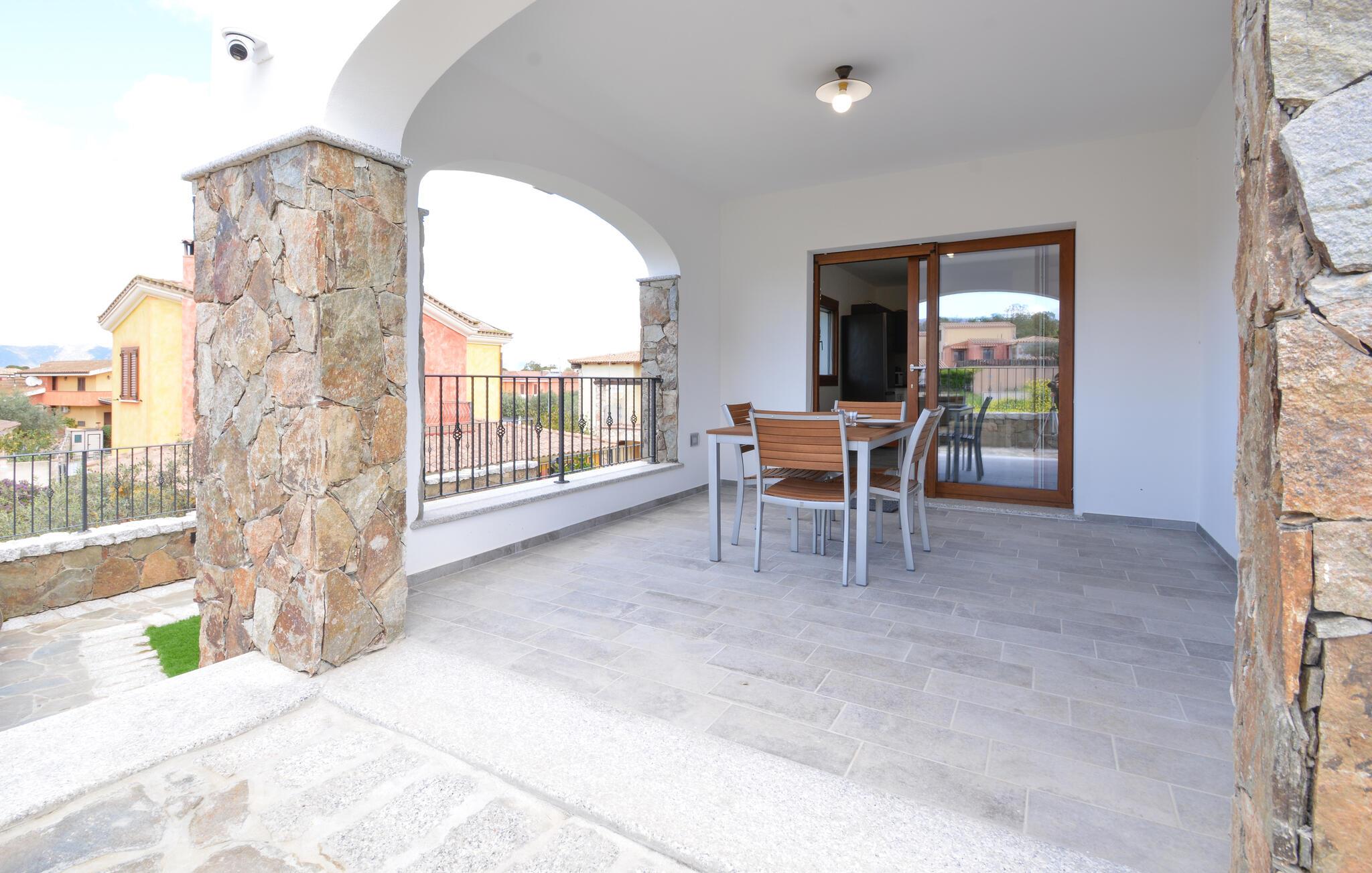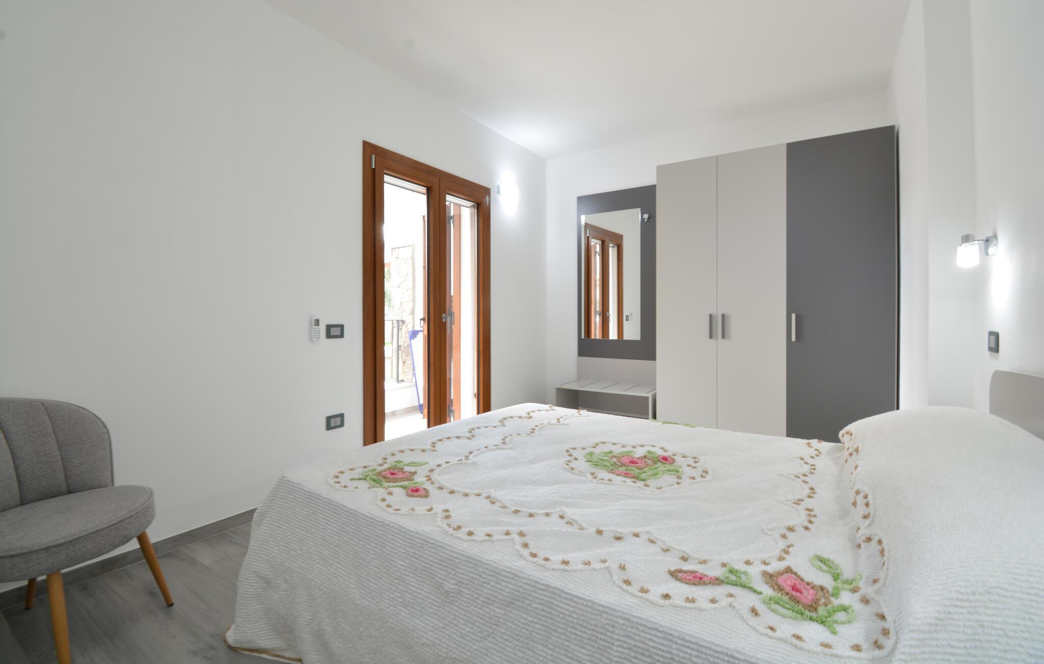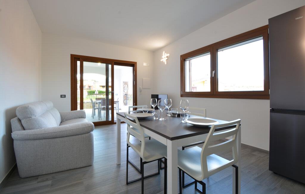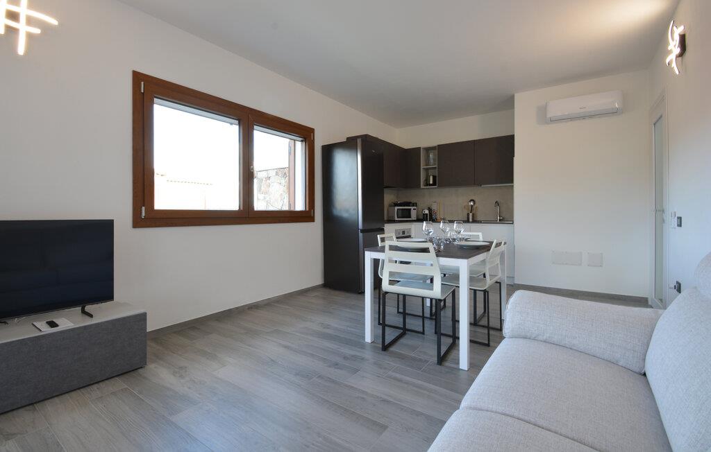Velkommen til denne komfortabelt indrettede ferielejlighed, hvor I sammen med dem, I holder af, kan koble af fra hverdagen og udforske alt det, Sardinien har at byde på. Tilbered middelhavsretter i det åbne køkken med friske råvarer fra markedet, tag plads ved det indbydende spisebord, og nyd den behagelige brise gennem rummene under en afslappende middagspause på den komfortable sofa.