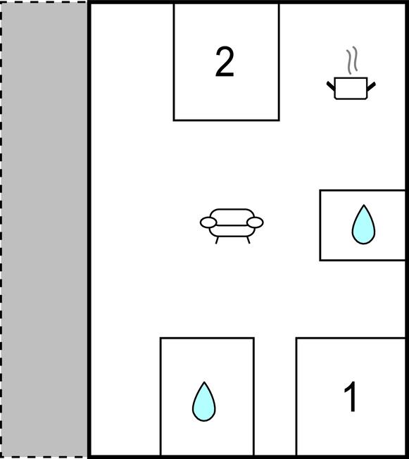 Tekøkken - 1 Soveplads. (Sofa, madras eller lignende).
