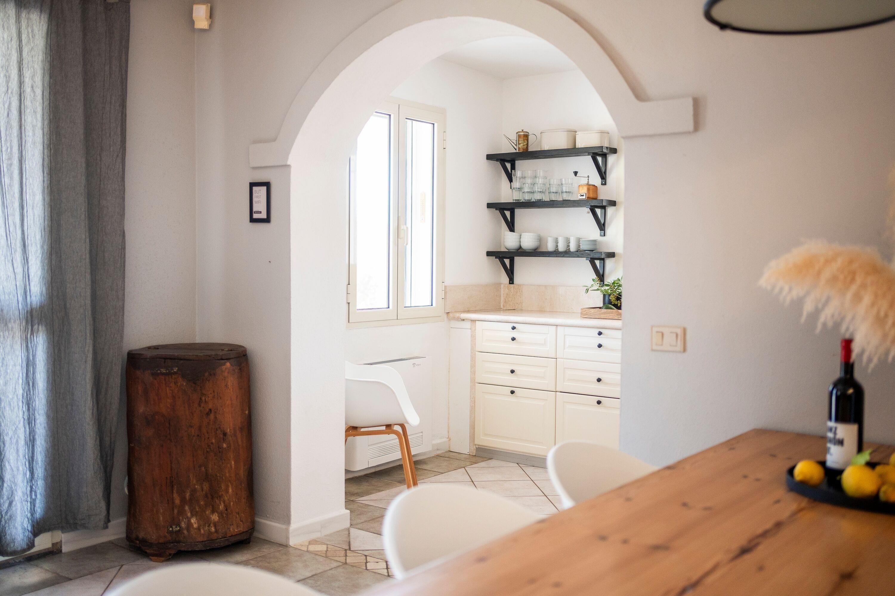Die VILLA JANNA [&] PRATA kombiniert exotische Wohnelemente mit einem klassischen und mediterranen Design. Die Küche ist offen gestaltet und mit dem Wohnzimmer verbunden.
