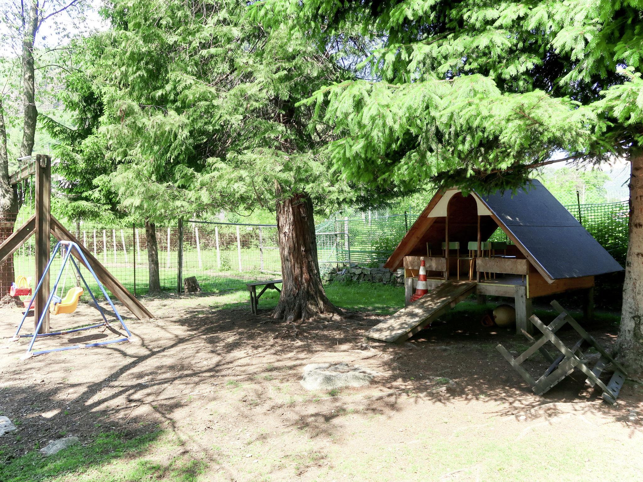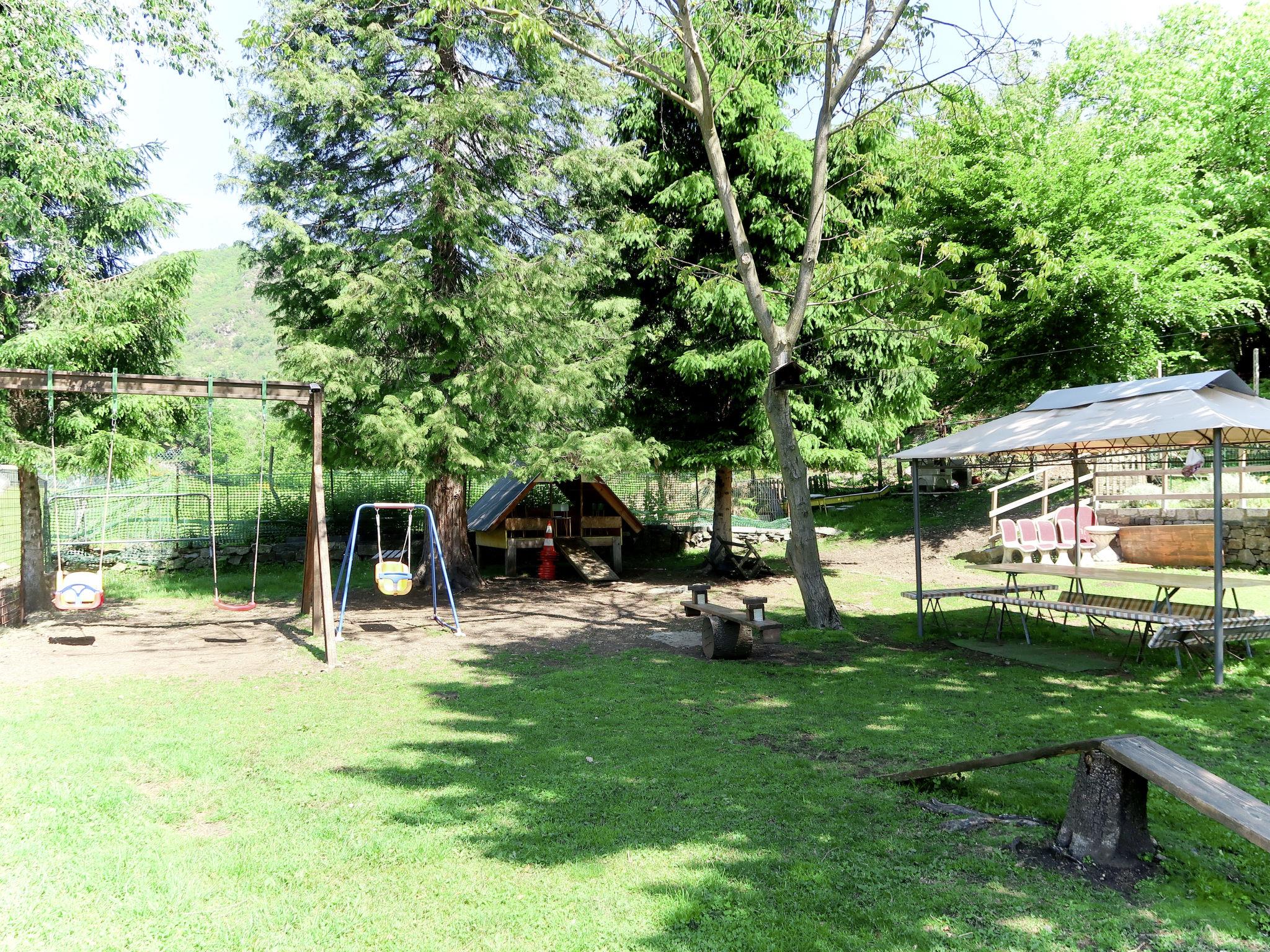 Omegna 12 km from Orta San Giulio: Apartment house "Les Maisons della Fattoria", 3 storeys. 4 apartments in the property. 2 km from the centre of Omegna, on the outskirts, 17 km from the centre of Mergozzo, 18 km from the centre of Verbania, 2 km from the lake. For shared use: property 1'800 m2 (fenced), terraced garden plants and trees, meadow. Pergola, garden furniture, barbecue, children's playground. Private: property 250 m2, garden lawn. In the house: washing machine (for shared use, extra). Available: bicycles. Parking at the house. Shop 100 m, bus stop 7.2 km. Please note: the owner lives on the same property. Animals in the neighbourhood.