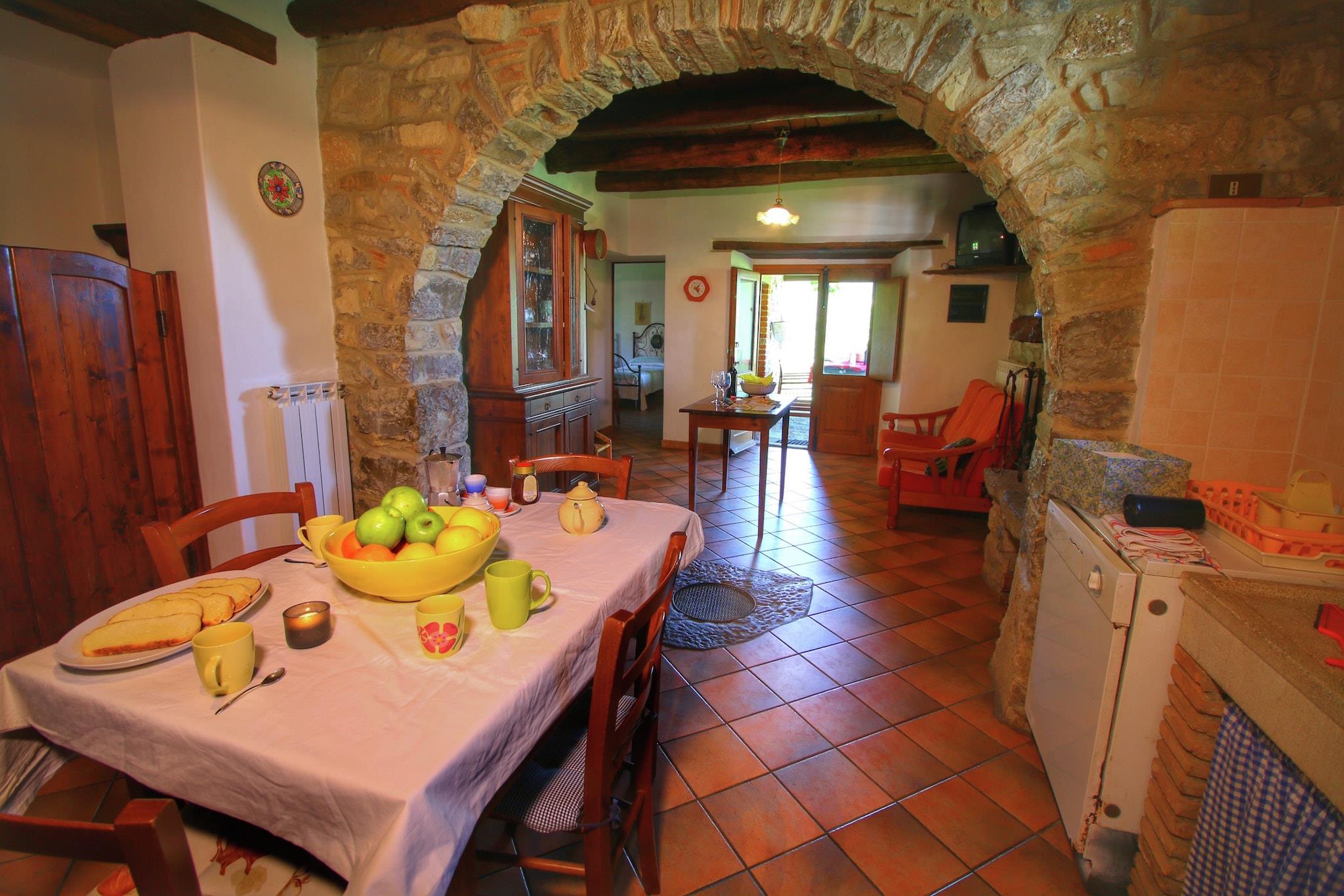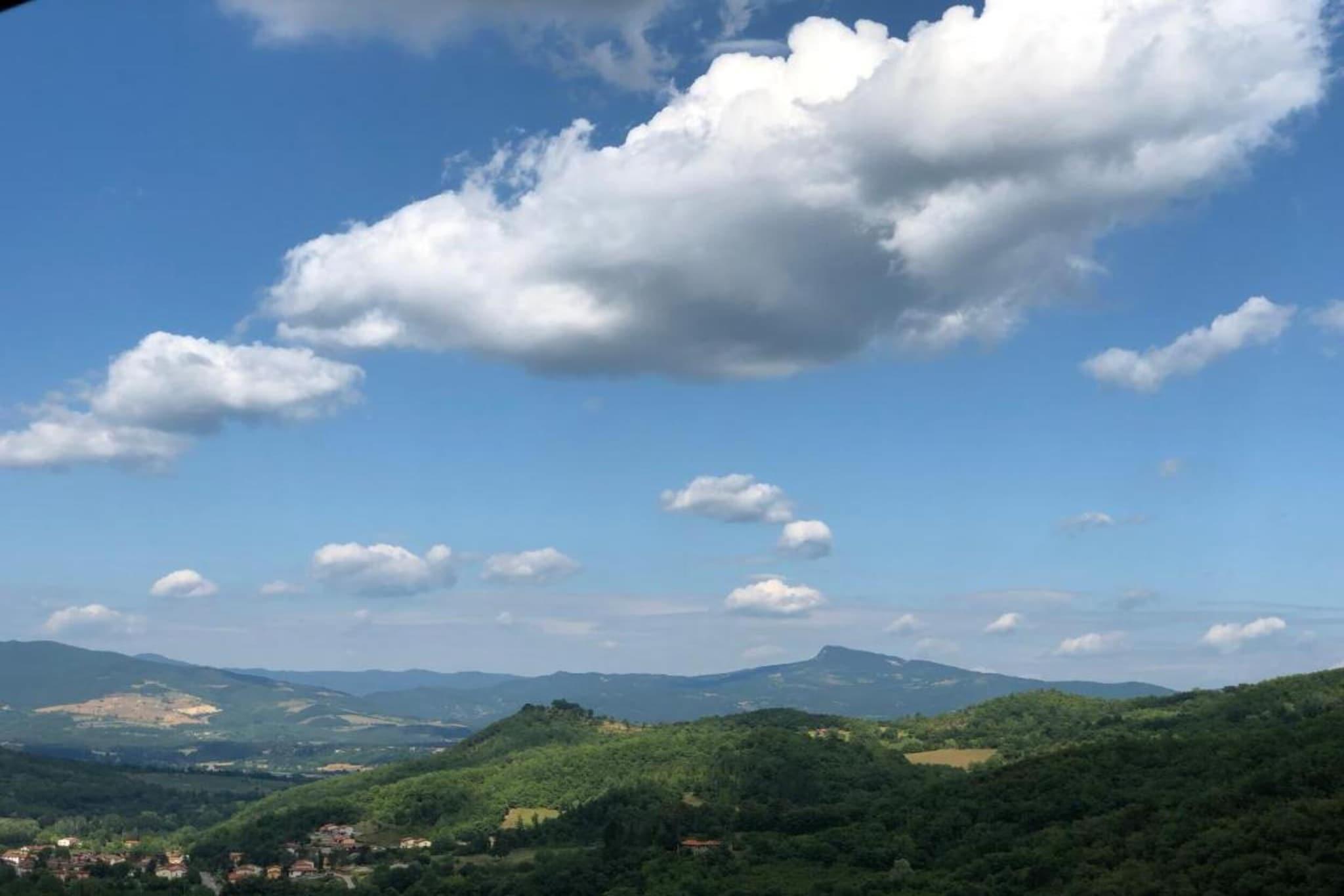 Dette kæledyrsvenlige feriehus ligger i en bondegård med fælles swimmingpool og grill til at holde en gallastund. Du kan nippe til en kop kaffe, mens børn og kæledyr render rundt og fniser i den indhegnede have, som har udsigt til en fantastisk grøn udsigt over Teggina-dalen. Dette sted er ideelt for små familier og grupper på 4 personer komfortabelt._x000D_ _x000D_ Dette sted er en ideel base for kulturrejser til Firenze, Arezzo og andre toscanske byer. De almindelige forsyninger og restauranter ligger 3 km derfra. Der er en sø, som også ligger 8 km væk. Den nærmeste by er Ortignano Raggiolo, som er omkring 3 km væk, og som er et must at besøge. Du kan nemt turnere Siena, Firenze, Lucca, Pisa Livorno herfra._x000D_ _x000D_ Med privat have, veranda og fuldt udstyret moderne åbent køkken. Parkering er tilgængelig på stedet. Stuen og soveværelserne har luksuriøst interiør og smagfuld indretning._x000D_ _x000D_ Den nærmeste lufthavn ligger i en afstand af 120 km._x000D_