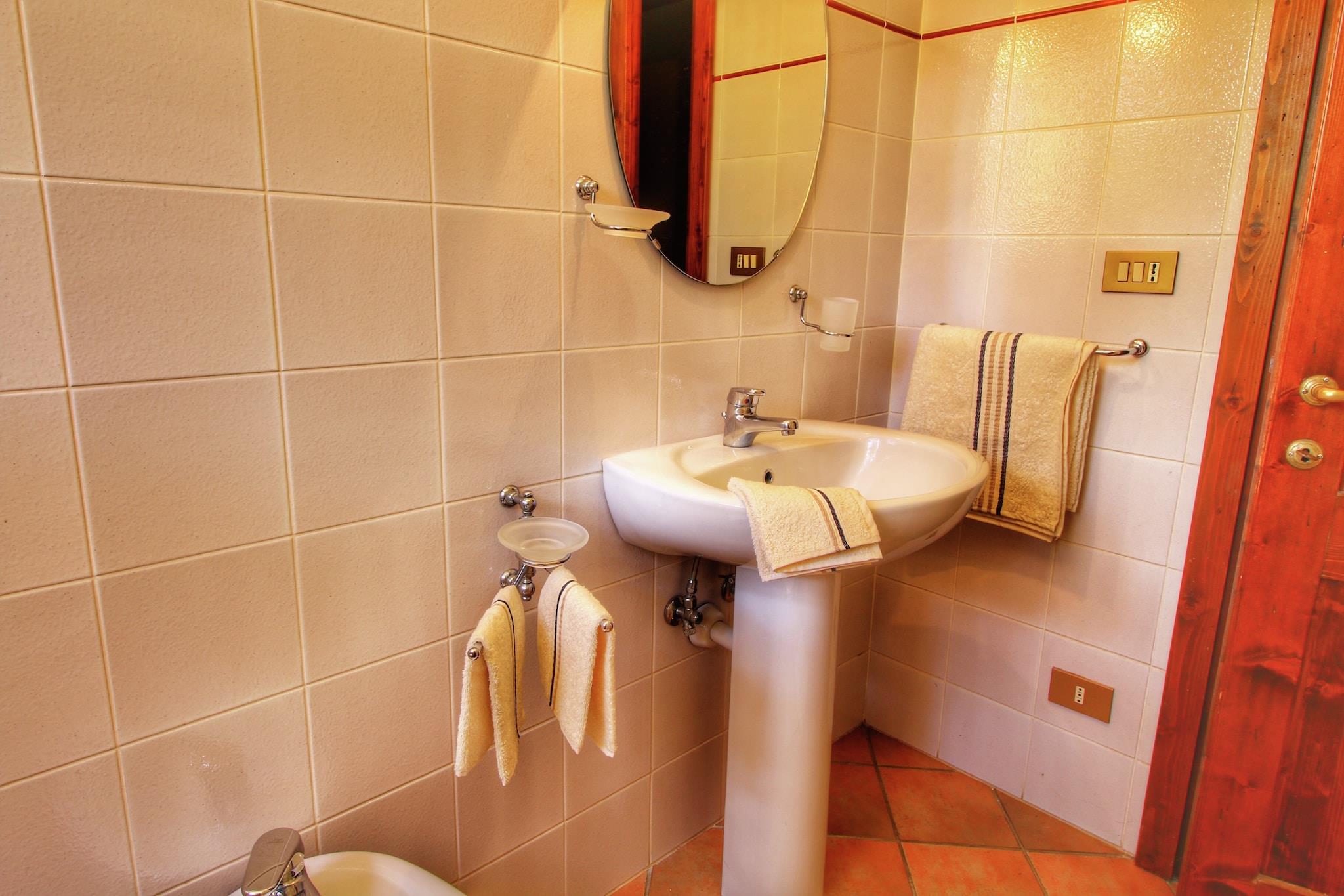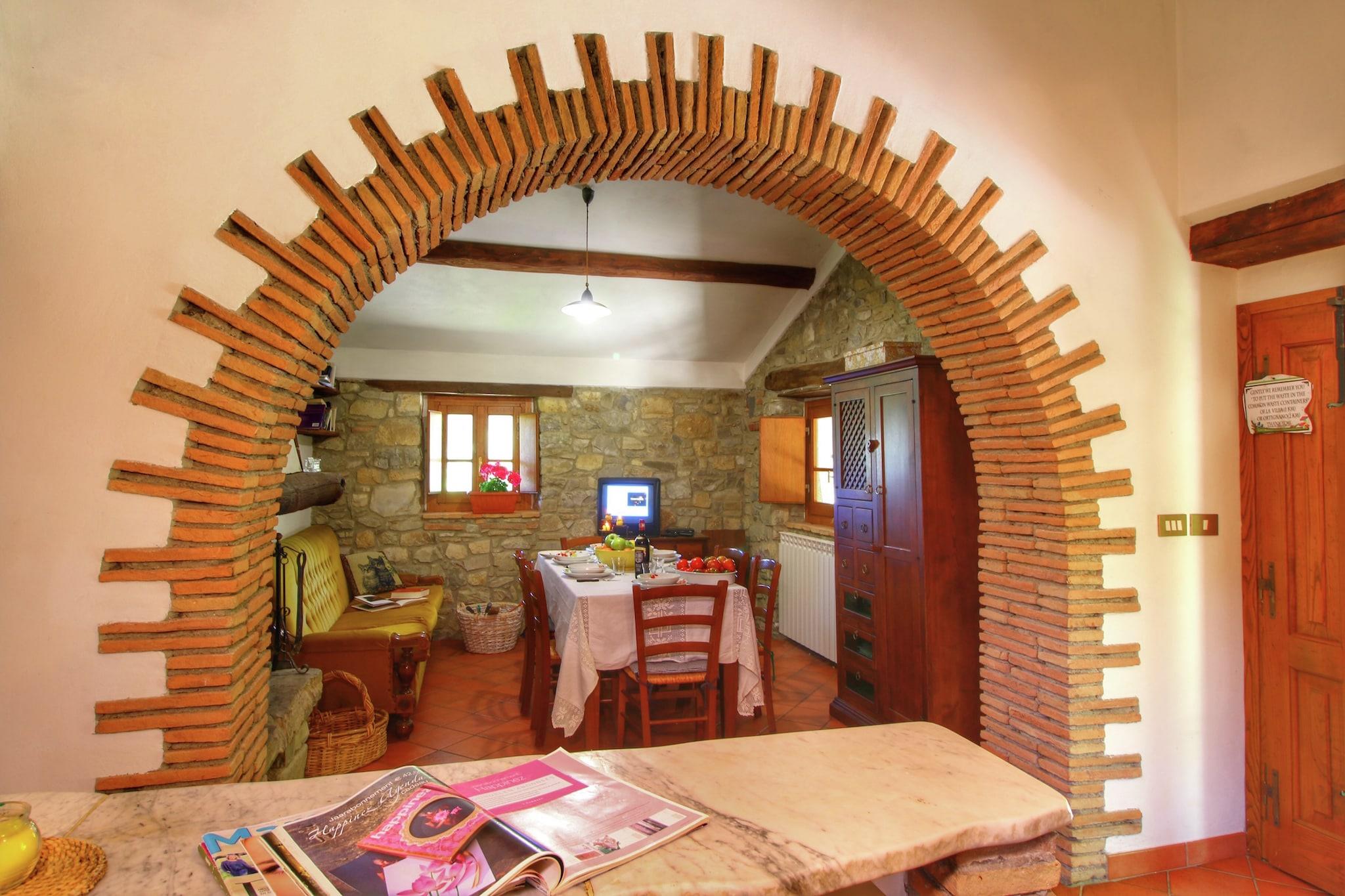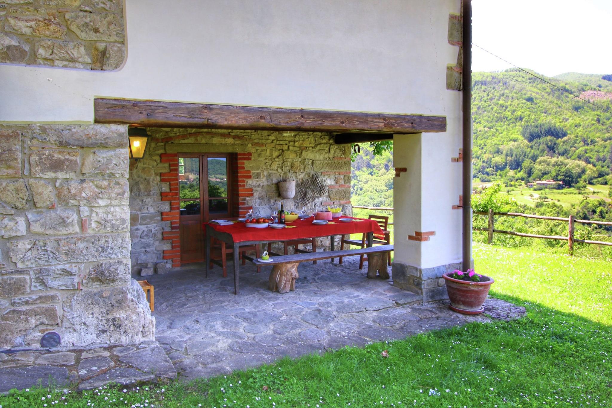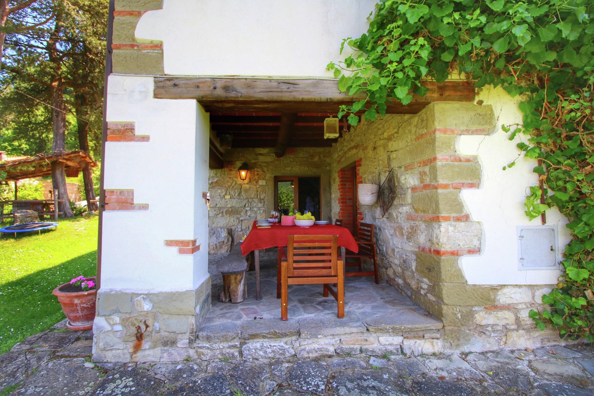 Dette kæledyrsvenlige feriehus er en rummelig bondegård med 5 soveværelser, der komfortabelt kan rumme op til 10 gæster. Beliggende i skoven tilbyder det et afslappende oase med en privat swimmingpool og et grillområde, perfekt til at nyde mindeværdige sammenkomster og udendørs måltider. _x000D_ _x000D_ Ideelt beliggende som en base for at udforske Toscana, er ejendommen inden for rækkevidde af kulturelle ture til Firenze, Arezzo og andre charmerende toscanske byer. Grundlæggende forsyninger og spisemuligheder er placeret omkring 3 km væk, mens byens centrum er omkring 8 km fra huset. En nærliggende sø, også omkring 8 km væk, giver mulighed for fritids- og udendørsaktiviteter. Den nærmeste by, Ortignano Raggiolo, ligger kun 3 km væk og kan varmt anbefales til et besøg. For at spise ude, over for slottet i Poppi, finder du en stærkt anbefalet restaurant, der serverer hjemmelavet pasta og toscanske vine - helt klart et besøg værd! Derudover tilbyder Alimentari Ghega Bibbiena et udvalg af lækre, typiske toscanske produkter, perfekt til at bringe en smag af regionen hjem._x000D_ _x000D_ Stuehuset har en privat have, en veranda til udendørs afslapning og et fuldt udstyret moderne åbent køkken til at tilberede lækre måltider. Parkering er tilgængelig på stedet. Interiøret i stuen og soveværelserne er luksuriøst og smagfuldt indrettet, hvilket skaber en varm og indbydende atmosfære._x000D_ _x000D_ Den nærmeste lufthavn ligger cirka 120 km fra ejendommen.