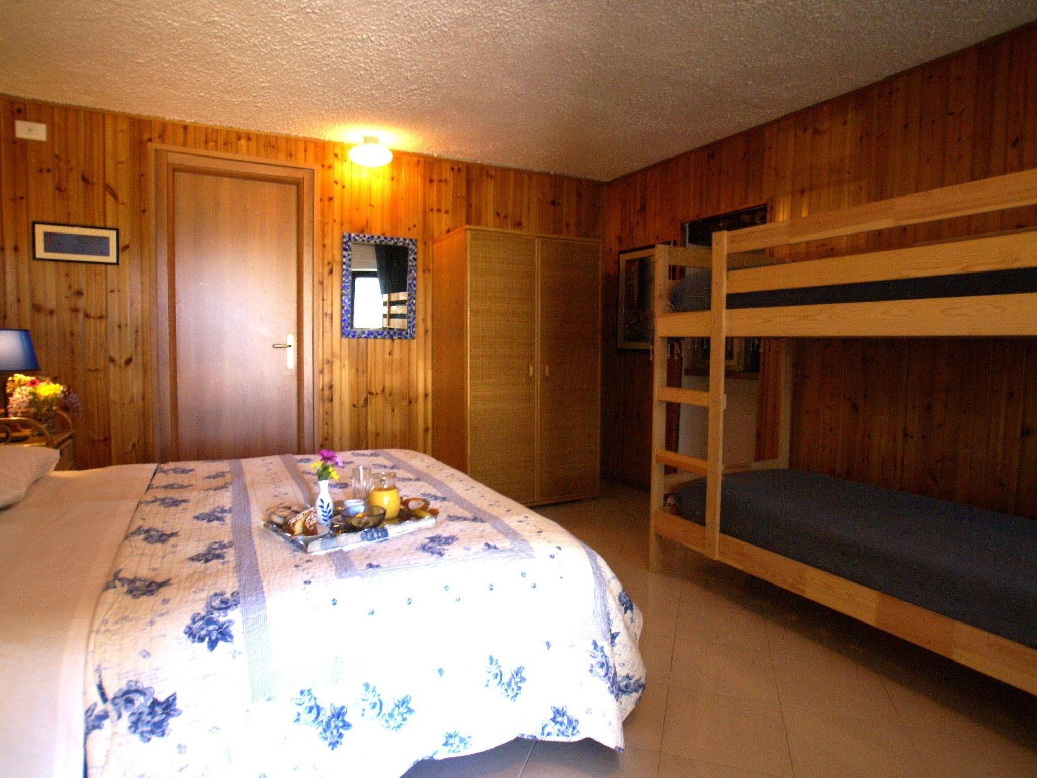 The interior is carefully arranged to accommodate guests in maximum comfort. The flat features two bedrooms, one double and one quadruple with a double bed and a bunk bed, each with its own private bathroom with shower, guaranteeing privacy and comfort. The spacious and bright living room is furnished with a double sofa bed and a fully equipped kitchenette with fridge, oven and dishwasher, perfect for preparing meals with friends.