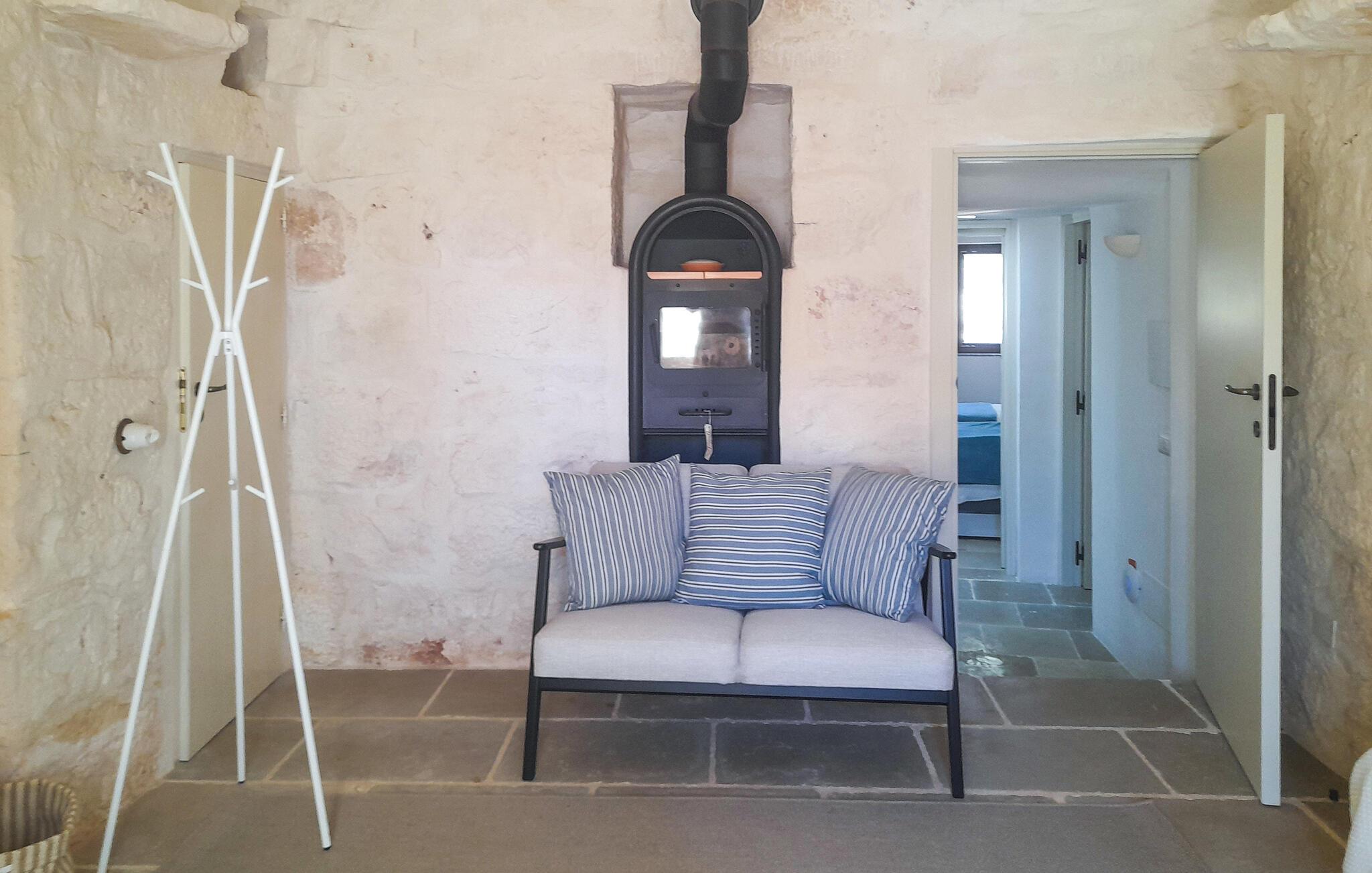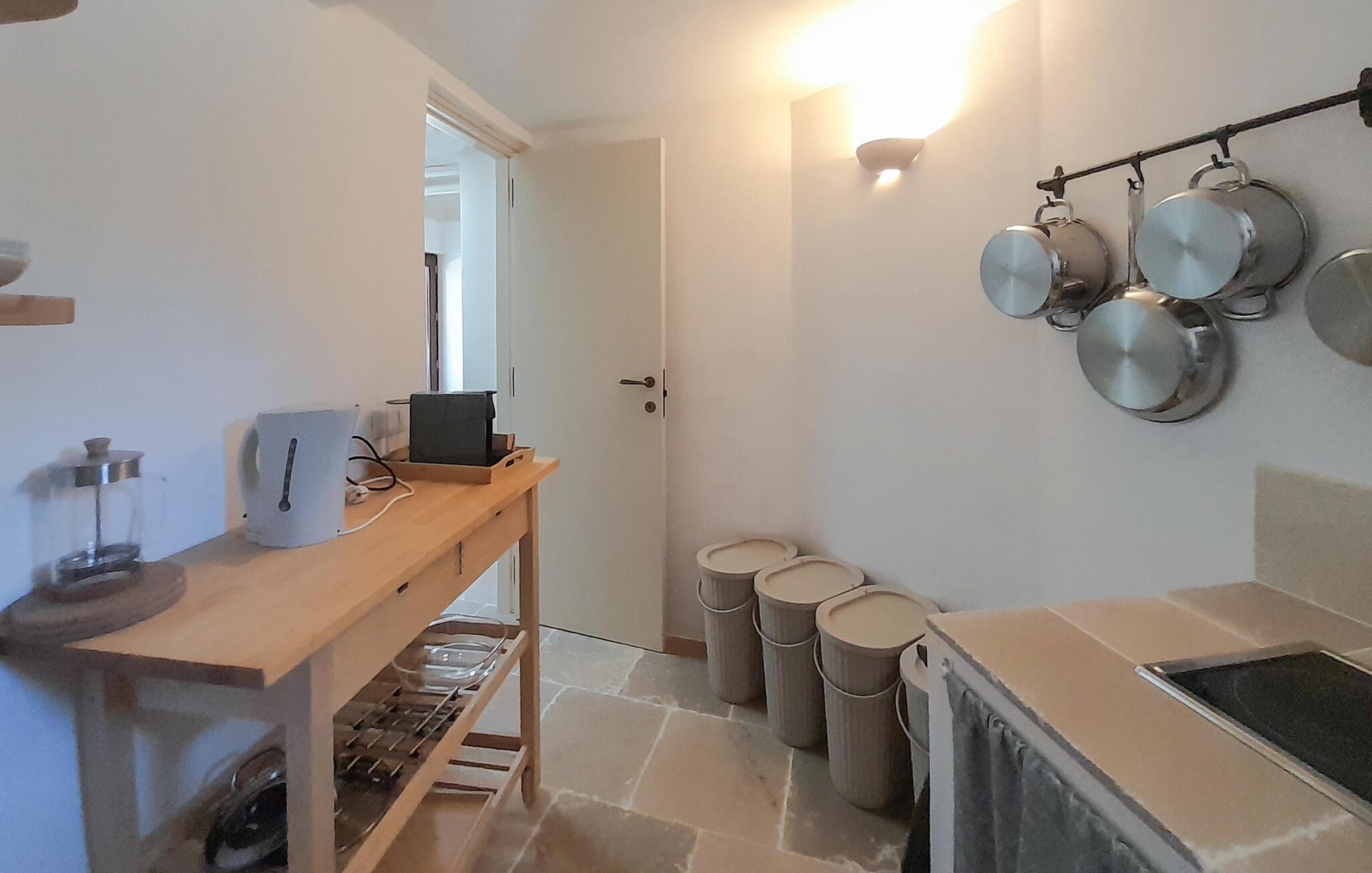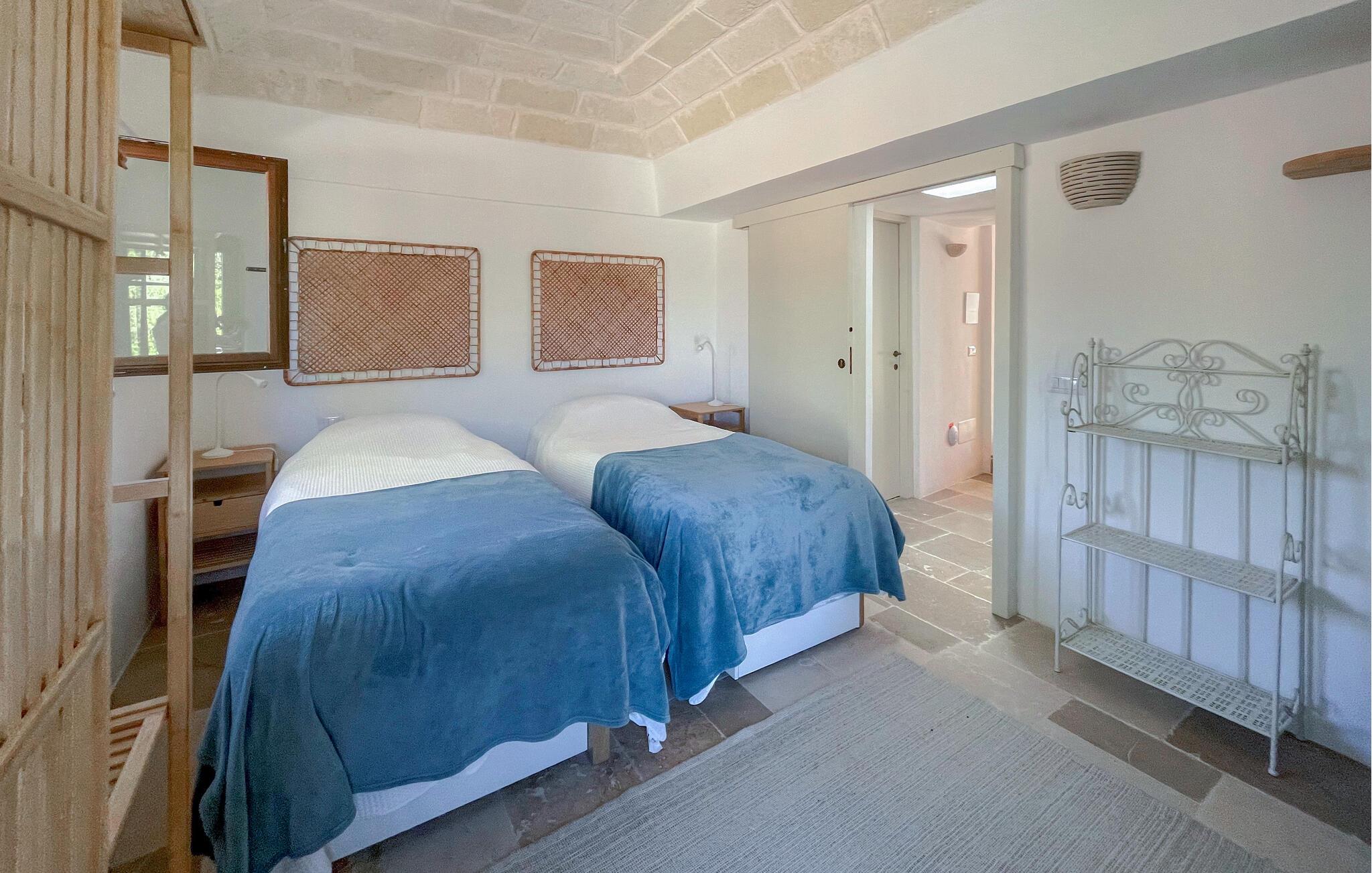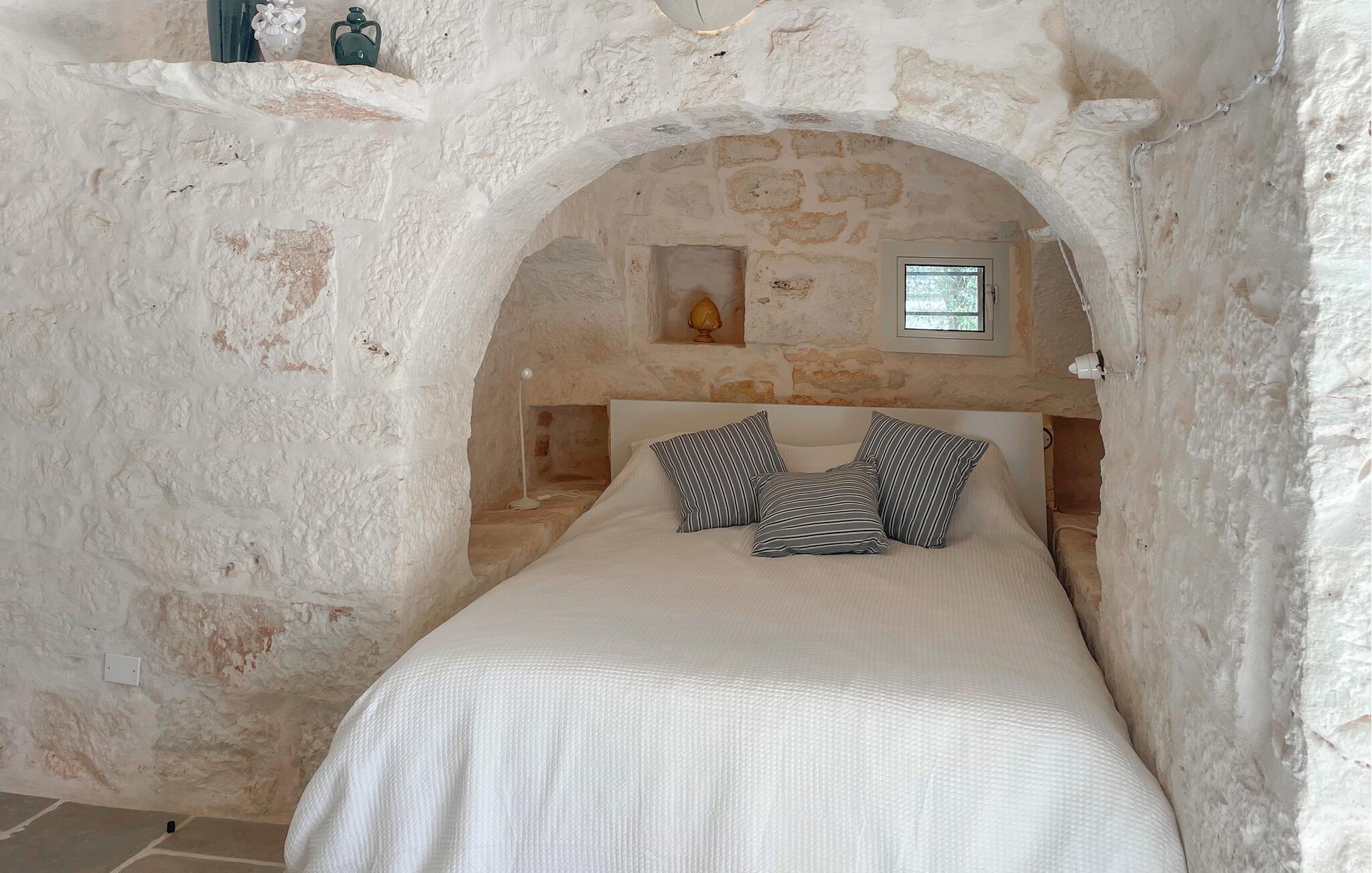 Dit feriehus er omgivet af en stor grund med gamle oliventræer – de ideelle rammer for at lægge hverdagen bag sig under den blå himmel. Nyd en afslappet svømmetur i poolen som det første om morgenen, genoplad batterierne på behagelige liggestole og nyd den fredelige atmosfære med middag på den naturstensbelagte terrasse.