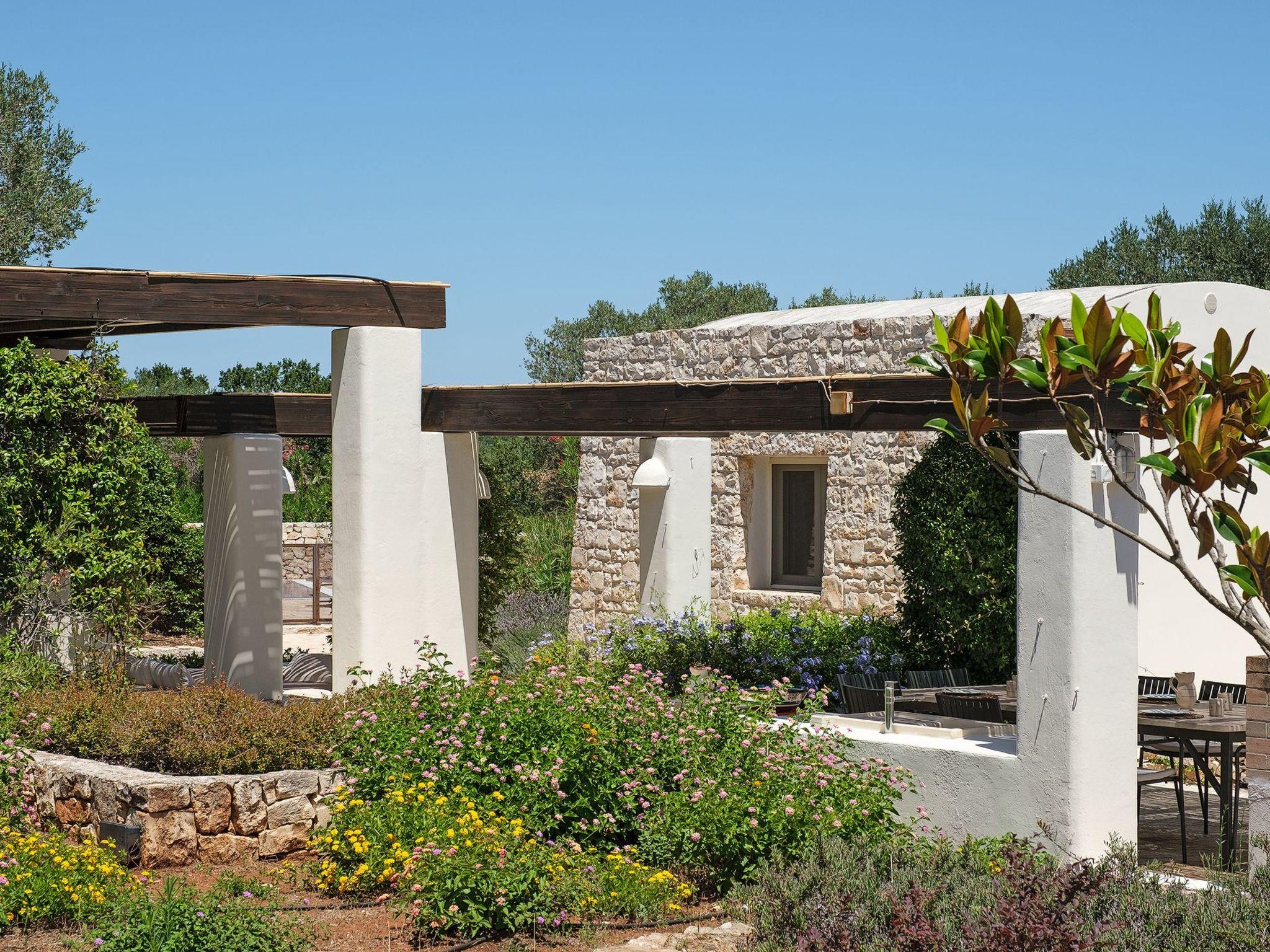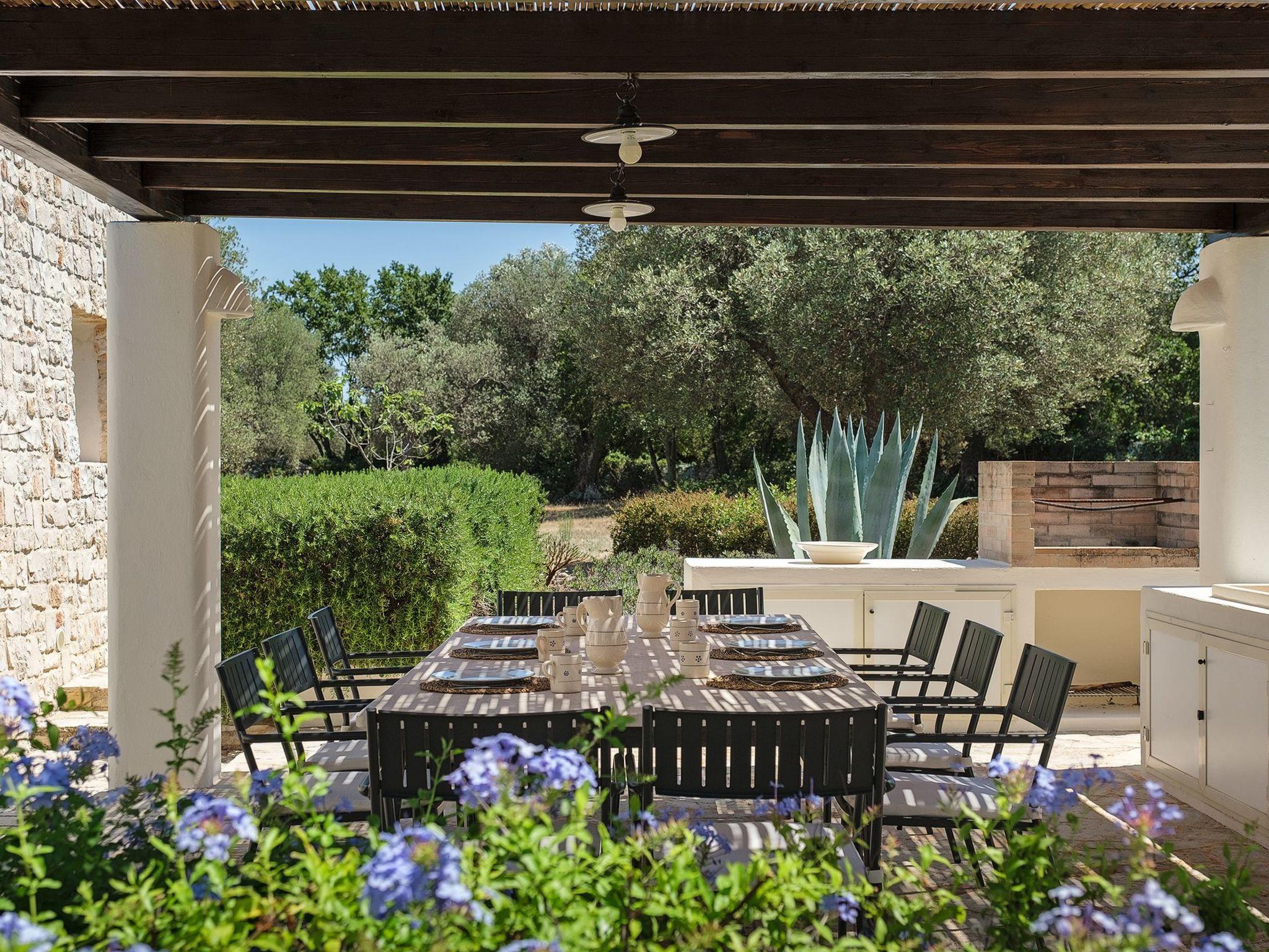 The villa is only 40 minutes from Brindisi airport and 1.5 hours from Bari airport. An ideal base for exploring the Unesco World Heritage Sites of Alberobello and Matera. Our holiday home is located near Cisternino, Ostuni and has been designed with style and comfort in mind to make your holiday as relaxing and enjoyable as possible. Villa Vesta was started in 2005 and completed in August 2007 in true Italian style. Completely restored in 2021. The villa consists of 6 lamia. The plot is approximately 19,000 square metres and is rich in olive trees and bordered by beautiful and typical dry stone walls, the driveway lined with lavender and rosemary leads past a shady car park to the front of the villa. A beautiful old olive tree is the centrepiece of a small turning circle. The main entrance at the front of the villa is gently shaded under trailing wisteria... We think holidays should be as relaxing and stress free as possible and we have designed and furnished our beautiful home with this in mind. Enter through the front door directly into the spacious open plan kitchen and open plan dining and sitting area. The kitchen and living room form a well-proportioned area in the centre of the villa.
