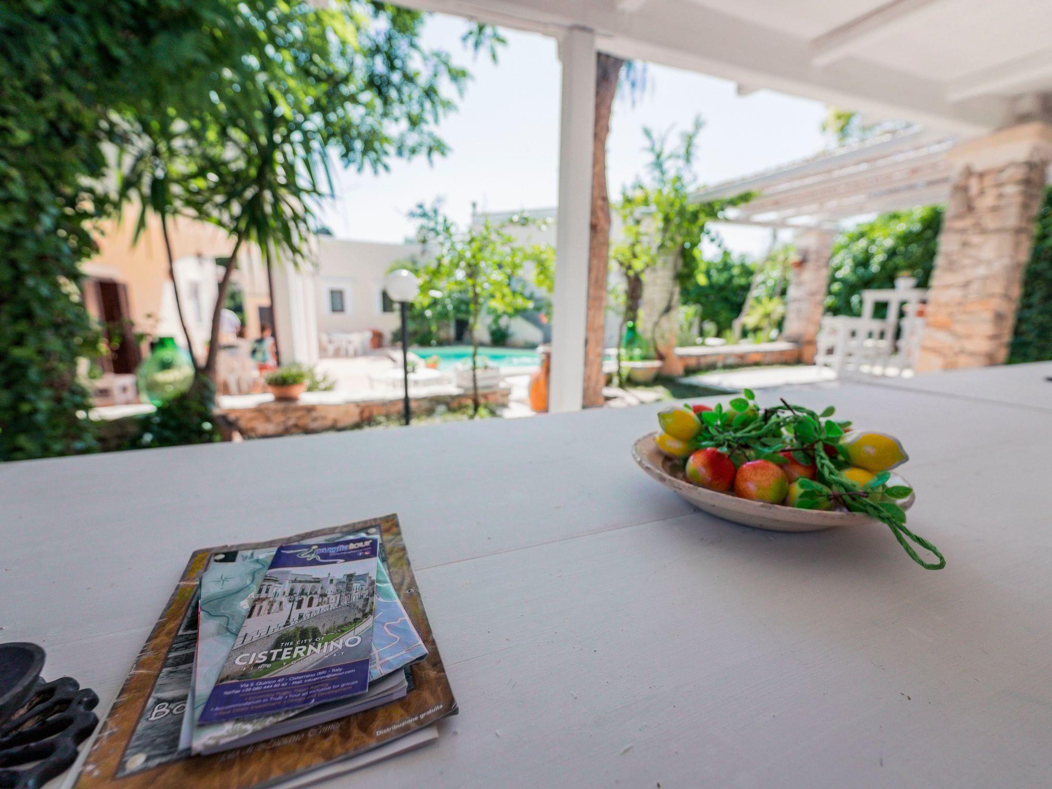 Flat just a few steps from the town, immersed in the greenery and tranquillity of the countryside, fully furnished with every comfort swimming pool, garden furniture and ample outdoor spaces for sunbathing.Ostuni's historic centre is unique, with its alleyways, panorama, cathedral, museums, churches rich in art and traditions, typical stone houses, the immense gastronomic culture with its typical dishes, the sea 6 km away declared by environmentalists, Blue Flag of Europe with its beautiful inlets and beaches all along the coast. The flat consists of a bedroom with double bed and bunk bed, wardrobe, bedside tables, TV, air conditioning, it also has a full bathroom with shower and washing machine and a fully equipped kitchen for cooking with dishes pans glasses cutlery table and chairs. Finally externally it is equipped with garden furniture tables chairs and sun loungers to dine and sunbathe comfortably. The flat has a fenced parking space, and all the services and conveniences of the village are guaranteed by its short distance, about 300 metres.