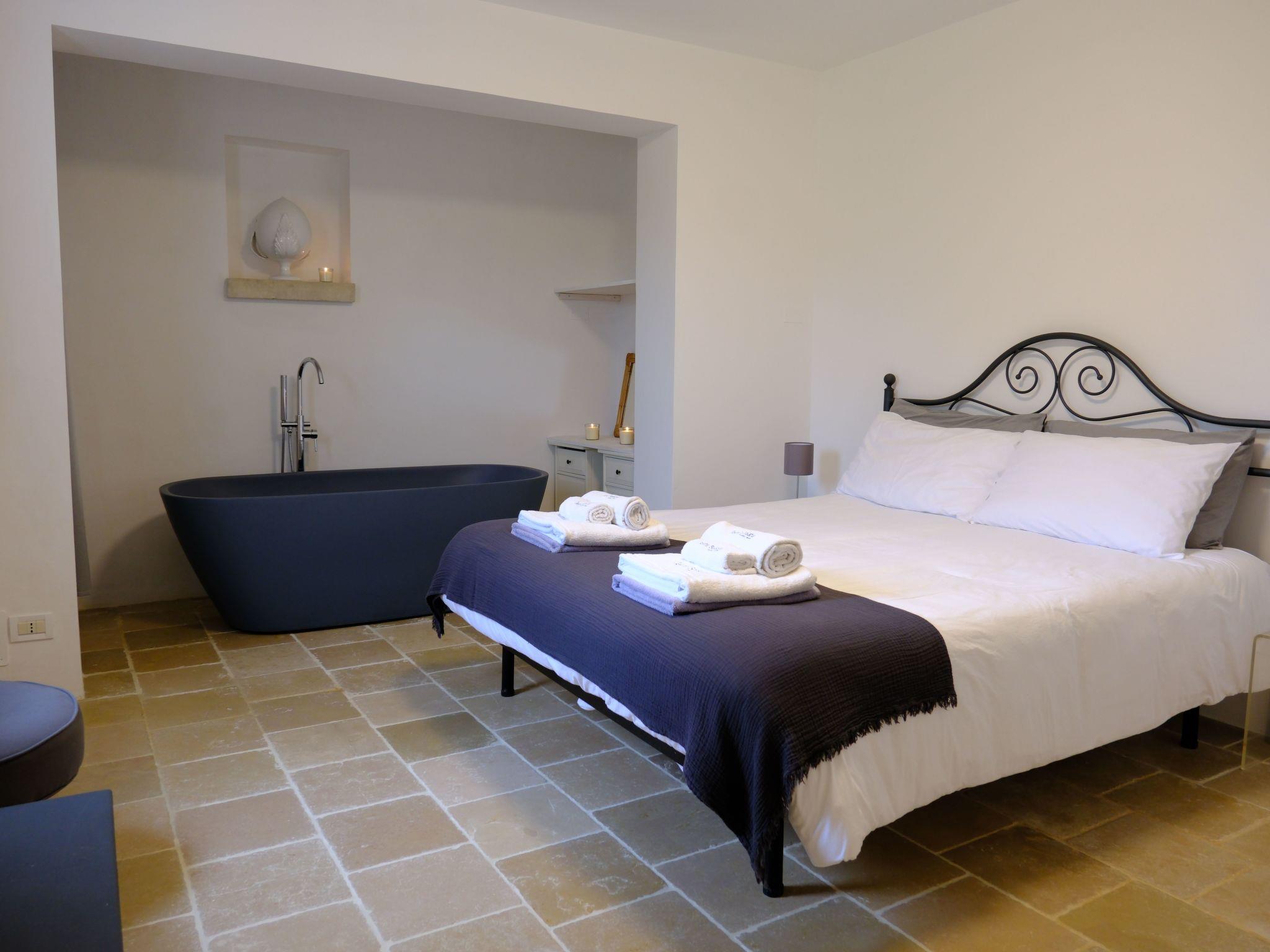 The dwellings within the resort offer exceptional comfort: from the Blue House, the most prestigious dwelling, to the ancient Trulli, from the typical stone building called Lamia to the Villa with a spacious veranda. The 'Villa' specifically features spacious interiors including a kitchen equipped with a dishwasher, a double bedroom, a triple bedroom and two ensuite bathrooms with showers, plus a bathtub in the master bedroom and a cosy living-dining room set in a bright veranda opening onto the garden.
