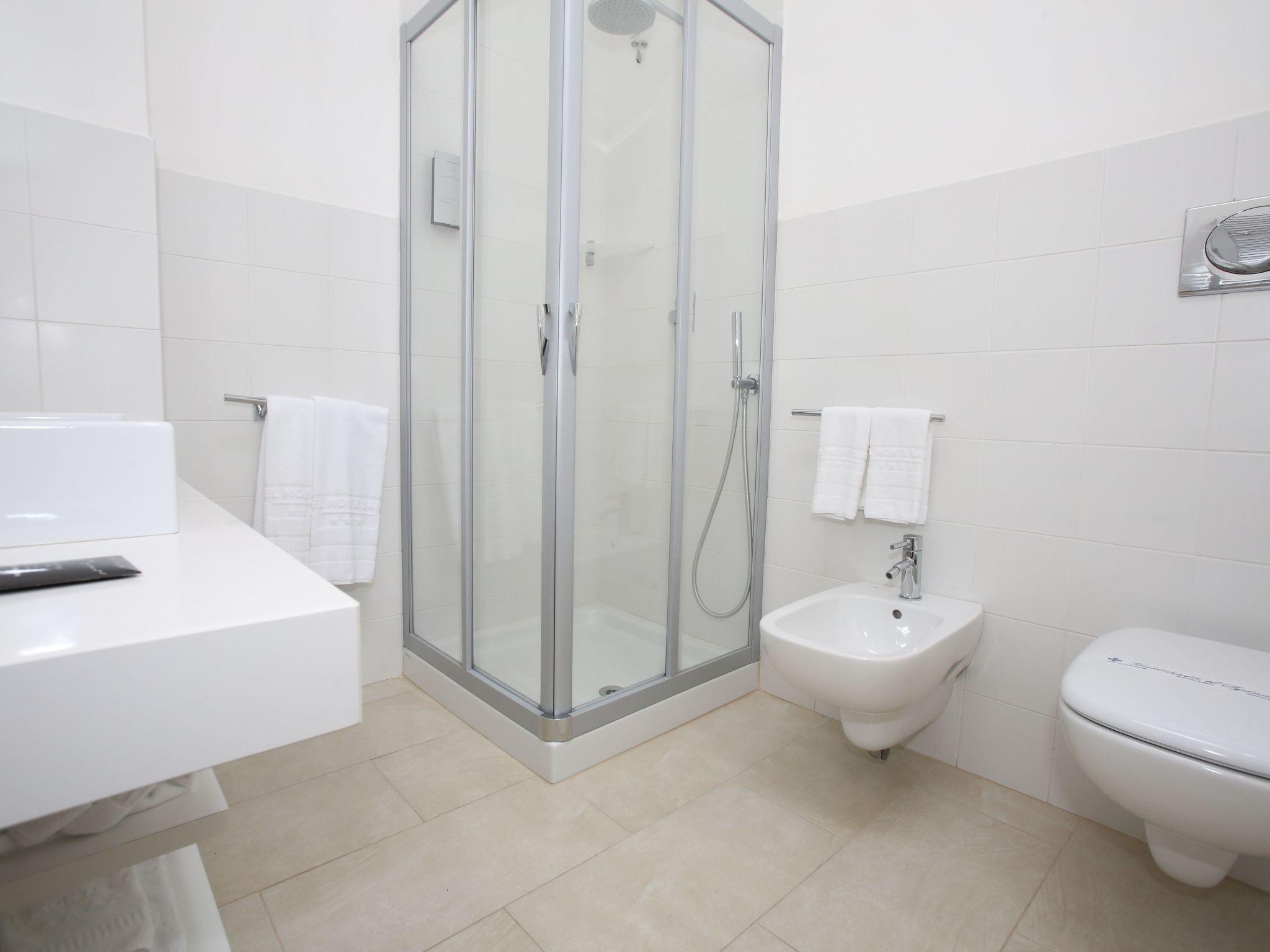 Outside, the villa boasts access to a spacious terrace and balcony, where guests can enjoy moments of pure relaxation while admiring the surroundings. The shared swimming pool is the ideal place to cool off on hot summer days, while the large shared garden invites for peaceful walks or outdoor playtime.
