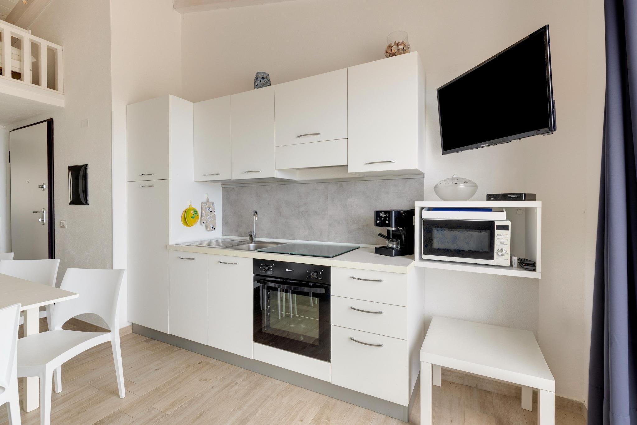 Lejlighed med mezzanin, et lyst og komfortabelt hjem designet til at rumme op til seks personer, ideelt for familier eller vennegrupper, der ønsker at opleve det sardiske hav i fuldstændig afslapning. Lejligheden består af et soveværelse med dobbeltseng, en stue med et fuldt udstyret tekøkken og sovesofa, en mezzanin med en queensize-seng, et badeværelse og en pragtfuld terrasse med udsigt over havet, perfekt til morgenmad i solen eller til at nyde uforglemmelige solnedgange. Det indvendige rum, inklusive terrassen, er cirka 50 kvadratmeter stort og er udstyret med aircondition og en vaskemaskine for et praktisk og komfortabelt ophold. En privat parkeringsplads er også tilgængelig. Beliggenheden er perfekt til at udforske Isola Rossa, et af de mest charmerende steder i det nordlige Sardinien. Kun få minutter væk ligger strande med hvidt sand og krystalklart vand, såsom Spiaggia Longa, ideelt for børn, og klippefyldte bugter perfekte til snorkling og svømning i turkisblåt vand. Den lille lystbådehavn er hjertet af landsbyen og summer af restauranter, isbarer og barer, der serverer frisk fisk og sardiske specialiteter. I nærheden kan du nyde bådture langs kysten, dykning, naturskønne vandreture i solnedgangen og ture til fantastiske steder som Costa Paradiso, Castelsardo og Maddalena-øgruppen. For naturelskere byder baglandet på stier og vilde landskaber, der venter på at blive udforsket. Et perfekt sted at slappe af, indånde havets duft og opleve en autentisk sardinsk ferie med alle hjemmets bekvemmeligheder.