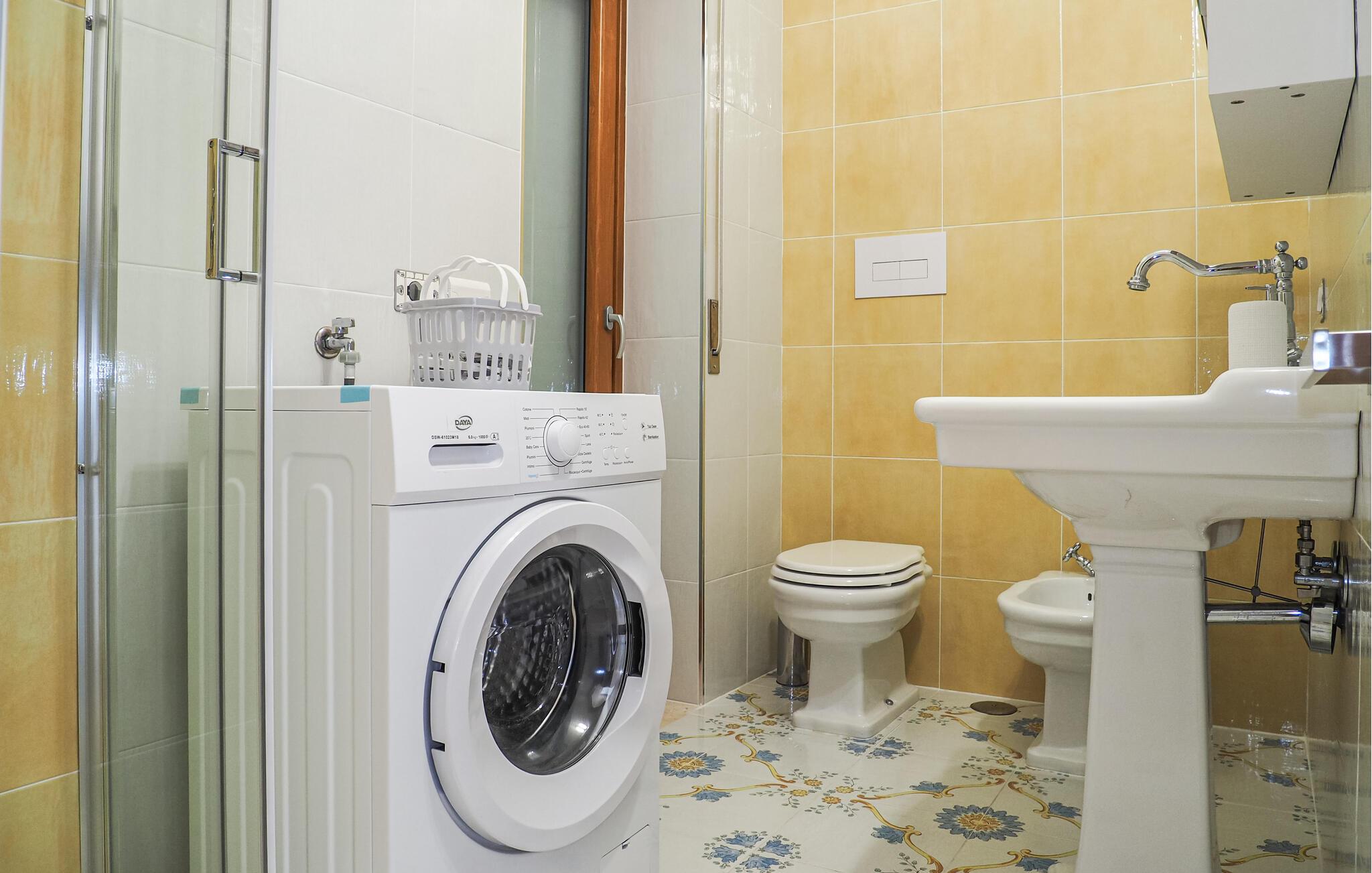 Denne lyse og indbydende ferielejlighed er ideelt placeret til at kombinere en solrig strandferie med en række udflugter. Tilbered lækre pastaretter og planlæg jeres aktiviteter sammen ved spisebordet.