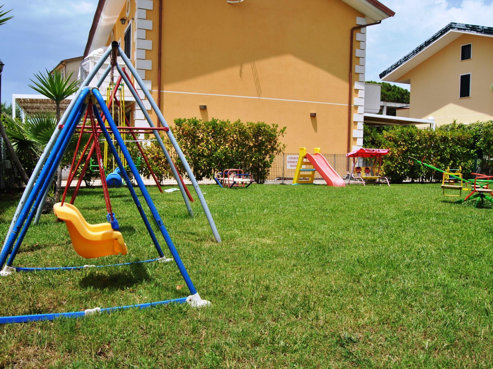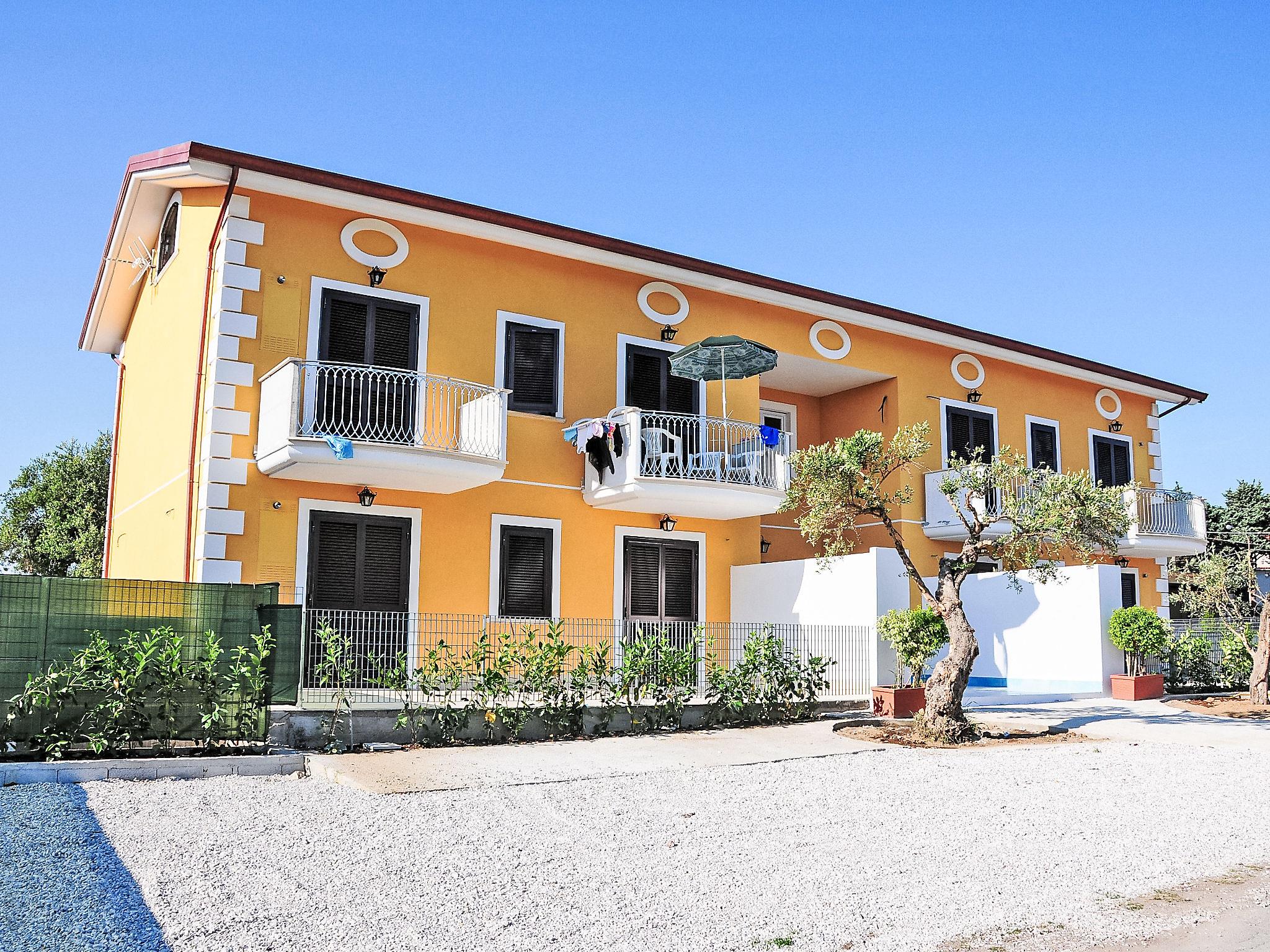 Paestum: Residence "Casale Cilento", 2 storeys, surrounded by trees. 8 apartments in the property. 300 m from the sea, 300 m from the beach. For shared use: garden, swimming pool (5 x 10 m, seasonal availability: 13.Jun. - 12.Sep. pool opening hours: 09:00-13:00 and 16:00-19:00). Garden furniture, children's playground. In the complex: washing machine, tumble dryer (for shared use, extra), heating to be paid on the spot (01.Nov. - 31.Mar.), heating available only from 01.Nov. - 31.Mar., bicycle rental. Airport transfer (extra). Parking. Shop, grocery, supermarket, restaurant 500 m, bar 300 m, bus stop 400 m, railway station "Paestum" 3 km, ferry "Salerno (Amalfi Cruise Terminal)" 39 km, sandy beach 300 m. Nearby attractions: Paestum Parco Archeologico 2 km, Agropoli 7 km, Santa Maria di Castellabate 21 km. Please note: no lift. On request: airport transfer to the holiday accommodation.