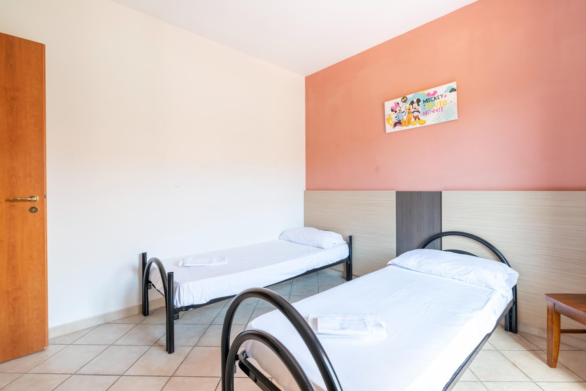Denne indbydende villa med 2 soveværelser i Laura-distriktet ligger blot 300 meter fra Paestum-stranden og tilbyder en afslappende ferieindstilling for op til 5 gæster. Beliggende over to etager, stueplan har en rummelig stue med en dobbelt sovesofa, tv, spisebord, strygebræt, strygejern og aircondition, sammen med et stort, fuldt udstyret køkken komplet med en gaspejs, komfur, ovn og køleskab med fryser. Ovenpå finder du to komfortable soveværelser, et med dobbeltseng og et med enkeltseng og køjeseng, begge med adgang til balkonen. Det moderne badeværelse har bruser, toilet, håndvask og bidet. Gæsterne kan slappe af i den private have, der er møbleret med liggestole, parasol og udendørs siddepladser. En fælles swimmingpool og boblebad (for op til 6 personer) samt en fælles vaskemaskine er til rådighed. Varme og aircondition sikrer komfort året rundt. Der er også privat parkering. Bekvemt beliggende nær lokale butikker, attraktioner og kun en kort køretur til Salerno Lufthavn, er denne villa perfekt til familier eller venner, der søger en strandferie med nem adgang til kultur og natur.