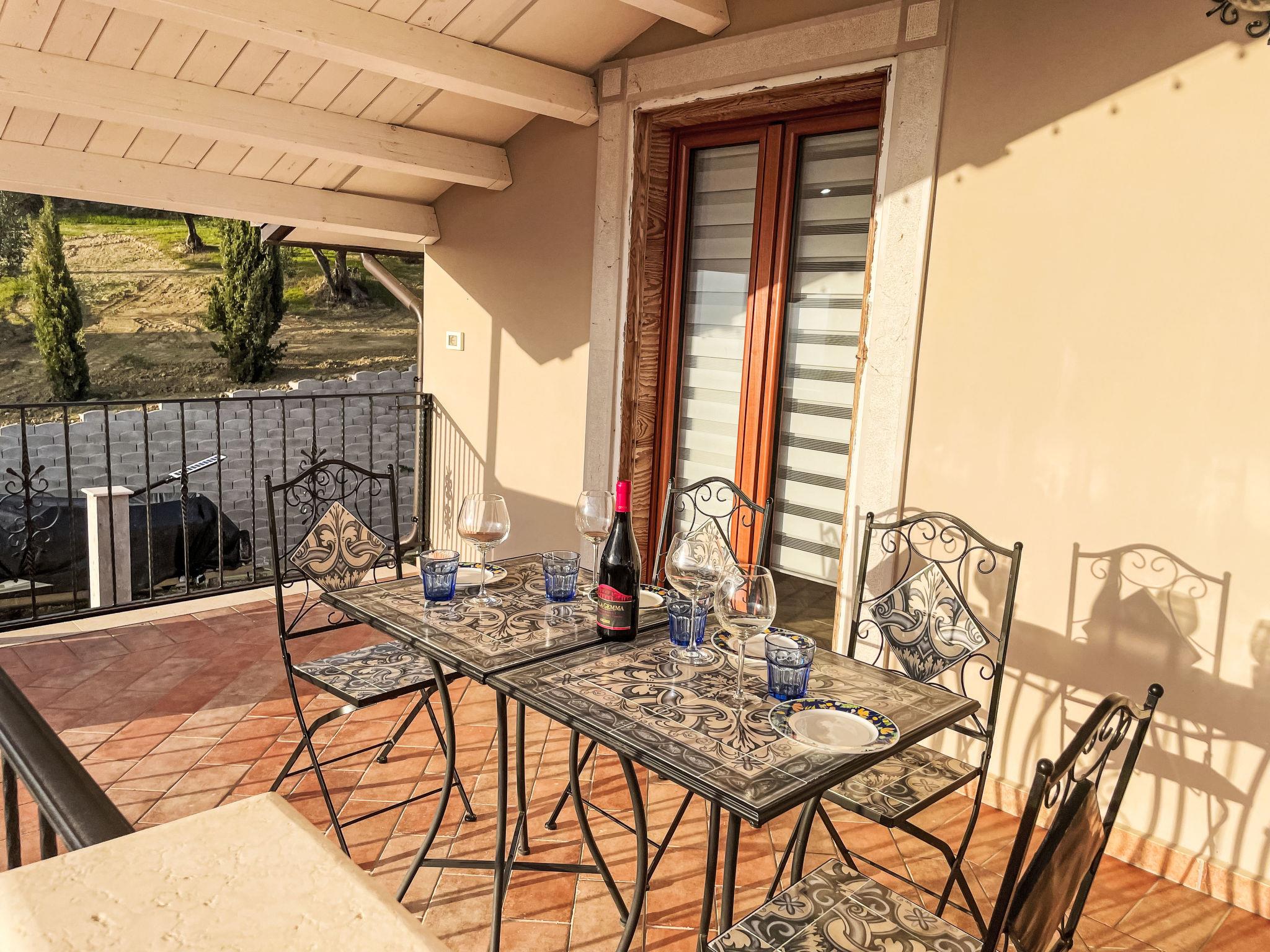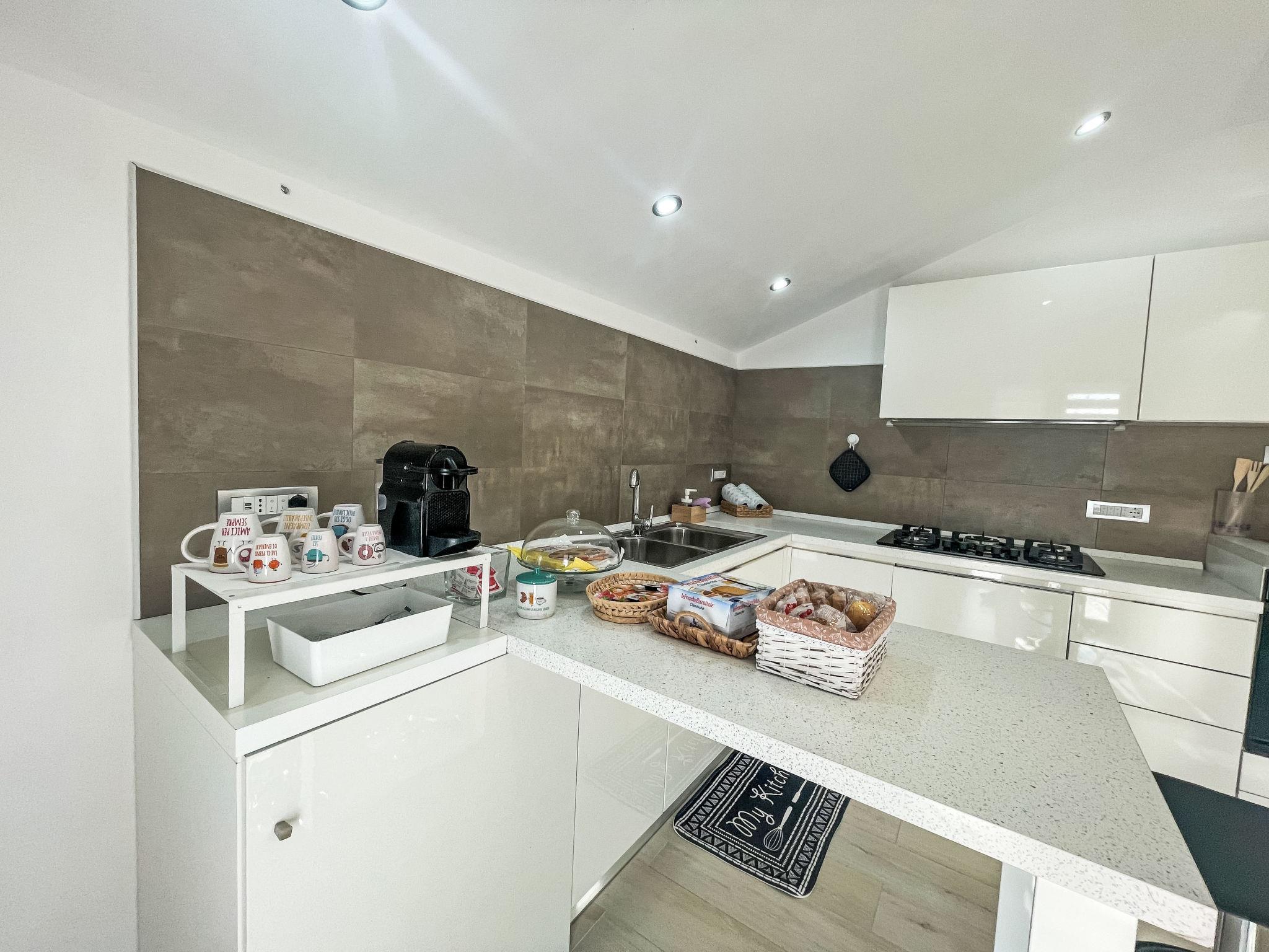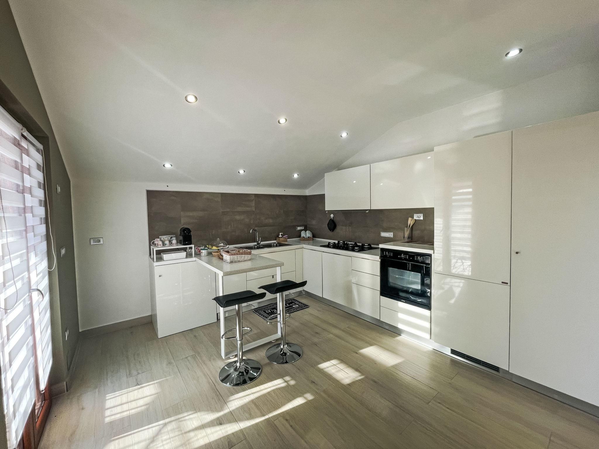 "Vista Majella", 3-room apartment 110 m2, on the top floor. Modern and stylish furnishings: top floor: (exterior staircase) living/sleeping room with 1 double sofabed and TV. Exit to the terrace. 2 double bedrooms, each room with shower/WC. Open kitchen (oven, dishwasher, Gas stove, 5 gas rings, toaster, kettle, freezer, electric coffee machine). Exit to the terrace. Heating, air-conditioning. Heating available only from 15.10. to 15.04. Natural stone floors. Large terrace 30 m2, south facing position and west facing position. Terrace furniture, deck chairs (4). Very beautiful panoramic view of the mountains and the countryside. Facilities: washing machine, baby cot for up to 2 year olds. Internet (WiFi, free). Please note: 1 small pet/ dog allowed. Private entrance. IT069059C20X533W8G