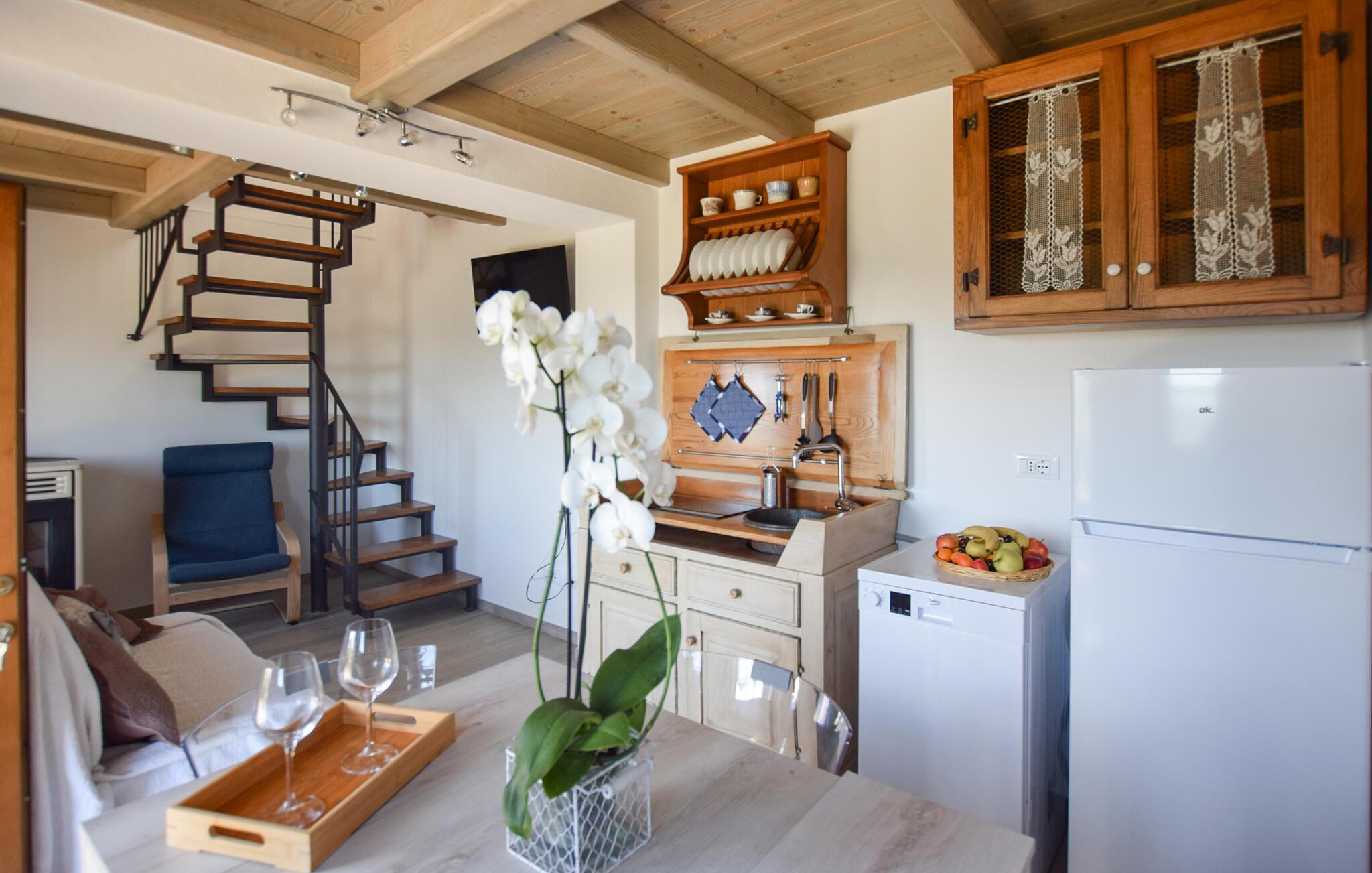 Glæd jer til et skønt ophold i dette feriehus, som ligger i et idyllisk bjerglandskab i Toscana. Nyd jeres boligs afsondrethed og fantastiske beliggenhed. Indenfor finder I en praktisk indrettet opholdsstue med sofa og spisebord. Her kan I spise og lægge planer for den kommende feriedag.