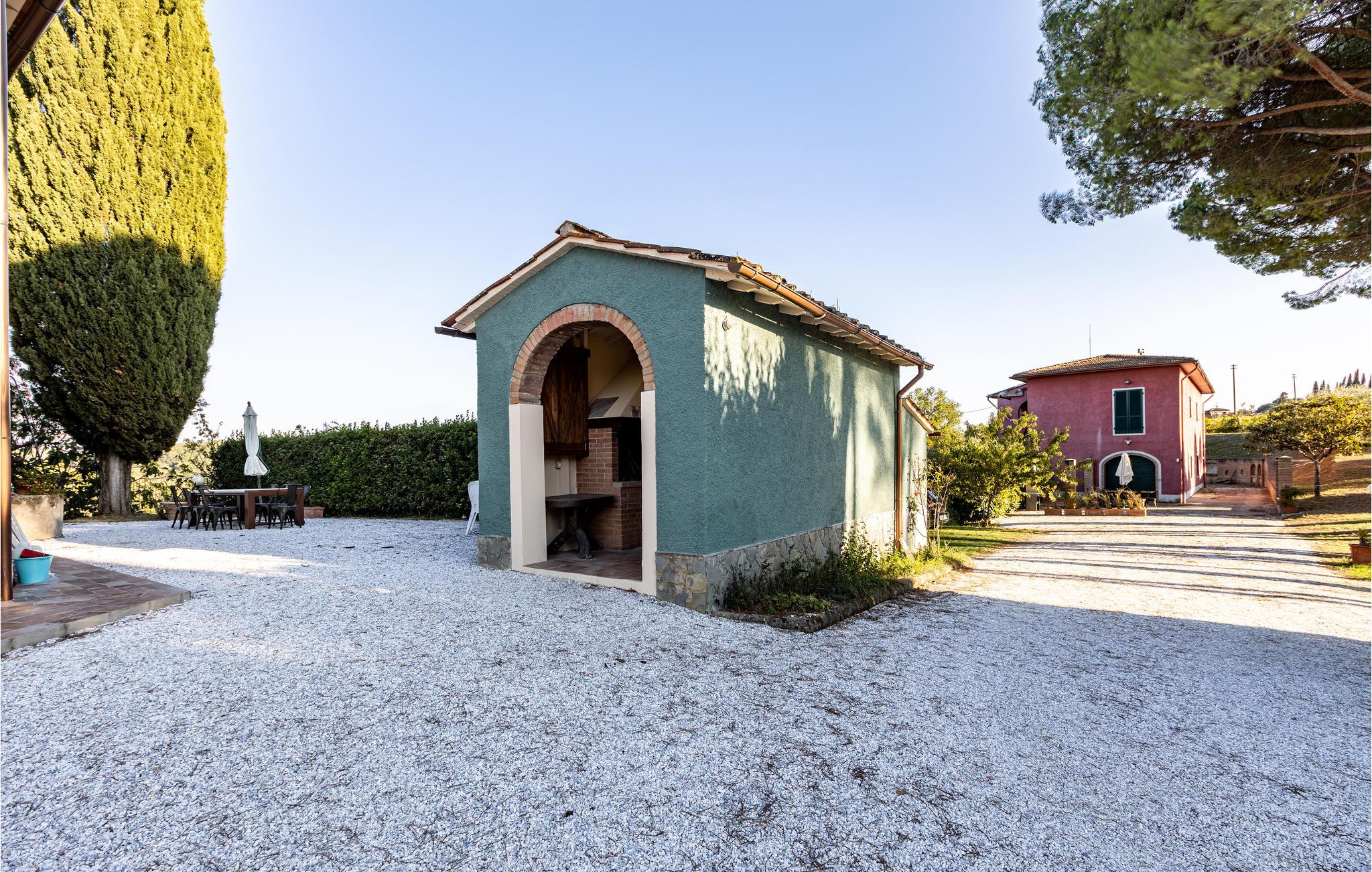 Gæsterne har adgang til et stort område, som oplagt til behagelige timer i det fri. Udearealet deles med en af de andre ferielejligheder, så poolen, tennisbanen, legepladsen og bordtennisbordet er til fælles brug. Feriehuset ligger ideelt i forhold til Pisa, som kun er 30 km væk. I må ikke gå glip af det berømte skæve tårn, men heller ikke Piazza dei Miracolis dåbskapel og Museo dell’Opera del Duomo. Kirken Santa Caterina er helt sikkert også et besøg værd. Natteravnene kan se frem til mange barer og restauranter langs Arno. Kun 45 km herfra venter Marina di Pisa med skønne sandstrande, hvilket er ideelt til børnefamilier, men også til jer, der vil spille beachvolleyball og strandtennis eller prøve kræfter med kitesurfing. Pool og tennisbane deles med gæsterne i ITP536. Sengene i soveværelset med de to enekltsenge kan på forespørgsel slås sammen.