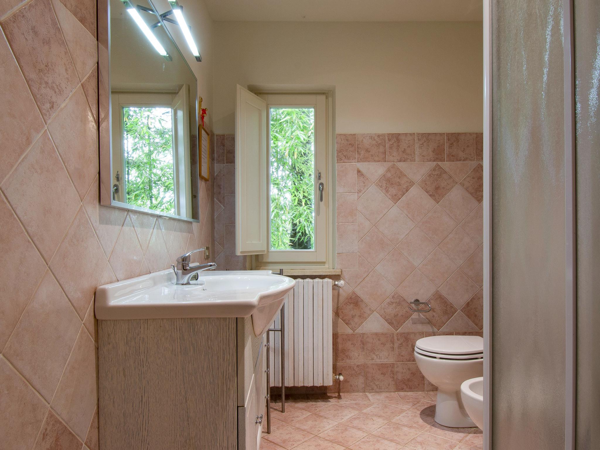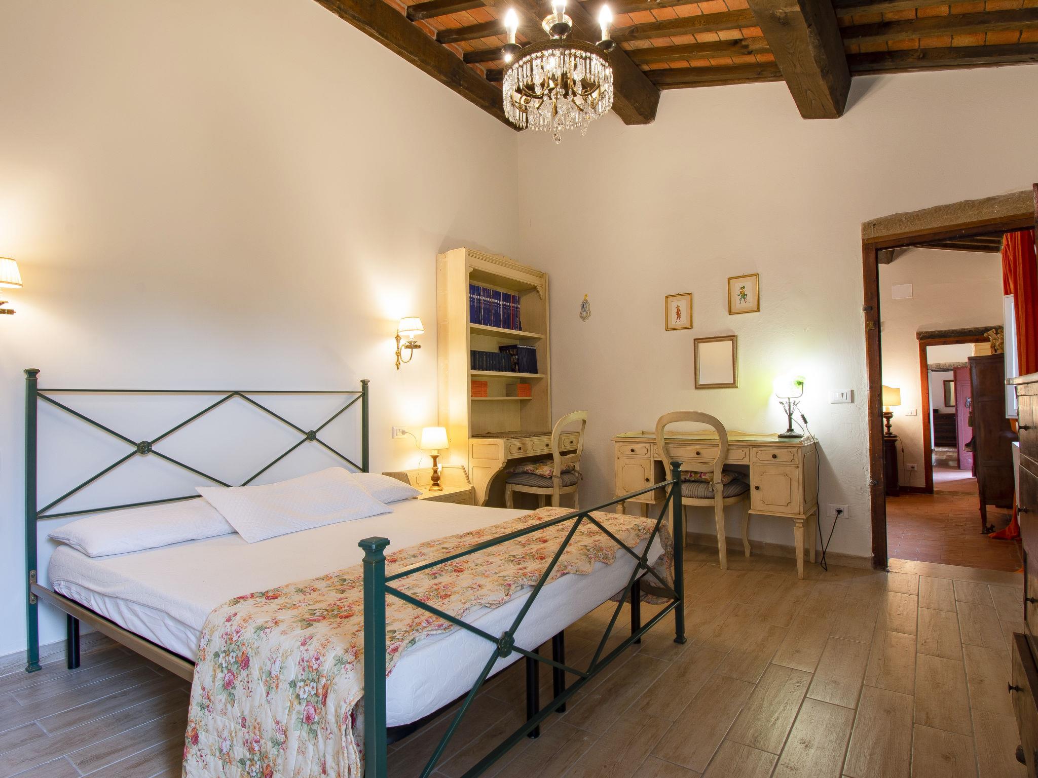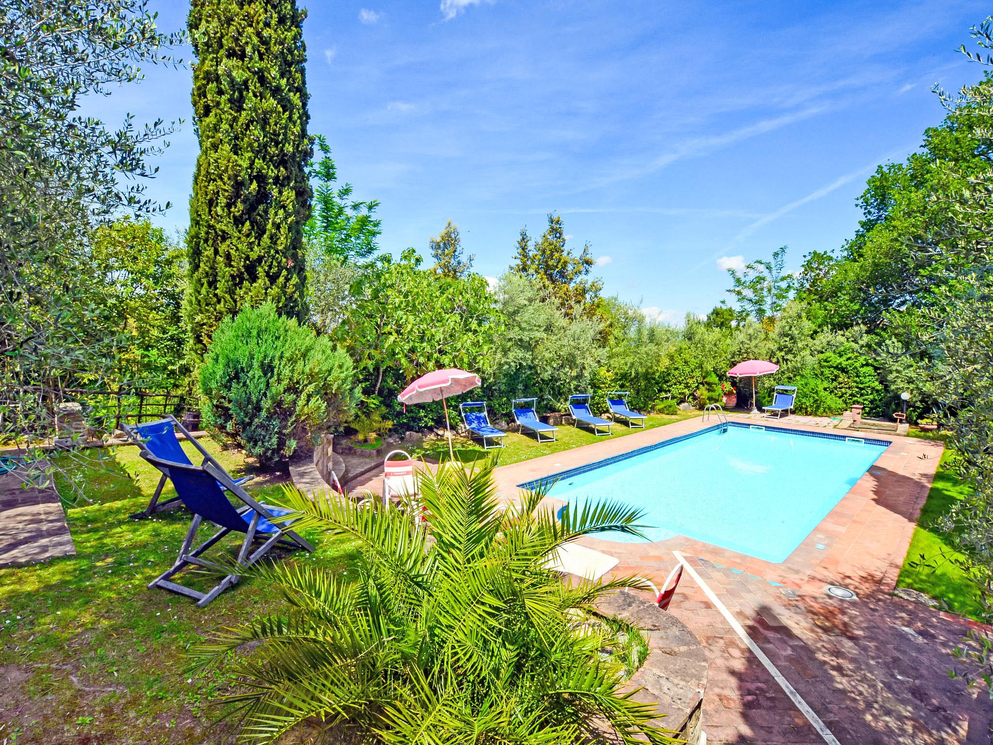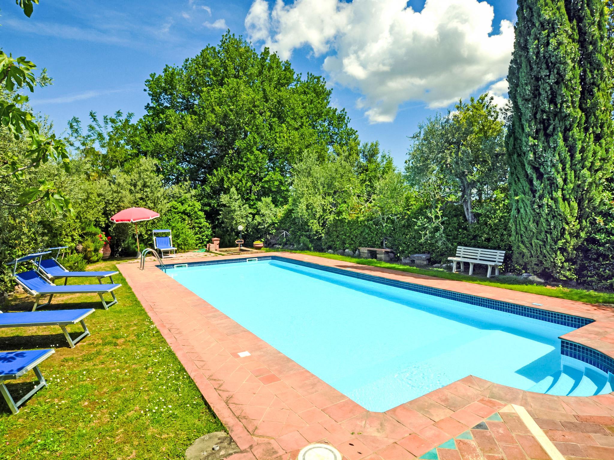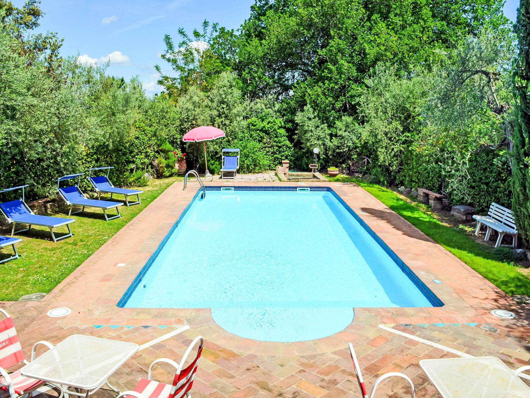 Podere Rasenna is a restored farm in a panoramic, hilly position, not far from the castle-vllage San Miniato (12 km) and the cultural city of Pisa. Not far away from the beaches of the Versilia coast, it is the ideal starting point, to combine cultural and bathing holidays. There are also olive groves, forests and a large garden with furnished outdoor area, which belong to the property. In the middle of the green area, there is the pool with sun terrace, outside shower and dress room/WC. Swimming-towels are available for the clients. There is also a large, furnished veranda for open air dining. The house is furnished in Tuscan style and has also some antique pieces of furniture. Exposed beam ceilings, natural stone walls and orginal round arches. Beautiful country house "Podere Rasenna". 3 km from the centre of Marti, 6 km from the centre of Palaia, in a secluded, quiet, elevated position, in the countryside. Private: large, beautiful garden with lawn and wildlife garden, swimming pool (5 x 12 m, depth 120 - 150 cm, seasonal availability: 19.Apr. - 04.Oct.). Pergola, terrace, garden furniture, barbecue. In the house: spa area, washing machine, heating to be paid on the spot, heating available only from 01.Nov. - 15.Apr. (extra). Motor access (800 m via unmade road). Parking at the house on the premises. Grocery 3 km, bar 3 km, bus stop "Marti" 3 km, railway station "Montopoli" 6 km, sandy beach 35 km. Golf course 12 km, tennis 12 km, riding stable 14 km. Nearby attractions: Pisa 25 km, Firenze 50 km.