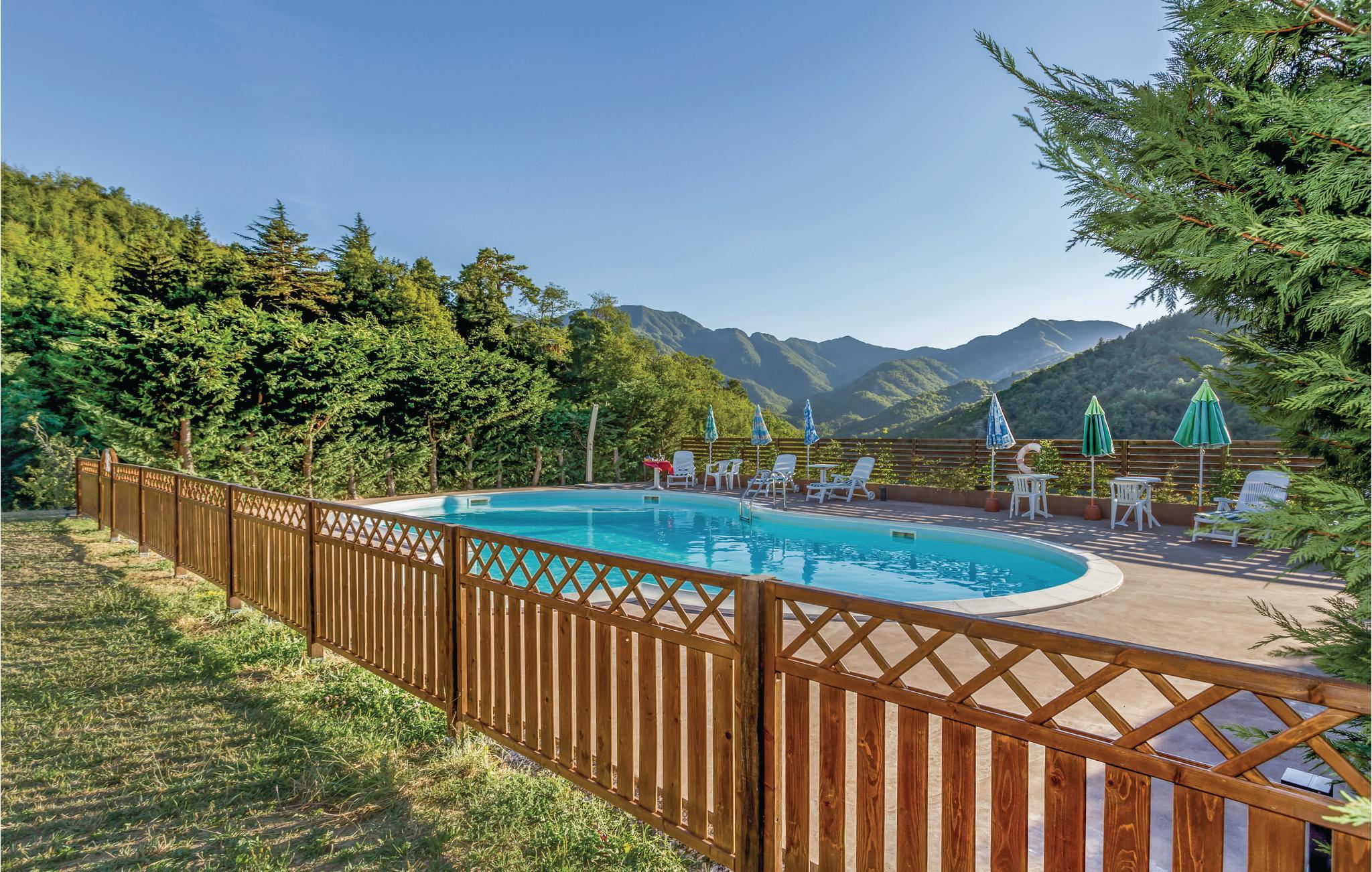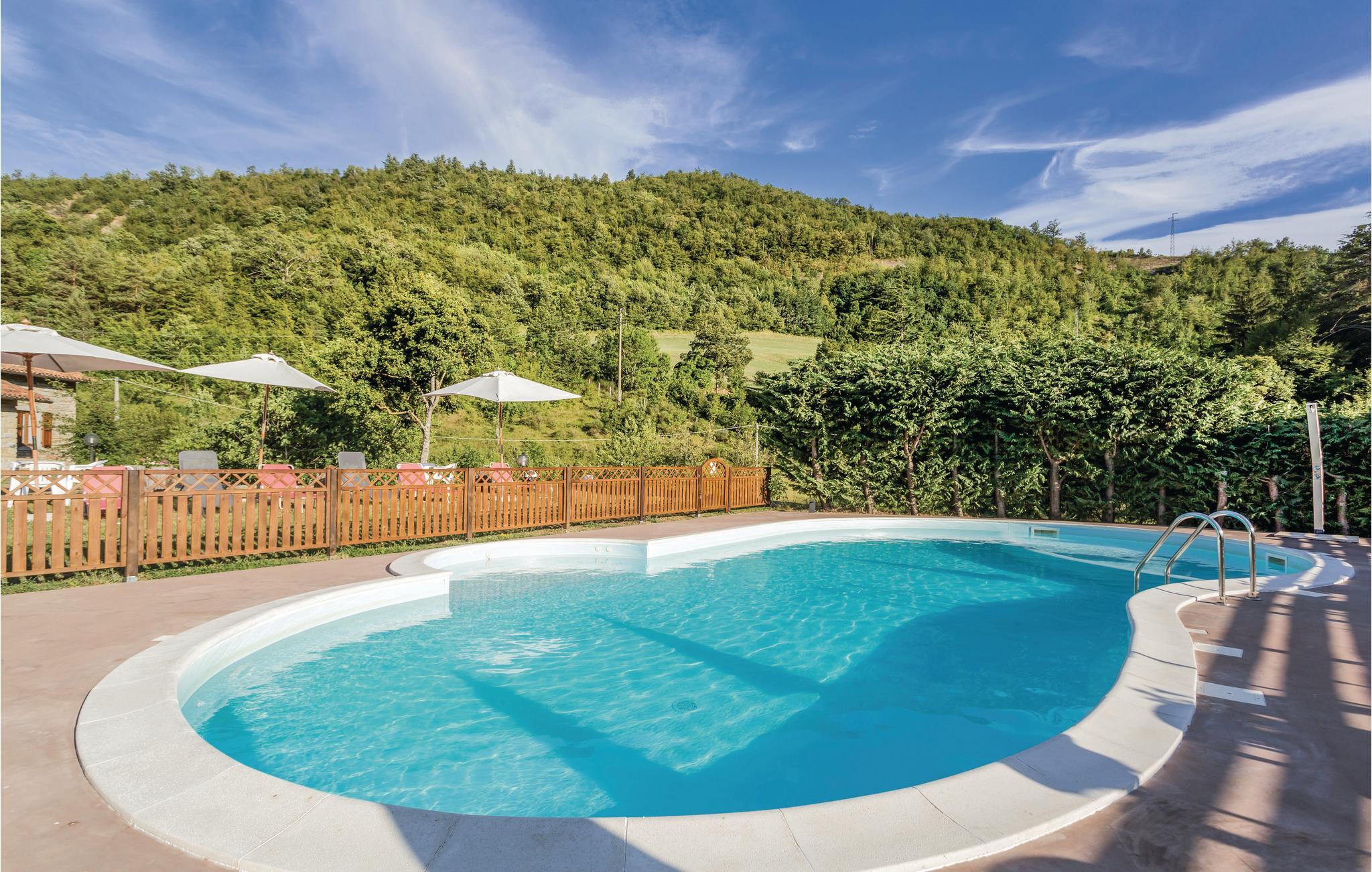 Meget smukt restaureret bondehus med have og egen pool. Huset ligger omgivet af Mugellos grønne bakker og i nærheden af byen Palazzuolo sul Senio (2,5 km). Poolen er bønneformet (størrelse: 12,5x7,5 m; dybde: 0,6x1,4 m) og varmes via solfangere, samt at der er et spaområde.