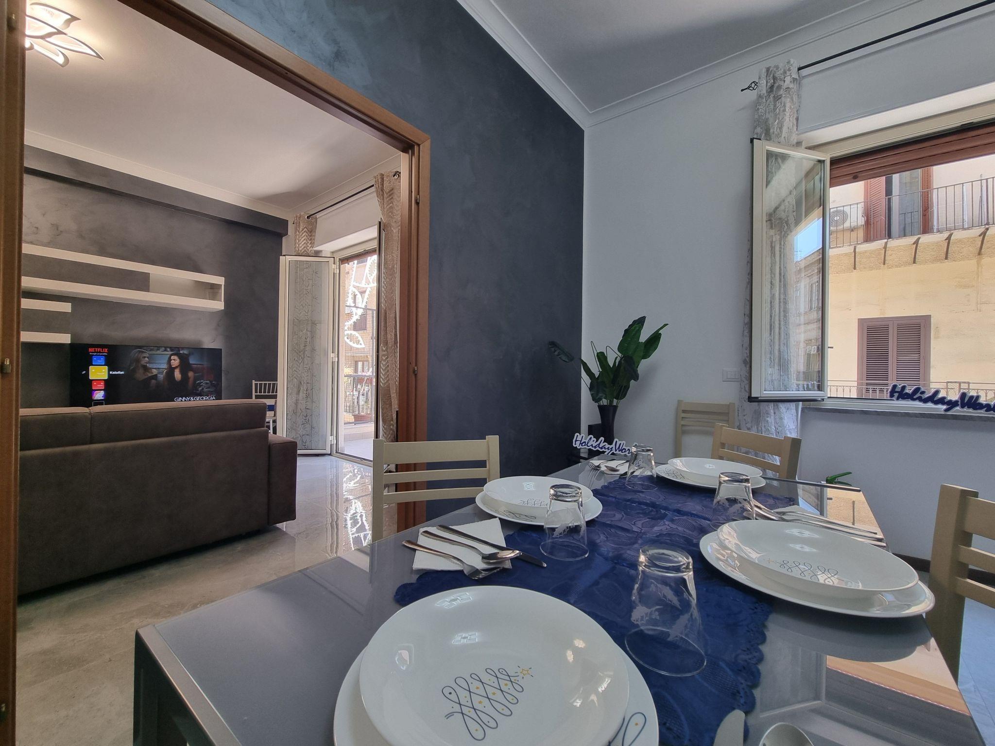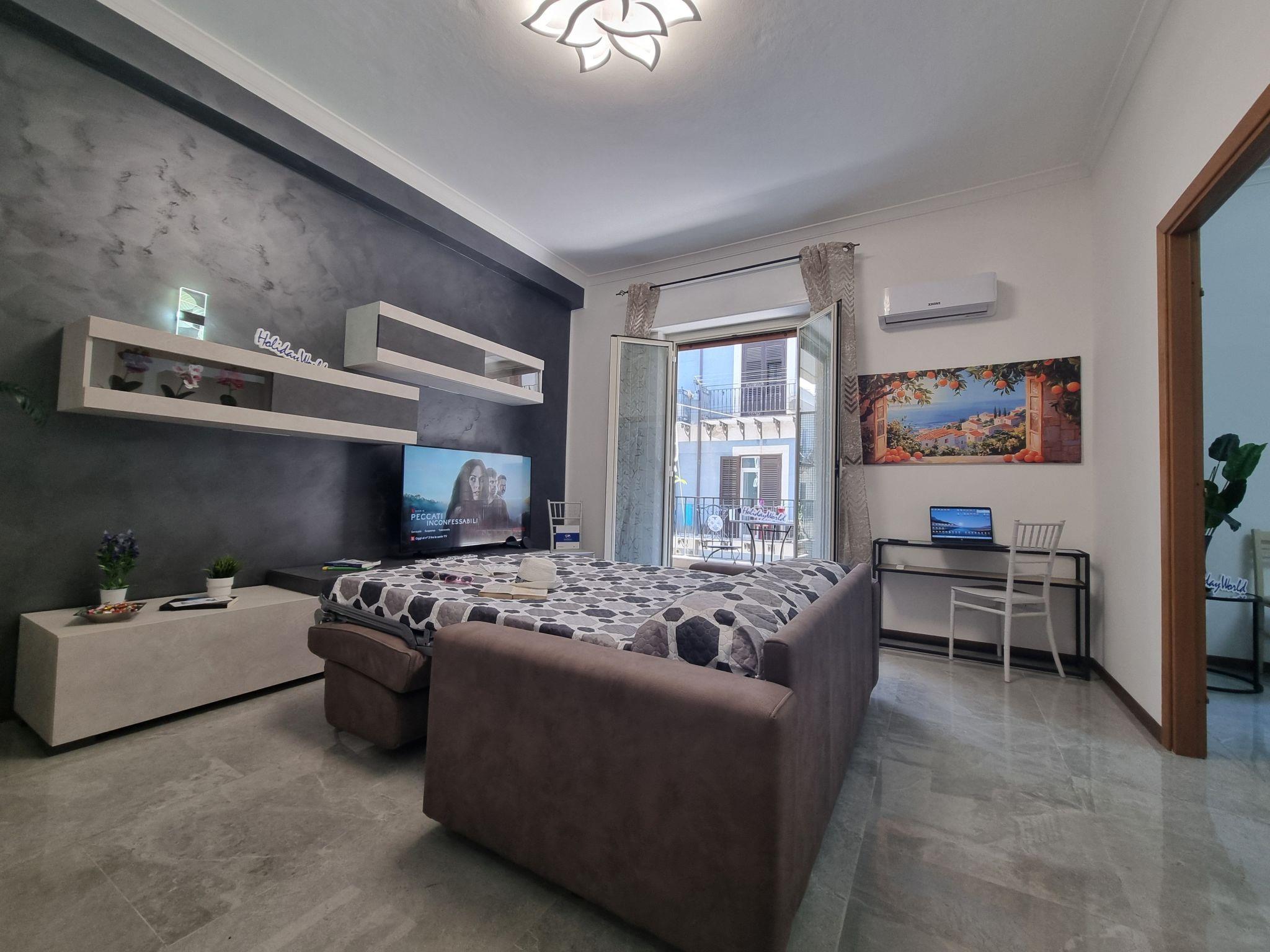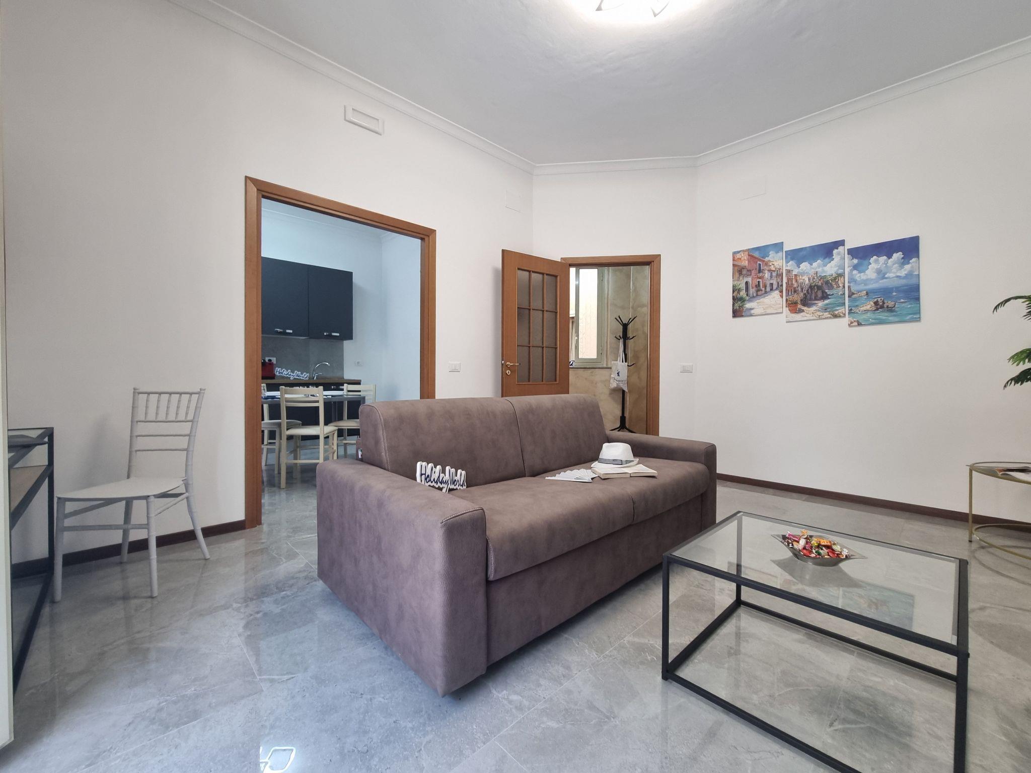 Kala Flat is a comfortable flat located in Palermo. As soon as you cross the threshold, you find yourself in a hallway, a small space that serves as a connecting point between the various rooms of the flat. On the right, there is a built-in wardrobe, designed for guest use, which allows for convenient storage of clothes and personal effects. Next to it, a window offers a view of the inner courtyard, creating a quiet and bright environment. There is a spacious and cosy living room, furnished with a single sofa bed, perfect for relaxing moments. This living room is an environment that invites conviviality and connects directly to the kitchen-dining room, an ideal corner for preparing and enjoying meals in company. The corridor extends, also lit by a window overlooking the inner courtyard, providing natural light and privacy. On the left side of the corridor are the bedrooms. The first is a spacious double bedroom, boasting a balcony that allows you to enjoy the view of the courtyard and take a breath of fresh air. The second bedroom, also cosy, has a window that makes the room bright, but with the right amount of privacy. Continuing along the corridor, one encounters the two bathrooms, one of which has a window that opens onto the courtyard, offering good ventilation and natural light. These bathrooms are functional and well organised, with everything needed for a comfortable stay. There is also a utility room, where the washing machine is located, convenient for laundry management during the stay. The entire flat has been designed with attention to detail, ensuring comfort and functionality. Equipped with air conditioning and Wi-Fi, it is the ideal choice for those wishing to explore Palermo in total relaxation, without giving up any comforts. The location and layout of the spaces make it perfect for a comfortable stay, combining practicality and tranquillity.
