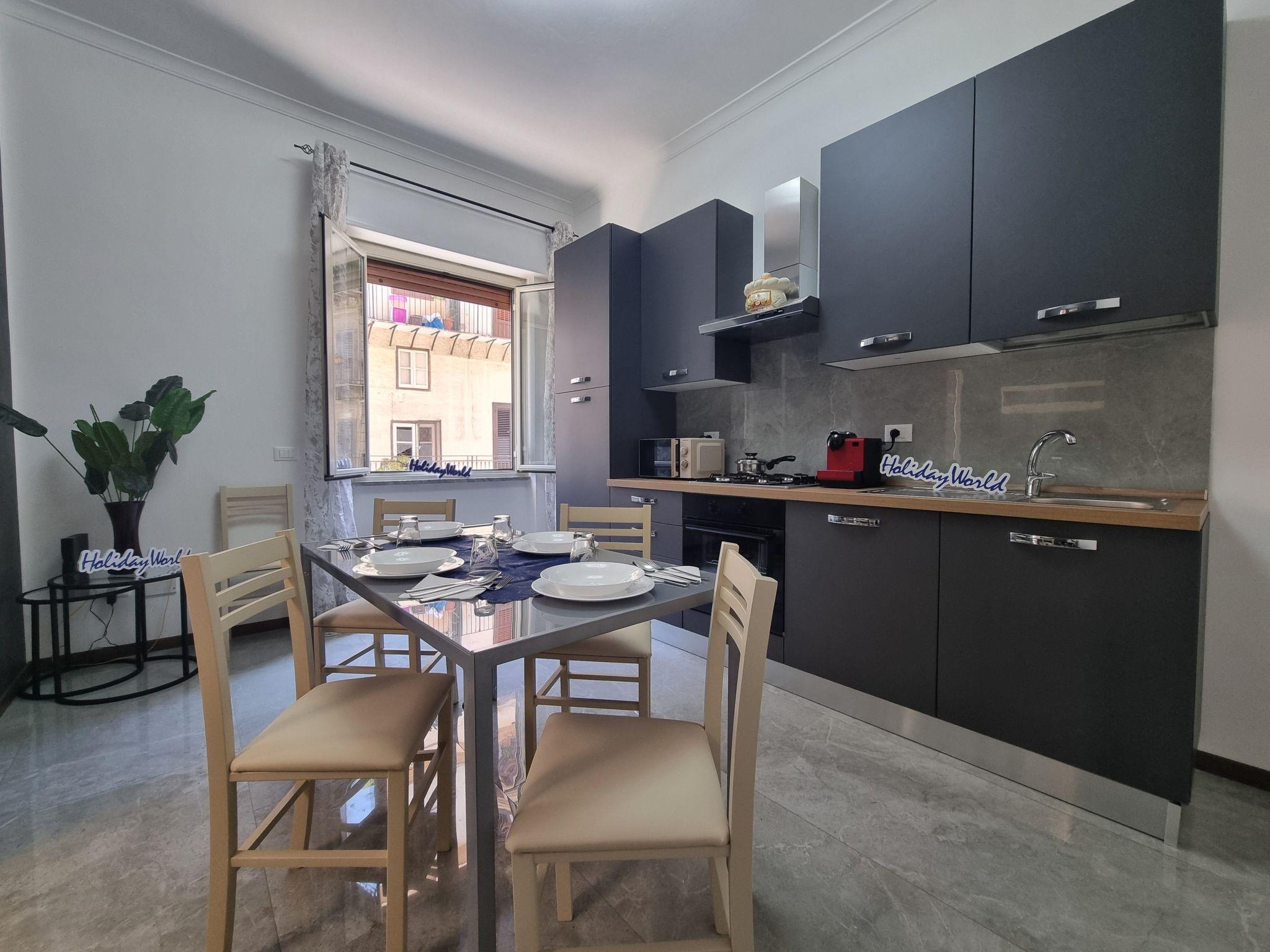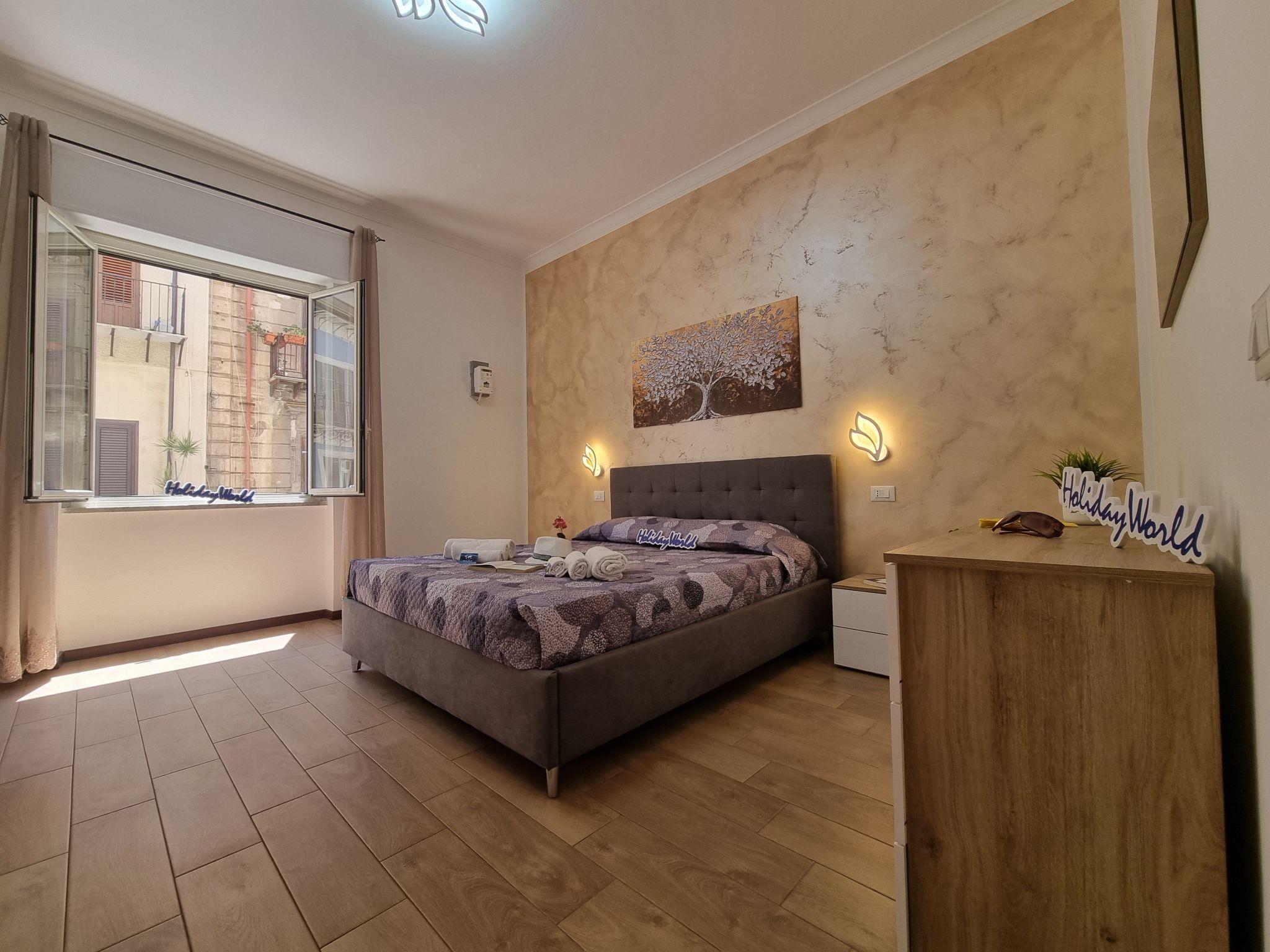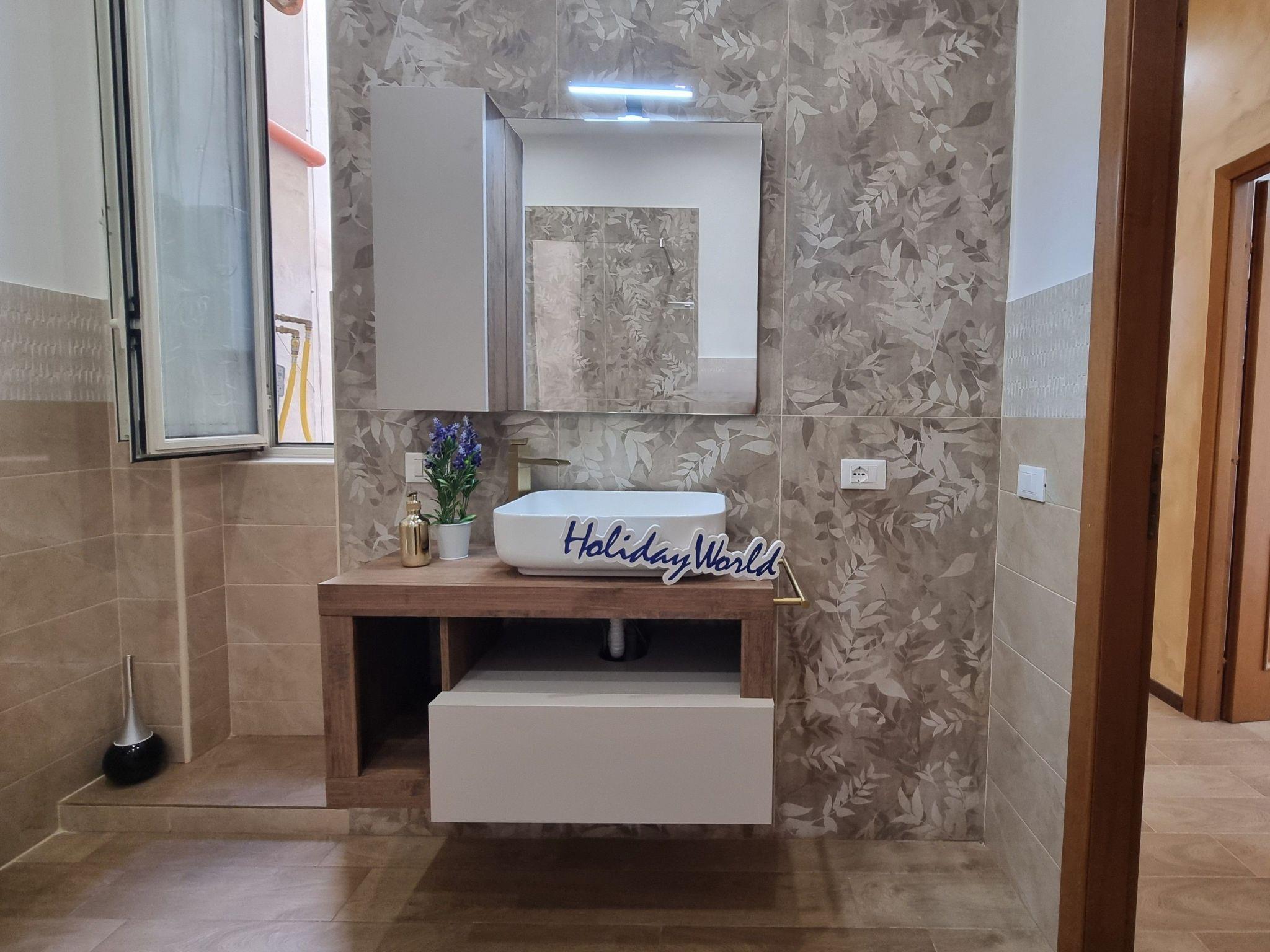 Kala Flat is a comfortable flat located in Palermo. As soon as you cross the threshold, you find yourself in a hallway, a small space that serves as a connecting point between the various rooms of the flat. On the right, there is a built-in wardrobe, designed for guest use, which allows for convenient storage of clothes and personal effects. Next to it, a window offers a view of the inner courtyard, creating a quiet and bright environment. There is a spacious and cosy living room, furnished with a single sofa bed, perfect for relaxing moments. This living room is an environment that invites conviviality and connects directly to the kitchen-dining room, an ideal corner for preparing and enjoying meals in company. The corridor extends, also lit by a window overlooking the inner courtyard, providing natural light and privacy. On the left side of the corridor are the bedrooms. The first is a spacious double bedroom, boasting a balcony that allows you to enjoy the view of the courtyard and take a breath of fresh air. The second bedroom, also cosy, has a window that makes the room bright, but with the right amount of privacy. Continuing along the corridor, one encounters the two bathrooms, one of which has a window that opens onto the courtyard, offering good ventilation and natural light. These bathrooms are functional and well organised, with everything needed for a comfortable stay. There is also a utility room, where the washing machine is located, convenient for laundry management during the stay. The entire flat has been designed with attention to detail, ensuring comfort and functionality. Equipped with air conditioning and Wi-Fi, it is the ideal choice for those wishing to explore Palermo in total relaxation, without giving up any comforts. The location and layout of the spaces make it perfect for a comfortable stay, combining practicality and tranquillity.