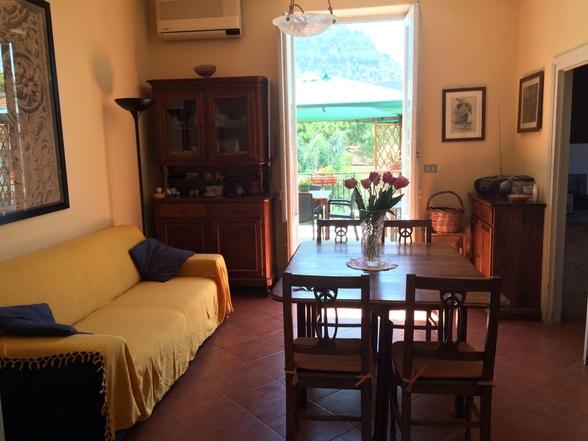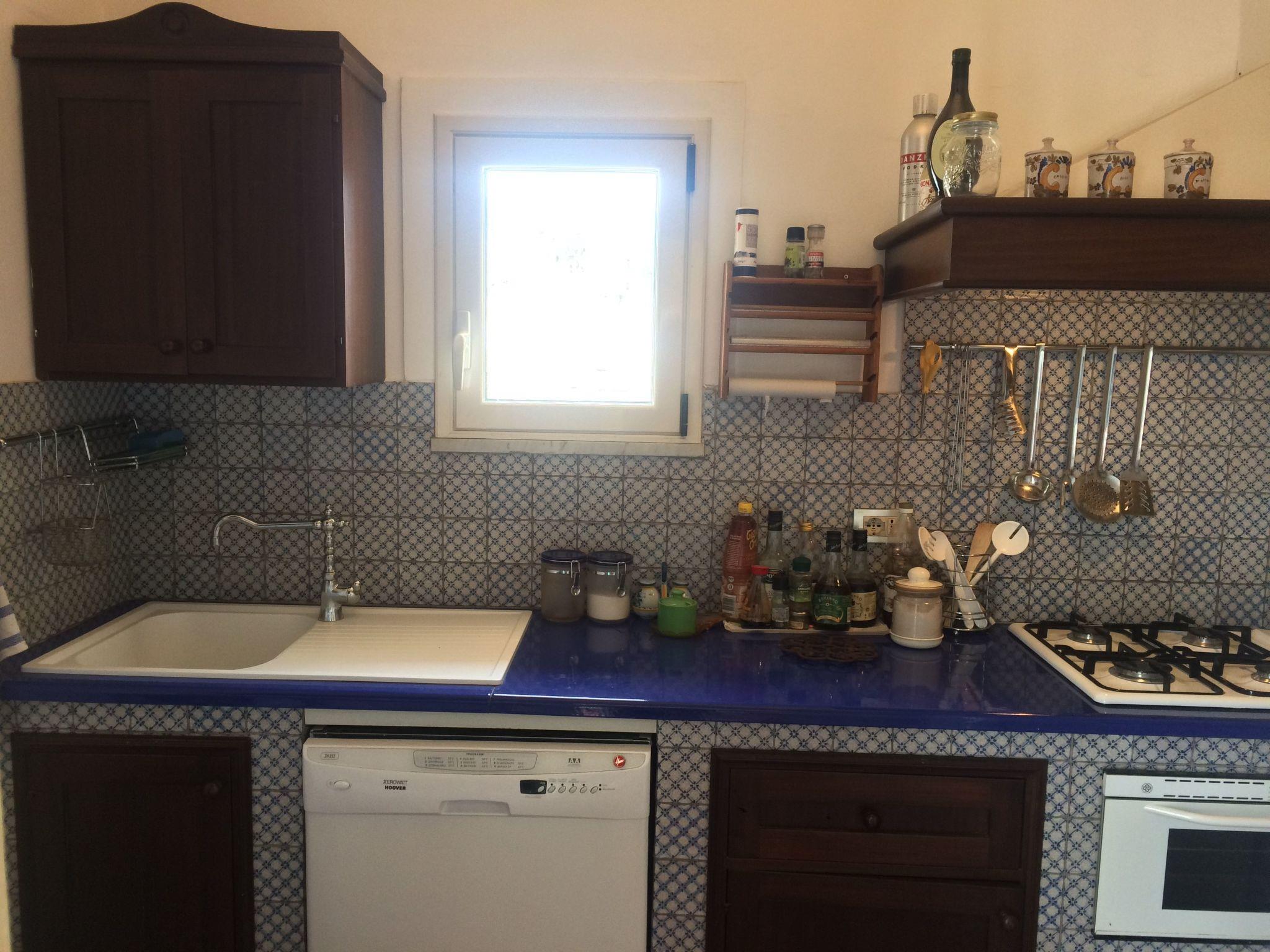 Second floor flat of the villa, approx. 54 sqm, consists of the following rooms: an air-conditioned living/dining room, flat-screen TV and a sofa bed for two persons; a bedroom (next to the living room) with a double bed and a large fan; a fully equipped kitchen with gas cooker, electric oven, extractor hood, dishwasher, large refrigerator with freezer, coffee maker, toaster, plenty of plates and glasses, milk cups, tea, coffee, plenty of cutlery, table cloths, pots and pans and kitchen utensils, iron and ironing board. A second bedroom with two bunk beds and a fan. Lastly, two bathrooms with shower and bidet; in one there is also a washing machine. The flat is heated by an autonomous methane gas system and cooled by an air-conditioner located in the dining room, which is the central room of the flat. The house is very ventilated but, if it is 40 degrees outside, you lock yourself in and turn on the air-conditioner.