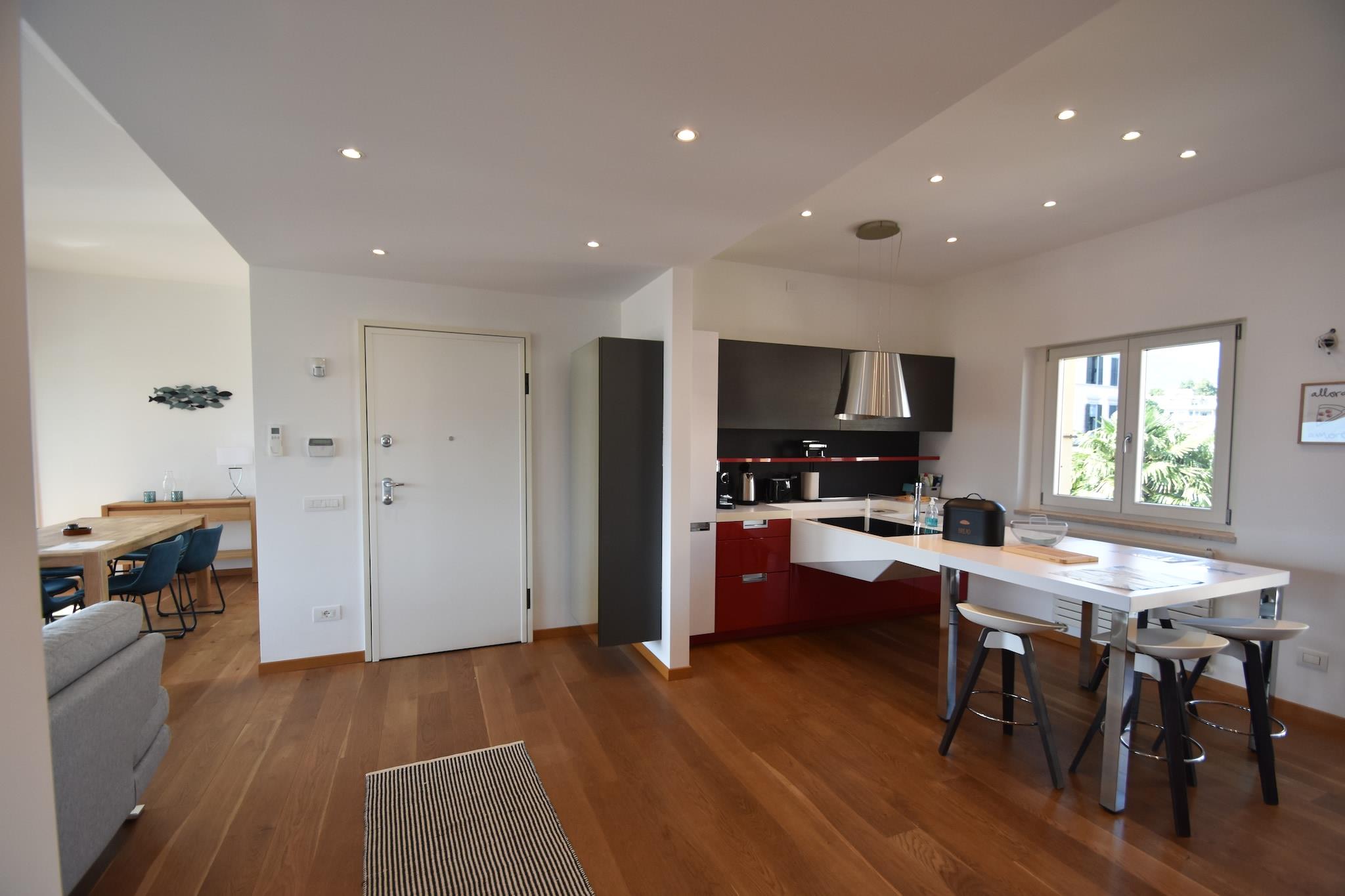 På 2. etage: (Køkken, stue / spisestue, soveværelse(dobbeltseng), soveværelse(dobbeltseng), soveværelse(enkeltseng, enkeltseng), badeværelse, badeværelse, balkon, balkon, balkon) garage, Fjernsyn, kaffemaskine, mikrobølgeovn, opvaskemaskine , bruser, vaskemaskine, varme, klimaanlæg, terrasse, have(deles med andre gæster), cykelopbevaring, liggestole, elevator