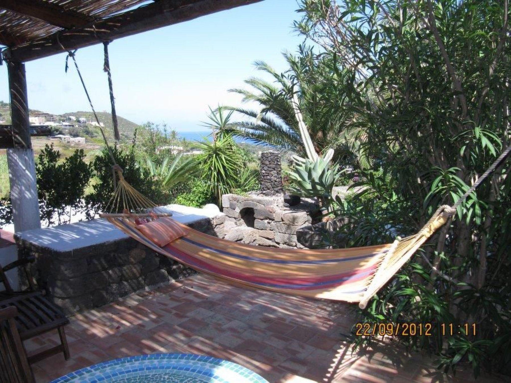 Outside you will find a large covered terrace with a sun umbrella, from which you can admire a beautiful view of the sea and the lush surrounding landscape, rich in vineyards, olive trees and capers.