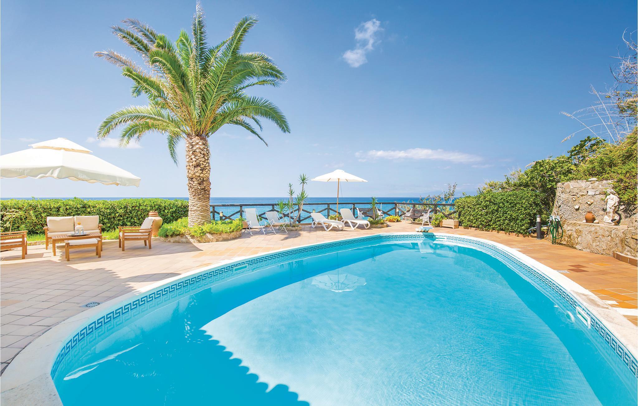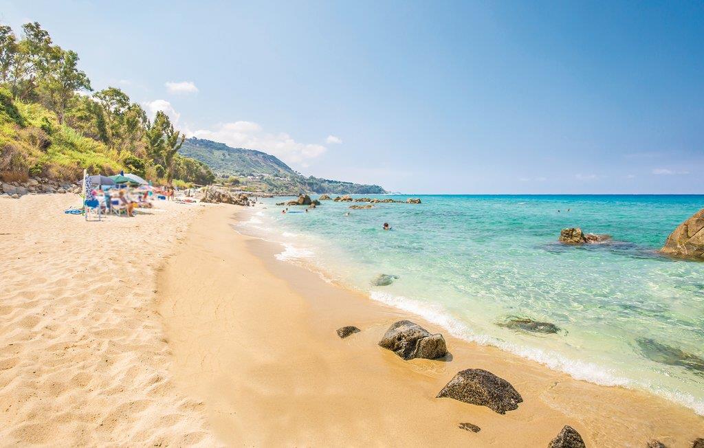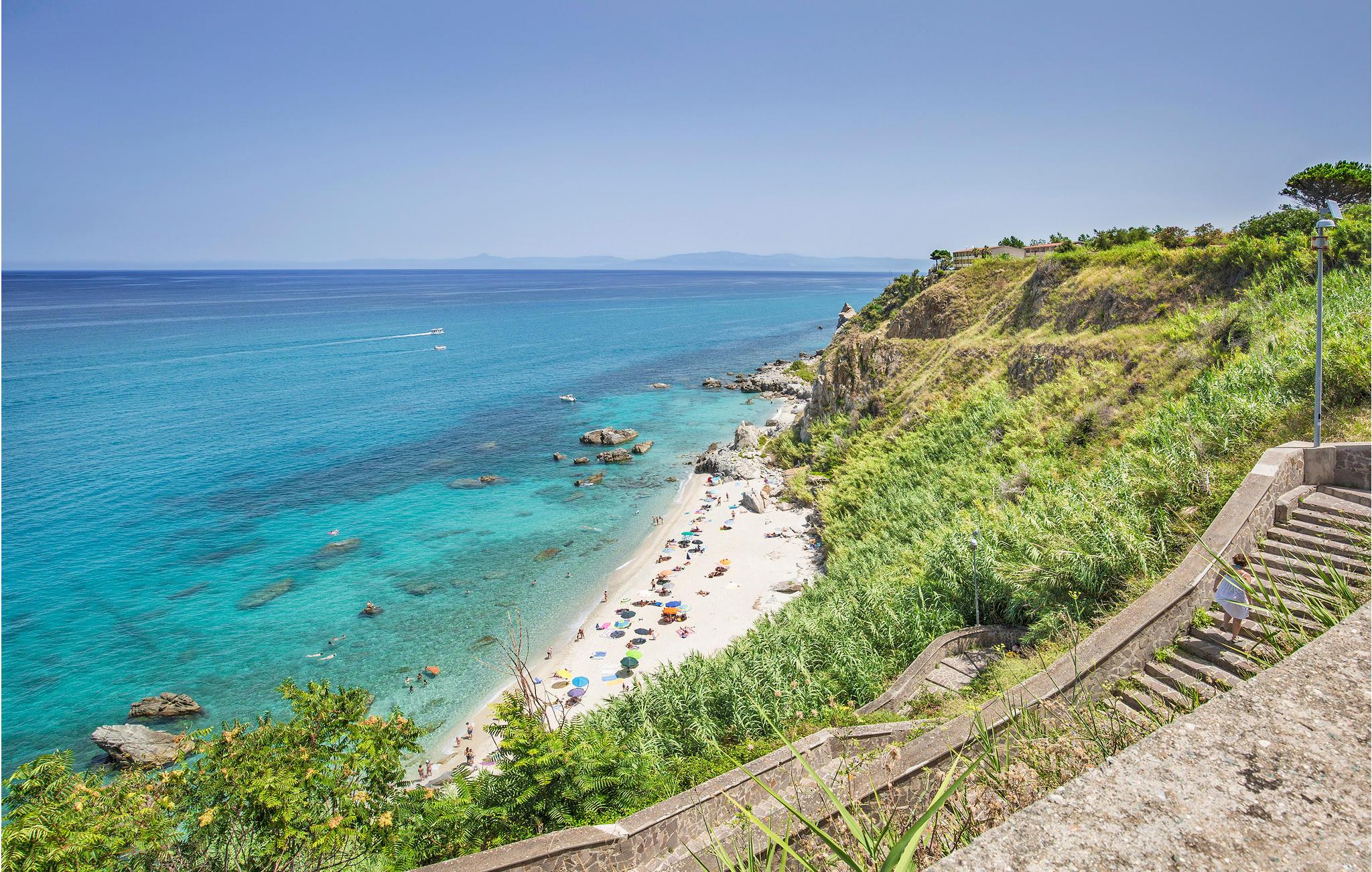 Dejligt feriehus med privat pool i skønne panoramaomgivelser kun 150 m fra stranden. I er omgivet af 400 m² udendørsområde i boligkomplekset Costa dei Monaci, ca. 4 km fra Parhelia, nær et af Kalabrien smukkeste kystafsnit. Huset byder på to dejligt udstyrede terrasser til måltider i det fri samt med havemøbler, solsenge og grill. Dette kystafsnit er kendt og elsket af alle der holder af vandsport og af at dykke, i det hele taget er regionen rig på seværdigheder. Udflugtstip: Tropea ca. 7 km (kendt for dyrkning af røde løg), Vibo Valentia, med mange færgeruter til de Æoliske øer 30 km, den karakteristiske by Pizzo Calabro, med smuk gammel bykerne, 30 km. Det er muligt, at sandstrandene på nogle tidspunkter på året, afhængig af tidevandet, ikke er der længere.