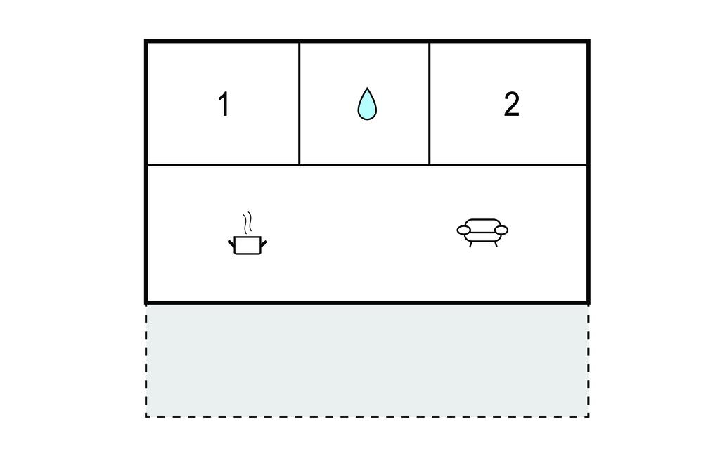Opholdsstue/køkken - 1 Soveplads. (Sofa, madras eller lignende).