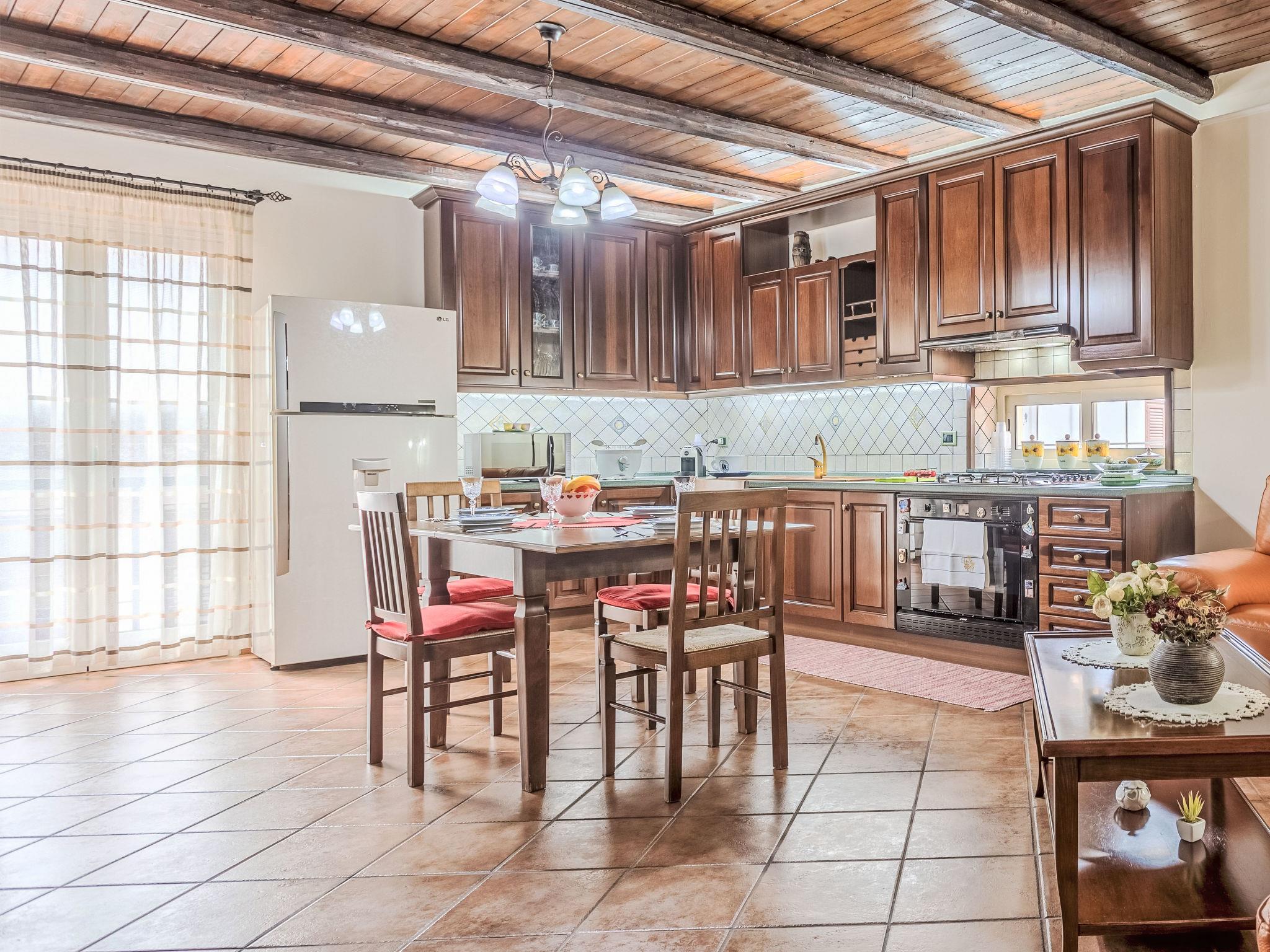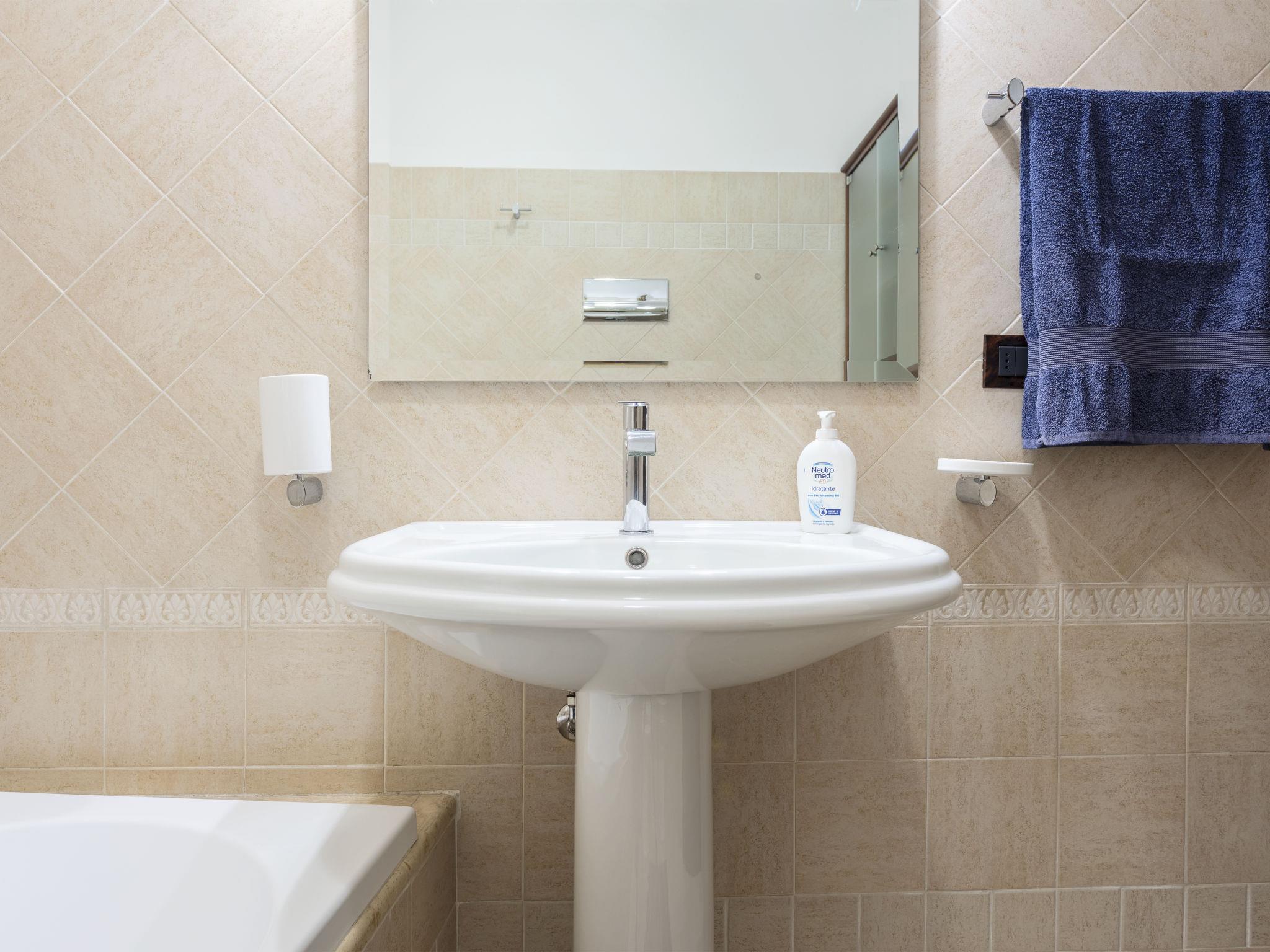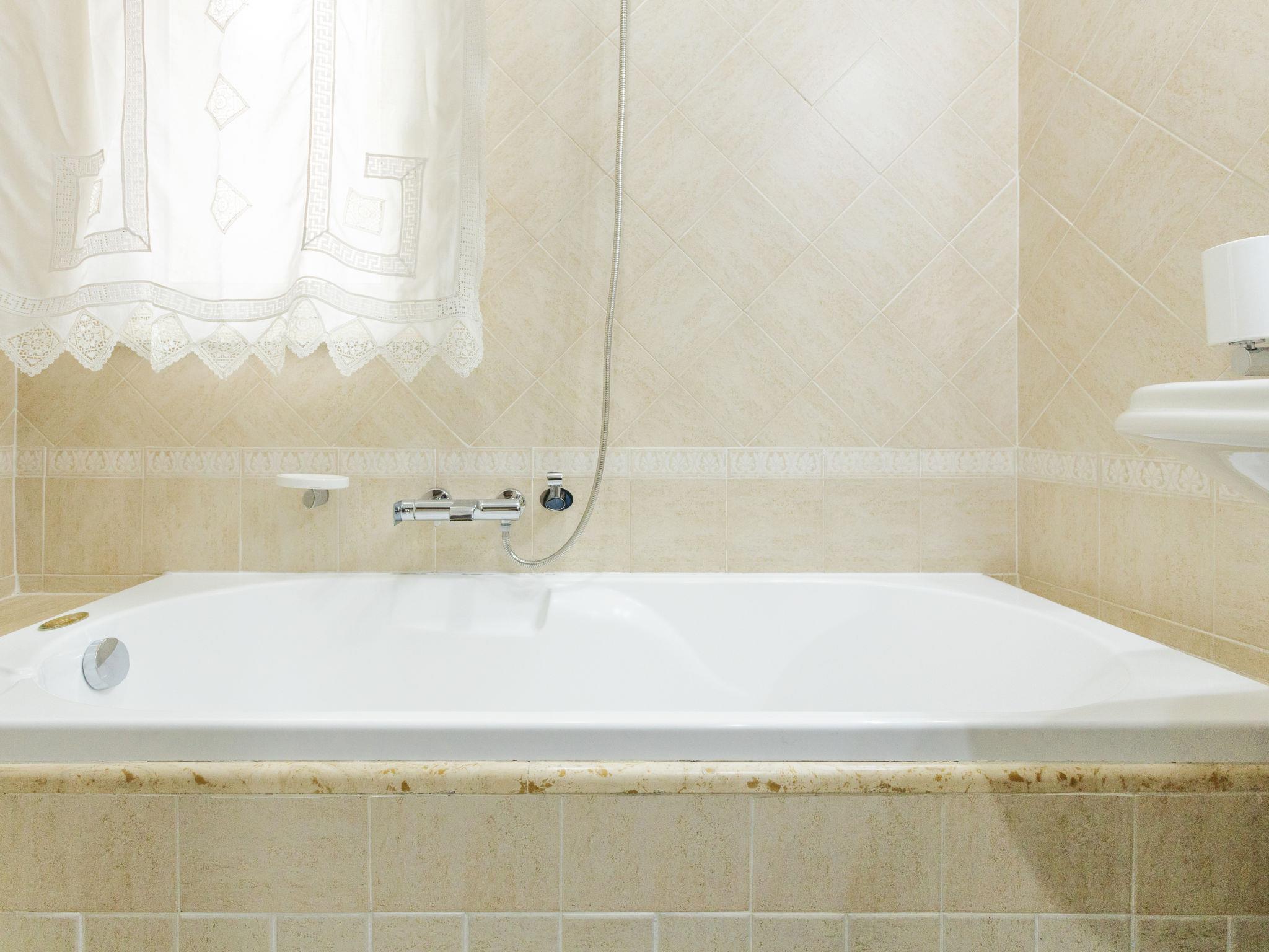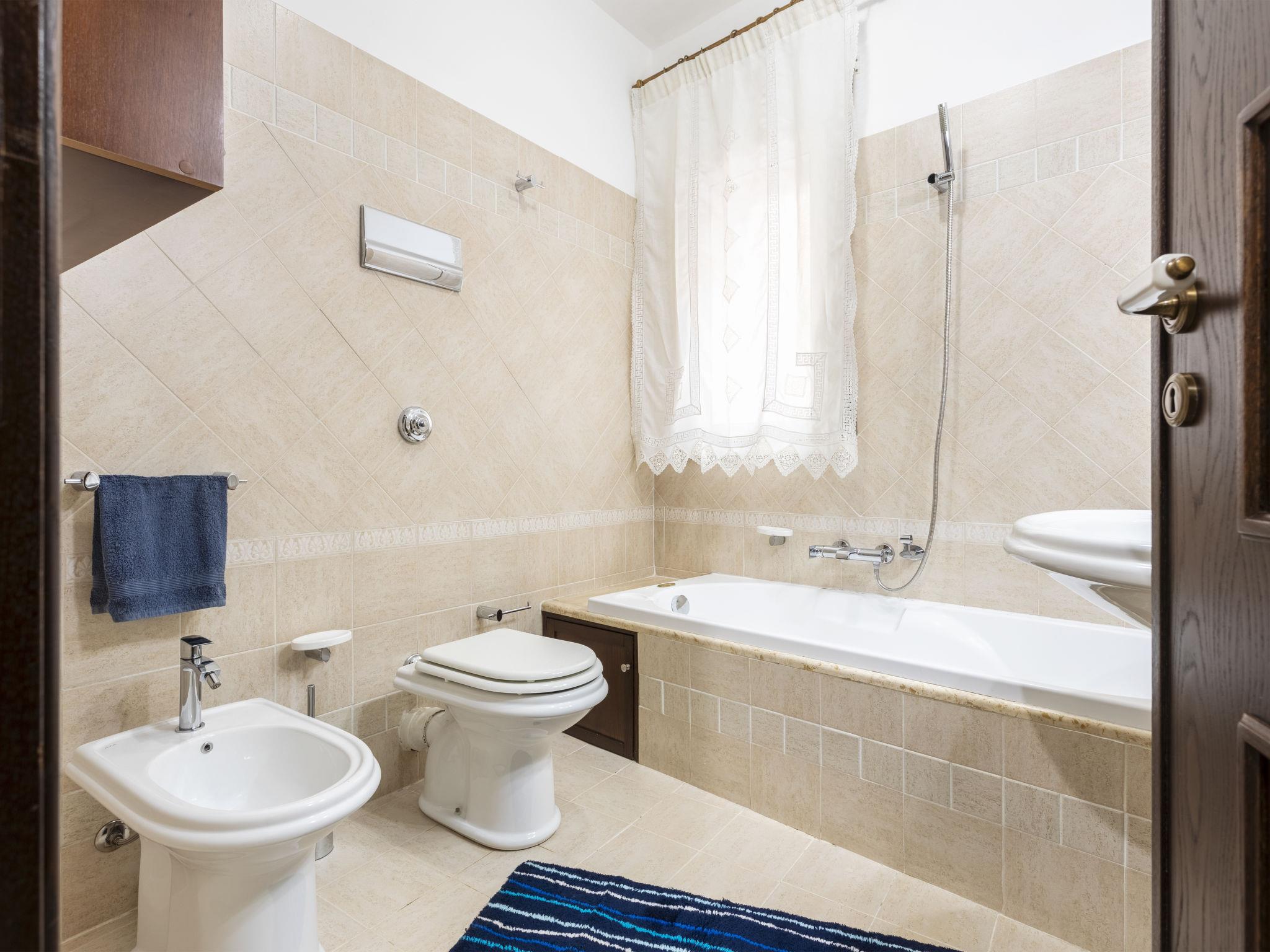 3-room terraced house 90 m2 on 2 levels on 1st floor. Comfortable and tasteful furnishings: entrance hall. 1 double bedroom with TV (flat screen), air conditioning and forced-air heating. Exit to the balcony. 1 room, without window with 2 beds and fan. Bath/shower/bidet/WC. Upper floor: large living/dining room with 1 double sofabed and TV (flat screen), air conditioning and forced-air heating. Exit to the balcony. Kitchenette (oven, 5 gas rings, toaster, kettle, microwave, electric coffee machine). Bathroom. Heating, forced-air heating. Heating available only from 01.12. to 31.03, Heating not available in all rooms. 2 balconies 3 m2. Facilities: washing machine, dryer, iron, children's high chair, baby cot for up to 2 year olds (extra), hair dryer. Internet (WiFi, free). Please note: smoke alarm, fire extinguisher. IT082007B4I4YZ6YYU