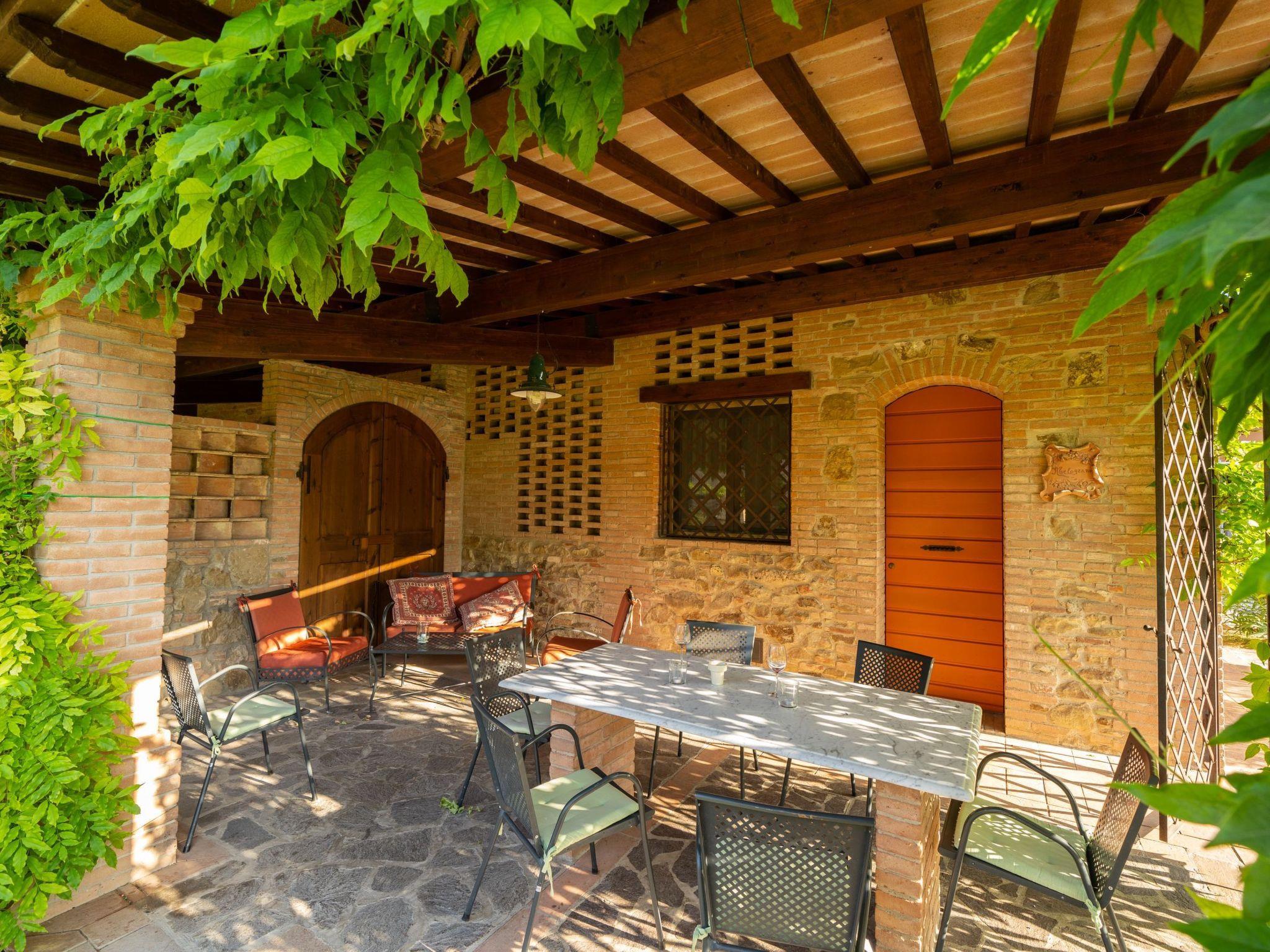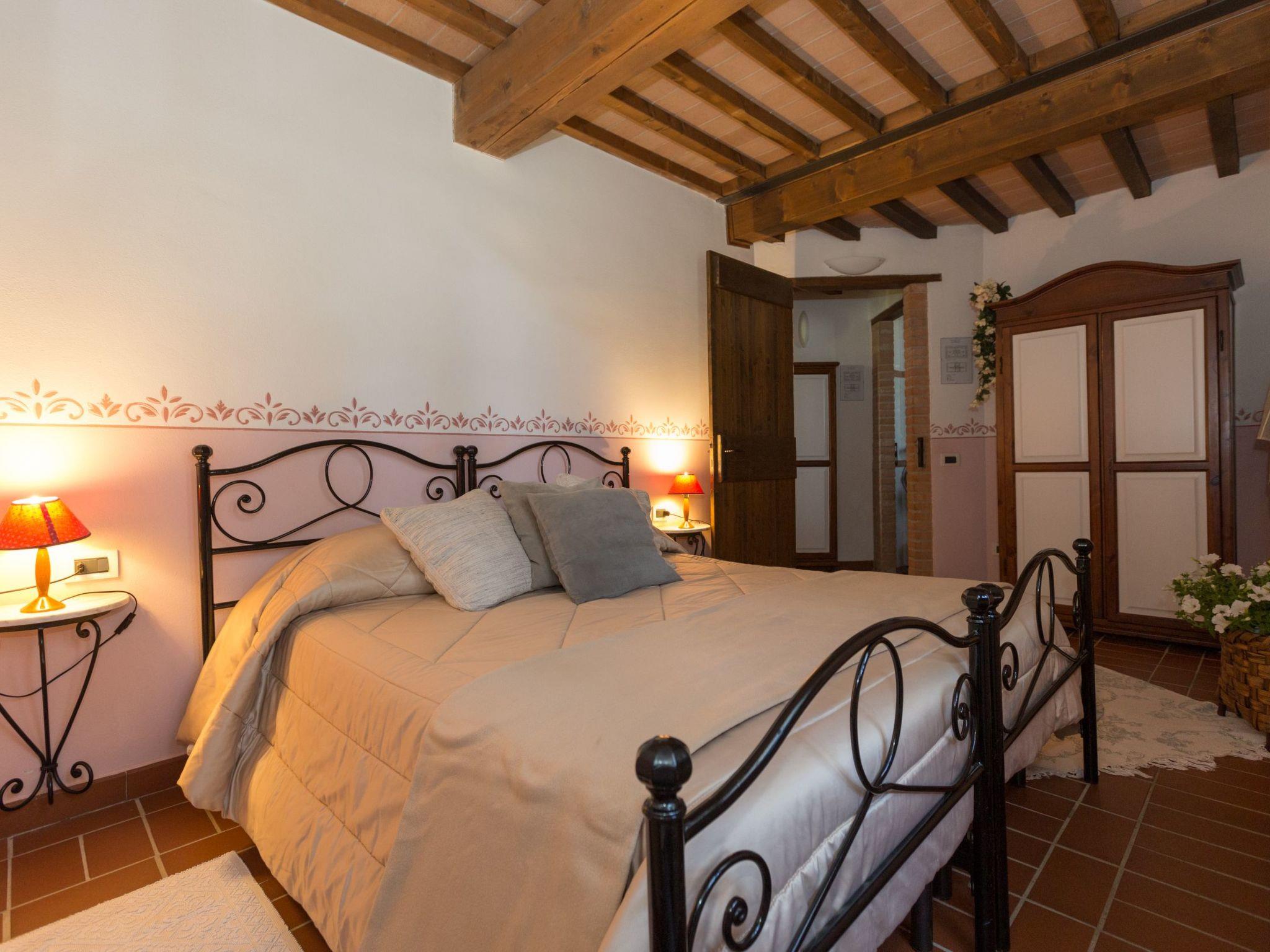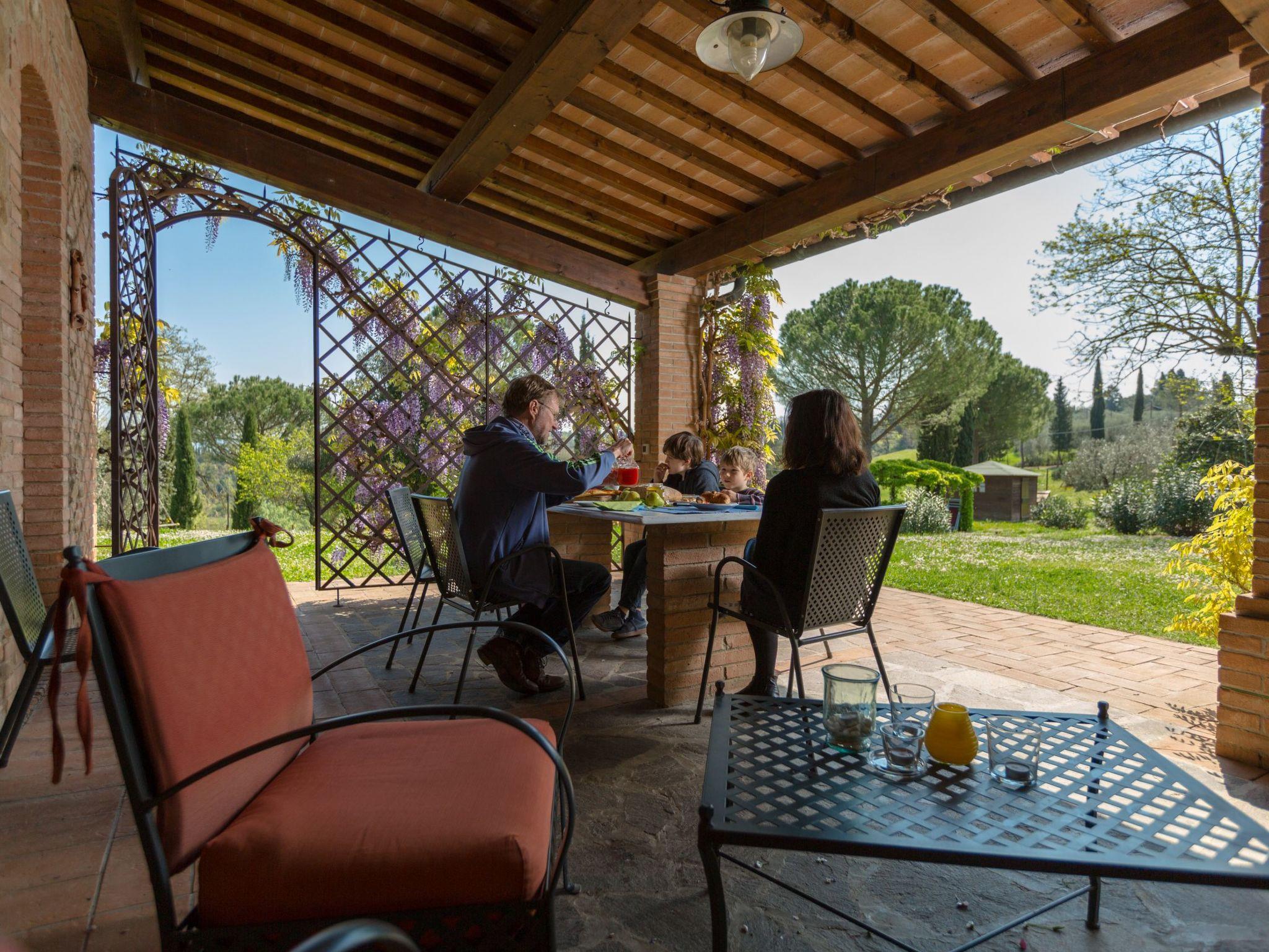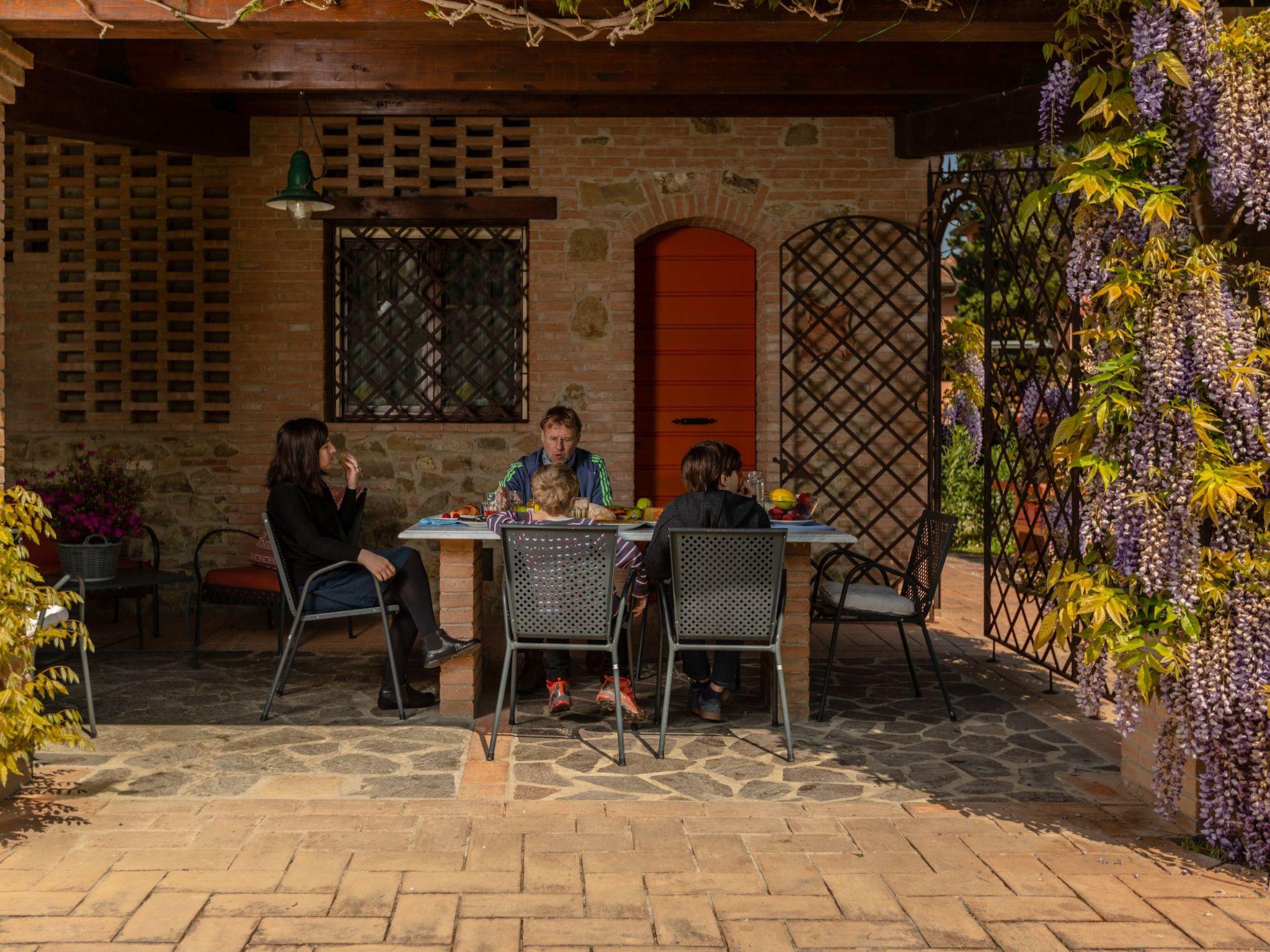 The holiday home has 8 comfortable flats furnished in Tuscan style, all with private terraces, terracotta floors and wood-beamed ceilings. The house is surrounded by a 7000-square-metre garden with swimming pool (20x8 m, open from May to October, depth: 1.4 to 3.0 metres) with hydro-massage corner, table tennis table, children's playground, outdoor barbecue and bocce court.