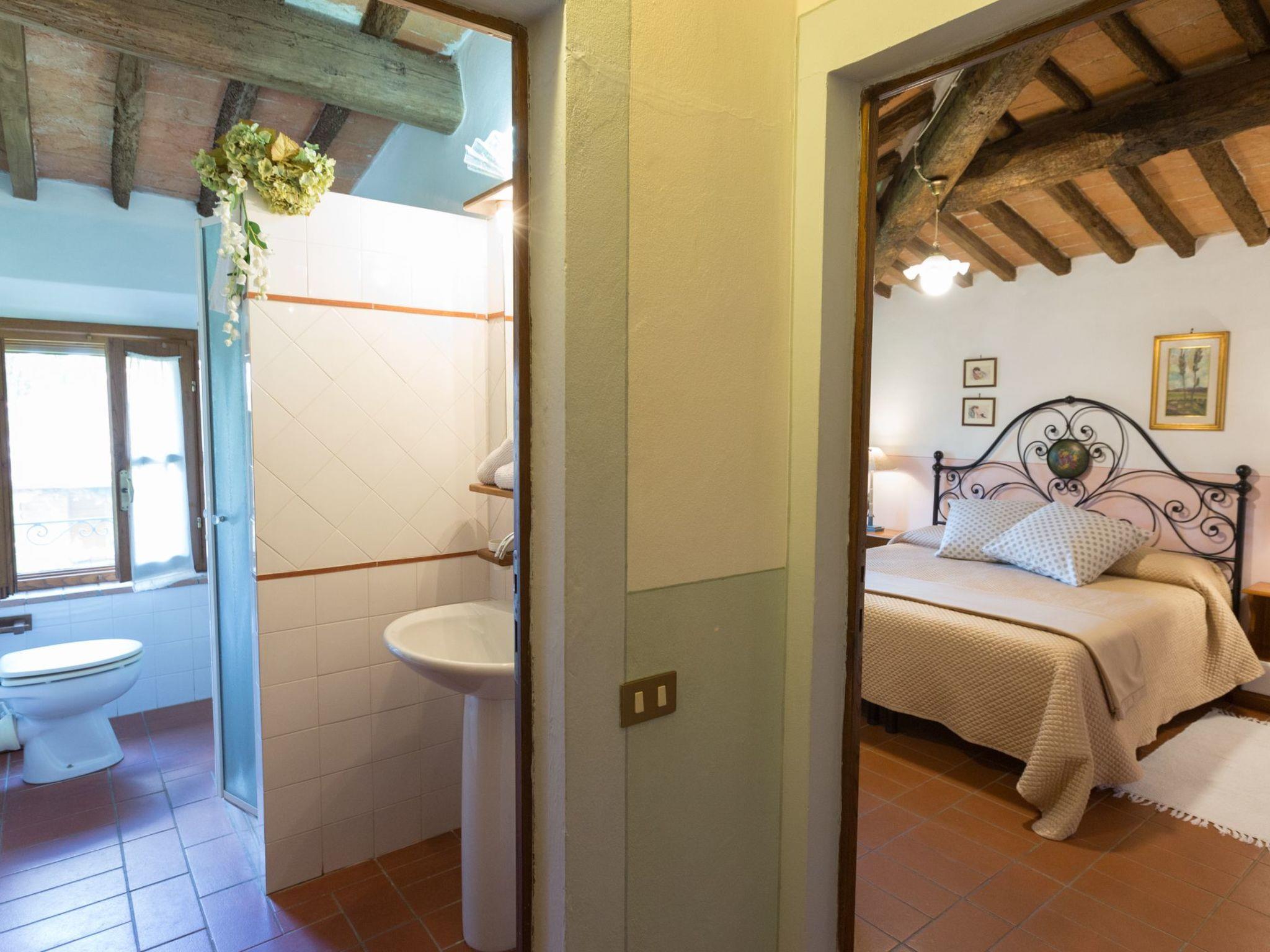 The holiday home has 8 comfortable flats furnished in Tuscan style, all with private terraces, terracotta floors and wood-beamed ceilings. The house is surrounded by a 7000-square-metre garden with swimming pool (20x8 m, open from May to October, depth: 1.4 to 3.0 metres) with hydro-massage corner, table tennis table, children's playground, outdoor barbecue and bocce court.