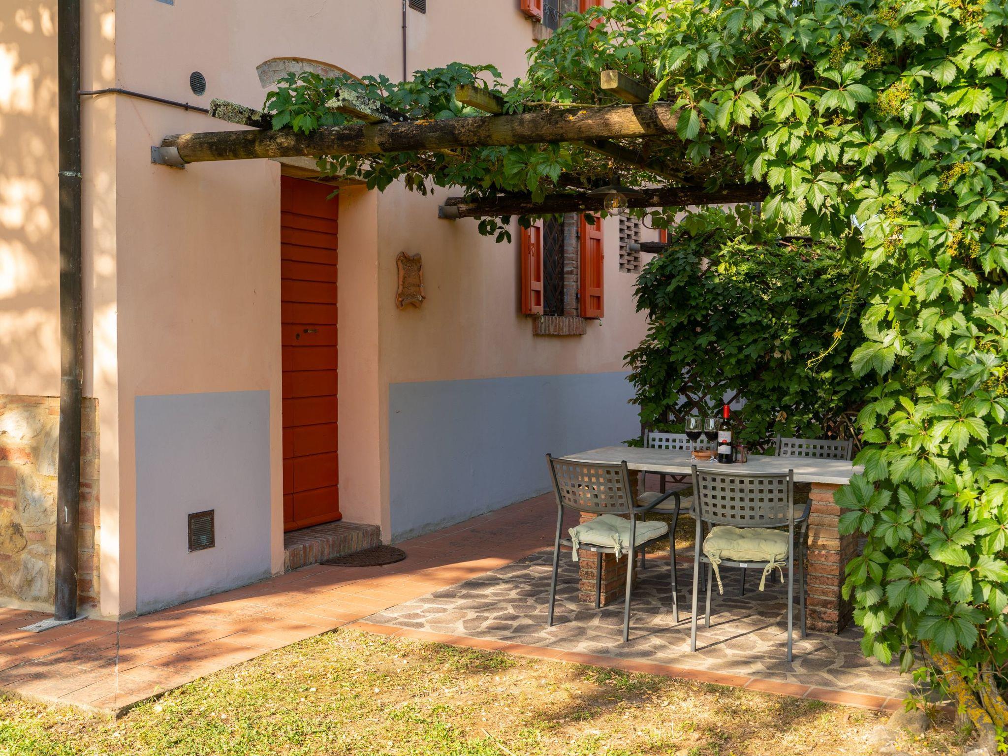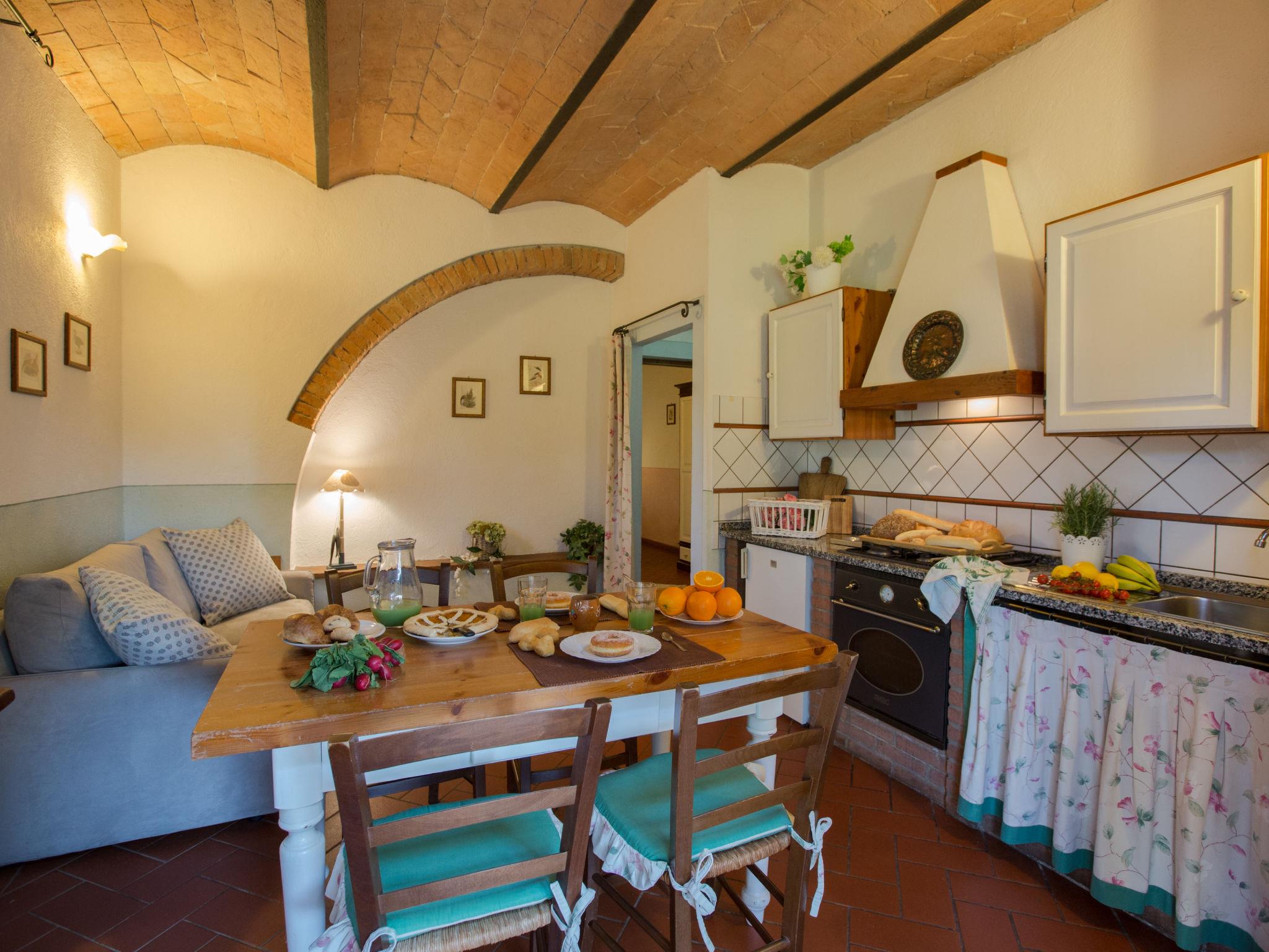 Large working farm. 8 apartments in the property. Property composed of main house and outbuilding 9.8 km from the centre of Peccioli, 24 km from the centre of Volterra, 35 km from the centre of San Gimignano, in a sunny position on top of a hill, 45 km from the sea. For shared use: garden (fenced), swimming pool (20 x 8 m, depth 140 - 300 cm, seasonal availability: 01.May. - 30.Oct.). Outdoor shower, table tennis, boccia, garden furniture, barbecue, children's playground, pool maintenance by the owner/gardener. In the house: lounge with TV, WiFi, central heating system, heating to be paid on the spot, heating available only from 01.Nov. - 07.Apr.. Breakfast possible (extra). Motor access to the house (800 m via unmade road). Parking on the premises. Grocery 3.8 km, supermarket 3.8 km, restaurant 500 m, bar 1 km, bus stop 1.5 km, sandy beach "Marina di Cecina, Vada, Tirrenia" 45 km, shingle beach "Castiglioncello" 60 km, thermal baths "Casciana Terme" 29 km. Golf course (18 hole) 13 km. Nearby attractions: Lajatico 21 km, Chianni 25 km, San Miniato 45 km, Pisa 55 km, Lucca 57 km, Bolgheri 62 km. Suitable for events.