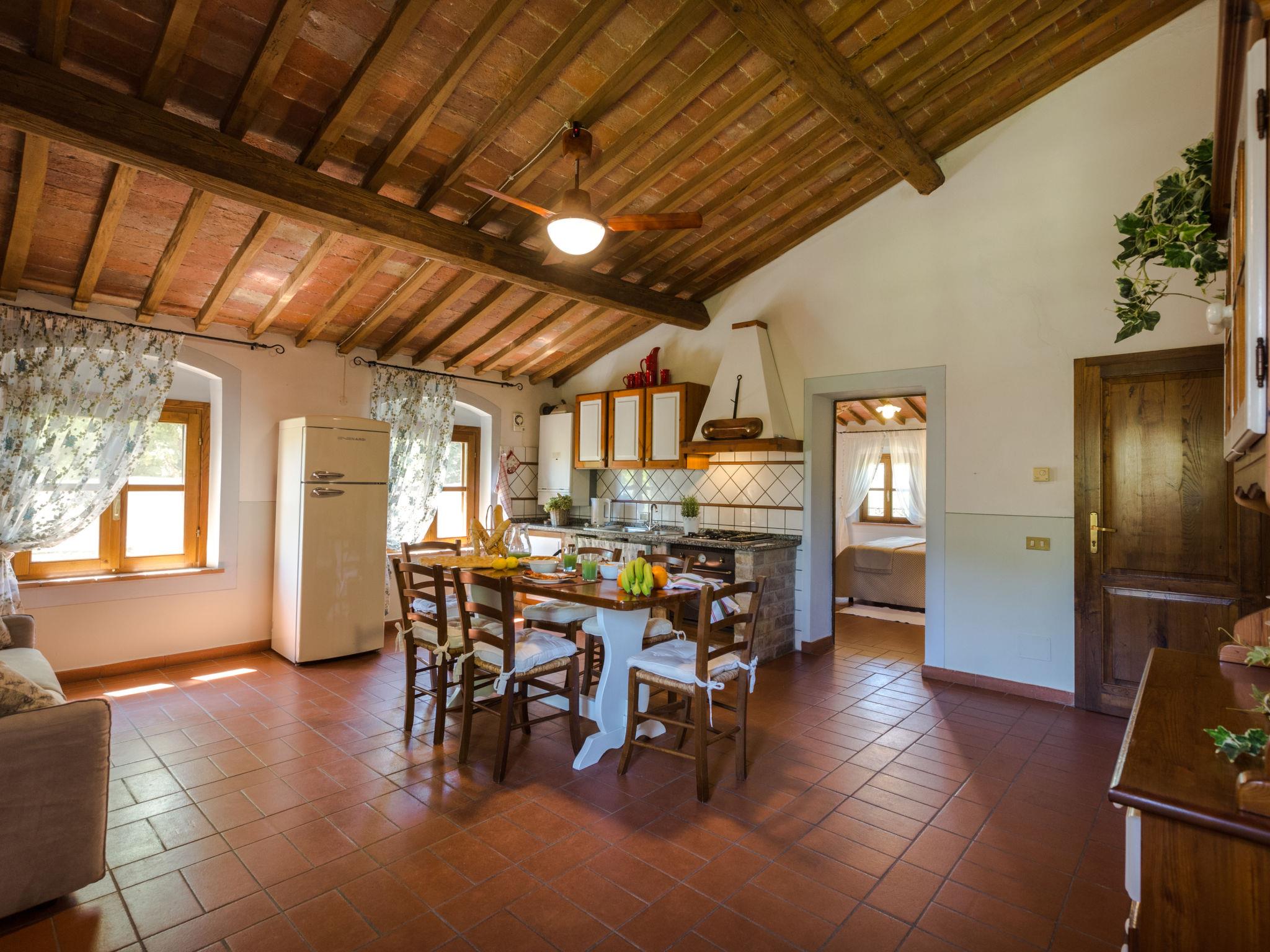 Large working farm. 8 apartments in the property. Property composed of main house and outbuilding 9.8 km from the centre of Peccioli, 24 km from the centre of Volterra, 35 km from the centre of San Gimignano, in a sunny position on top of a hill, 45 km from the sea. For shared use: garden (fenced), swimming pool (20 x 8 m, depth 140 - 300 cm, seasonal availability: 01.May. - 30.Oct.). Outdoor shower, table tennis, boccia, garden furniture, barbecue, children's playground, pool maintenance by the owner/gardener. In the house: lounge with TV, WiFi, central heating system, heating to be paid on the spot, heating available only from 01.Nov. - 07.Apr.. Breakfast possible (extra). Motor access to the house (800 m via unmade road). Parking on the premises. Grocery 3.8 km, supermarket 3.8 km, restaurant 500 m, bar 1 km, bus stop 1.5 km, sandy beach "Marina di Cecina, Vada, Tirrenia" 45 km, shingle beach "Castiglioncello" 60 km, thermal baths "Casciana Terme" 29 km. Golf course (18 hole) 13 km. Nearby attractions: Lajatico 21 km, Chianni 25 km, San Miniato 45 km, Pisa 55 km, Lucca 57 km, Bolgheri 62 km. Suitable for events.