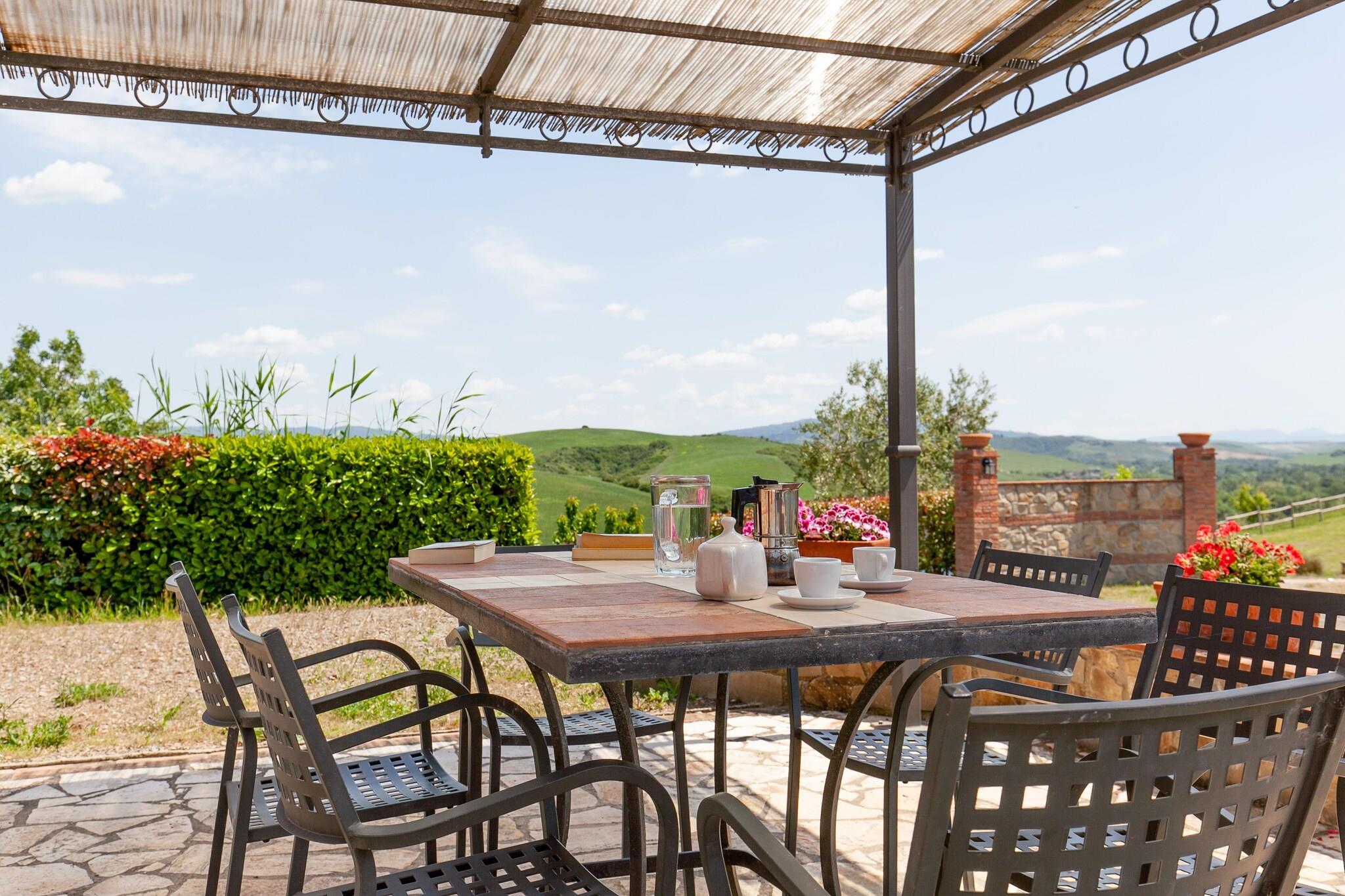 Beliggende blandt grønne bakker, enge og marker, kun 9 km fra den charmerende landsby Peccioli, tilbyder dette fredelige tilflugtssted den perfekte base for at udforske Toscanas hjerte. Omgivet af fortryllende middelalderlandsbyer er byerne Pisa, Lucca, Volterra, San Gimignano, Firenze og Chianti-regionen alle inden for rækkevidde. Nyd den fælles swimmingpool til en forfriskende dukkert og slap af i den møblerede have under den toscanske sol. Peccioli, med sine butikker og restauranter, inviterer dig til at opdage den lokale kultur, mens du vandrer på naturskønne stier og cykler gennem bakkerne med cypresser. Strandene ligger kun 45 km væk, og Pisa Lufthavn ligger kun 50 km fra ejendommen. Ugentlige toscanske middage og brændeovnspizzaaftener giver autentiske kulinariske oplevelser. Vinsmagninger er tilgængelige efter anmodning for at berige dit ophold med regionens fineste smag.