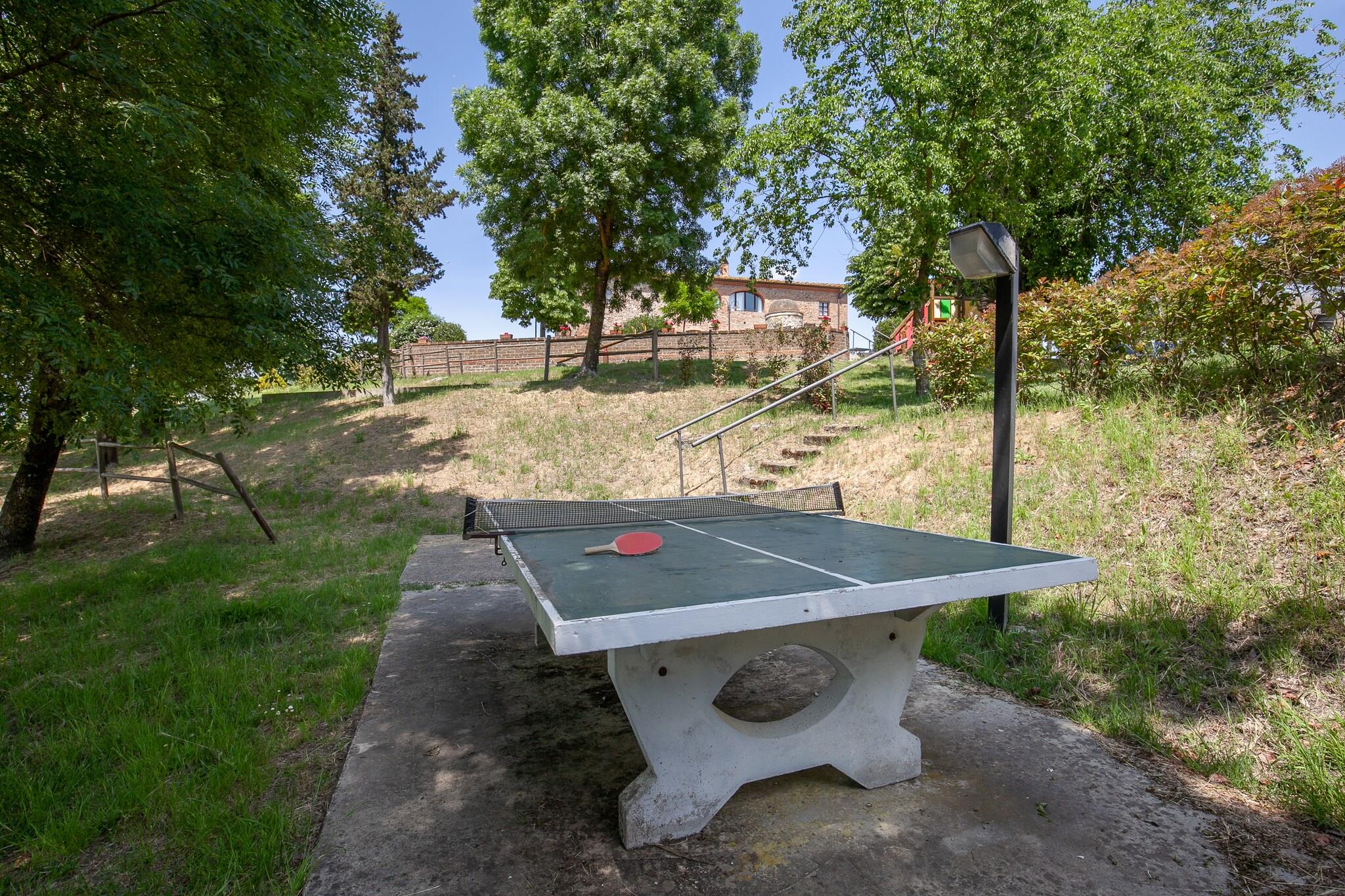 Denne indbydende lejlighed i Fabbrica ligger midt i bølgende grønne bakker og tilbyder den perfekte blanding af rustik karakter og komfort. Det åbne køkken og opholdsstue skaber et hyggeligt sted at slappe af, mens mezzaninen med ekstra senge tilføjer et strejf af charme. Udenfor er en velholdt have med grillhjørne ideel til afslappende eftermiddage, og den fælles swimmingpool er perfekt til en forfriskende dukkert under den toscanske sol. En børneseng er tilgængelig på forespørgsel, hvilket gør dette til et familievenligt tilflugtssted. Kun 9 km væk ligger den fortryllende landsby Peccioli – fyldt med kunsthåndværkerbutikker og middelalderlig karakter. Lejligheden er en ideel base for at udforske Toscanas ikoniske destinationer, herunder Pisas Skæve Tårn, Firenzes kunstneriske hjerte og San Gimignano's dramatiske skyline. Volterras etruskiske charme og Sienas gotiske skønhed er også inden for rækkevidde. For friluftsentusiaster snor sig naturskønne cykelstier gennem cypressbeklædte veje, og strandene ved den tyrrhenske kyst ligger kun en kort køretur væk. Toscanske traditioner kommer til live her – ikke kun i landskabet, men også på tallerkenen. Hver mandag kan gæsterne nyde en autentisk toscansk middag på stedet, og torsdage er reserveret til brændefyrede pizzaaftener. Lokale vingårde tilbyder smagsprøver på forespørgsel, så du kan prøve Chianti og andre regionale vine. I Peccioli kan du prøve "La Vecchia Carraia" for solide lokale retter eller "Pasticceria Ferretti" for uforglemmelige desserter. Enkel, smagfuld og forankret i... tradition – dette er Toscana, når det er allerbedst.
