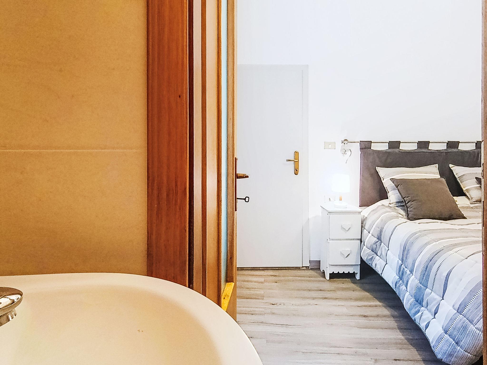 "Catherine", 3-room apartment 75 m2 on 1st floor. Spacious and bright, simple and cosy furnishings: living room with 1 double sofabed and TV. 2 double bedrooms, each room with 1 double bed and shower/WC. Kitchen (oven, 4 induction hot plates, toaster, kettle, microwave, electric coffee machine) with dining table. Shower/WC. Heating. Facilities: washing machine, iron, hair dryer. Internet (WiFi, free). Parking at the house. Please note: one double bedroom is outside the apartment. Non-smokers only. Maximum 1 pet/ dog allowed. Smoke alarm, fire extinguisher, no lift. IT022137C27ZAVHTI3