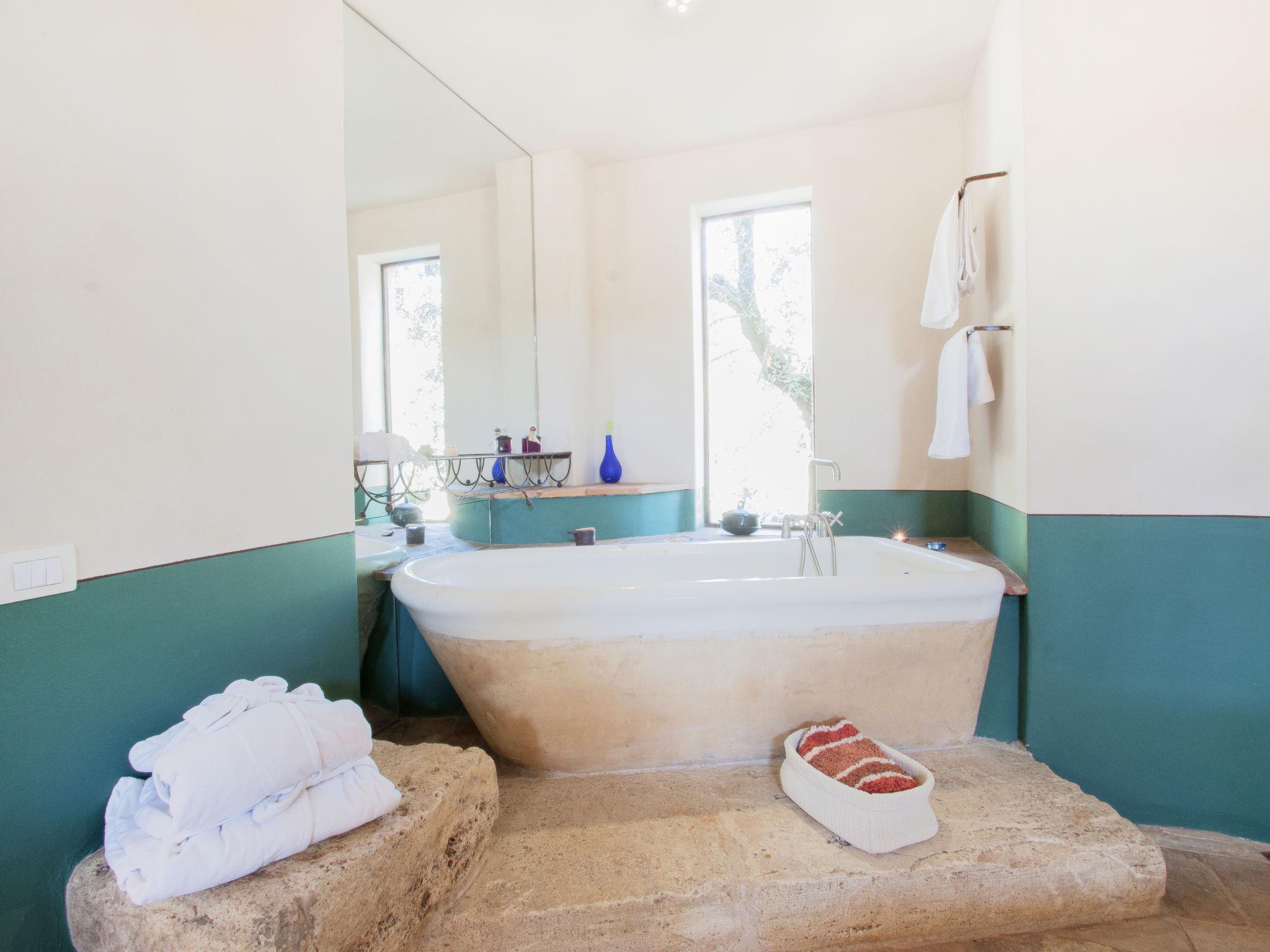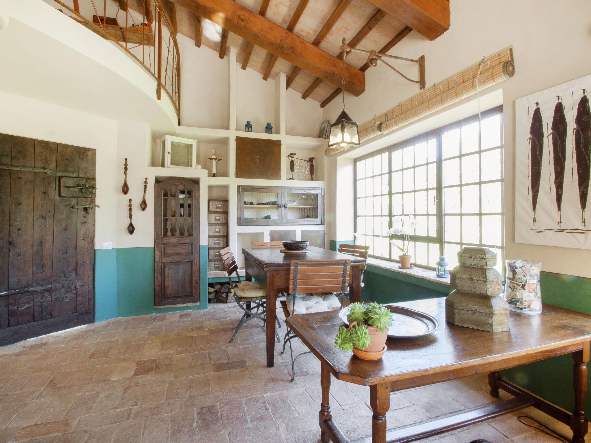 2-room house 100 m2. Renovated, very beautiful and stylish furnishings: living/dining room with open-hearth fireplace, dining table and air conditioning. Exit to the garden. 1 open double bedroom with with corner bath. Exit to the loggia. Kitchenette (oven, microwave, freezer, electric coffee machine). Shower/bidet/WC, double hand-basin. Gas heating (extra), air-conditioning. Heating available only from 01.11. to 15.04. Upper floor: open gallery with sloping ceilings, ceiling height 80 - 180 cm with 1 double bed and satellite TV (flat screen). Wooden floors. Patio, garden, porch. Terrace furniture, barbecue, deck chairs, sitting area. Beautiful view of the countryside. Facilities: washing machine, safe, hair dryer. Internet (WiFi, free). Maximum 1 pet/ dog allowed. Cats are not permitted in the house. Please note that the bed on the upper level is a futon bed. IT055026C270035106