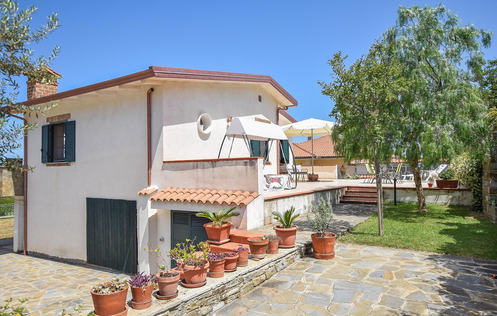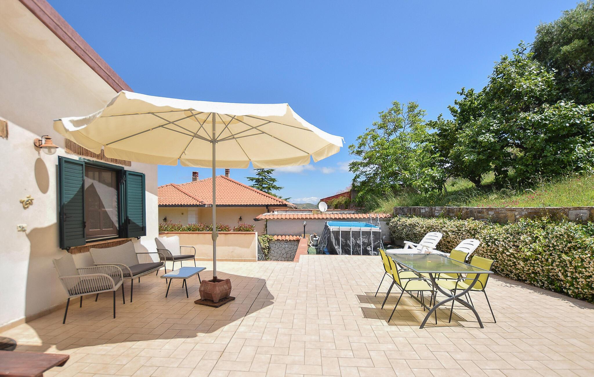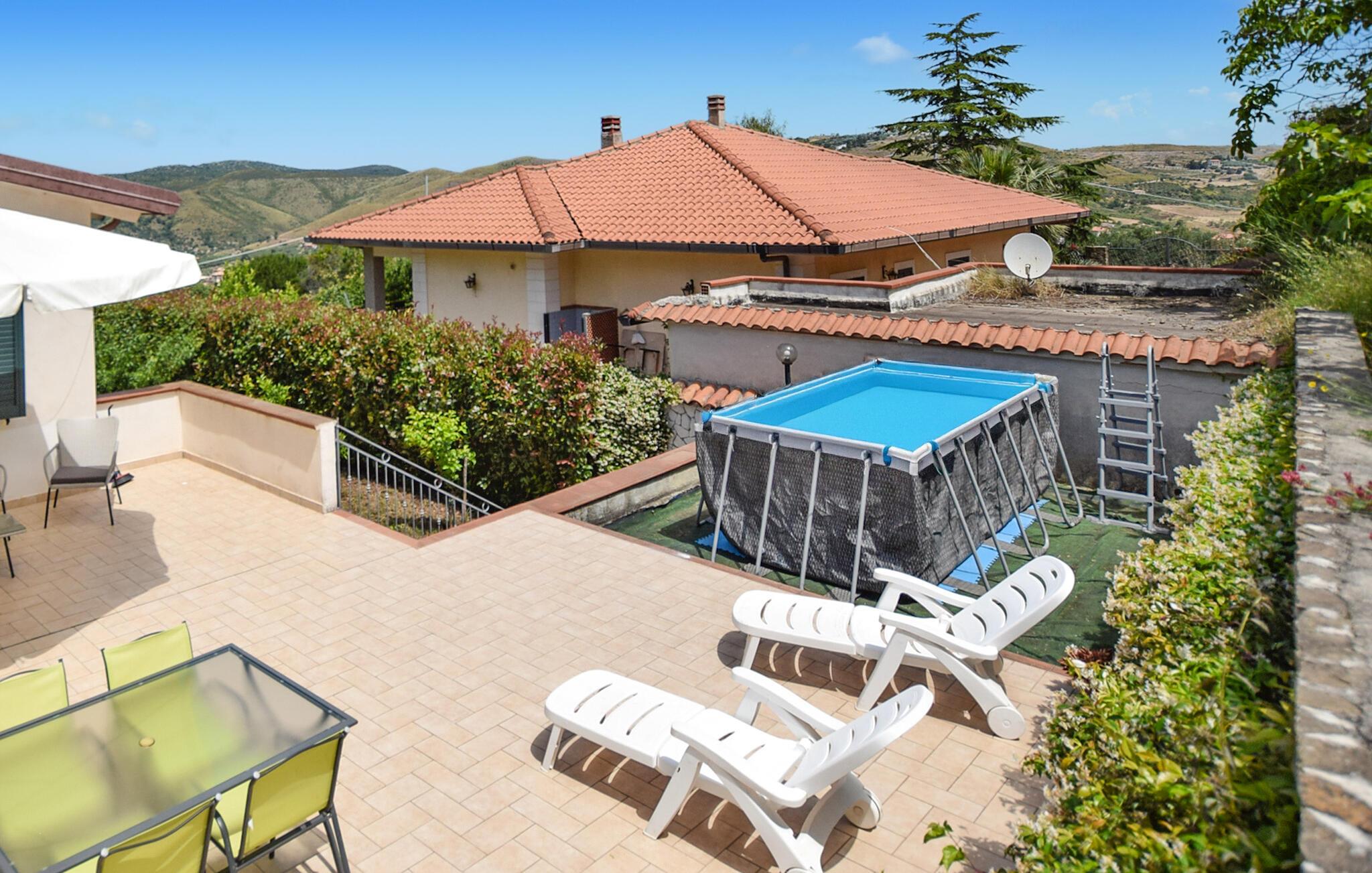Nyd herlige timer i poolen og en vidunderlig panoramaudsigt i dette rummelige feriehus.
