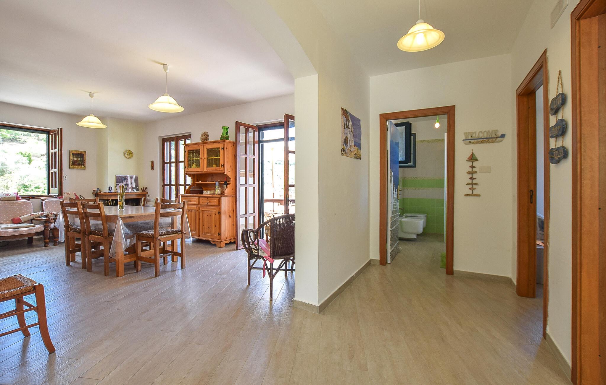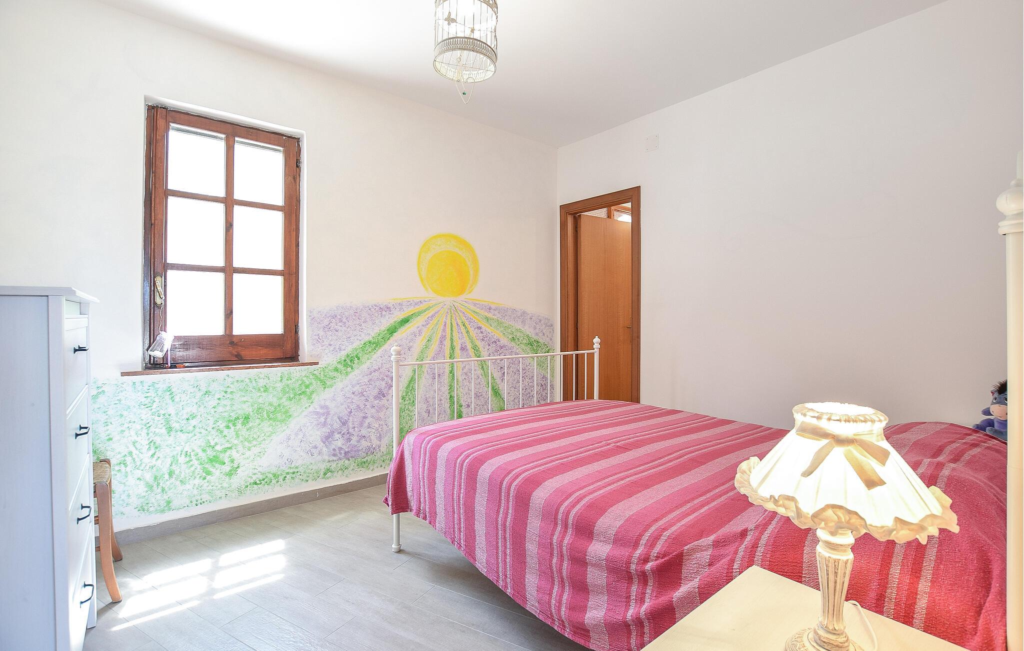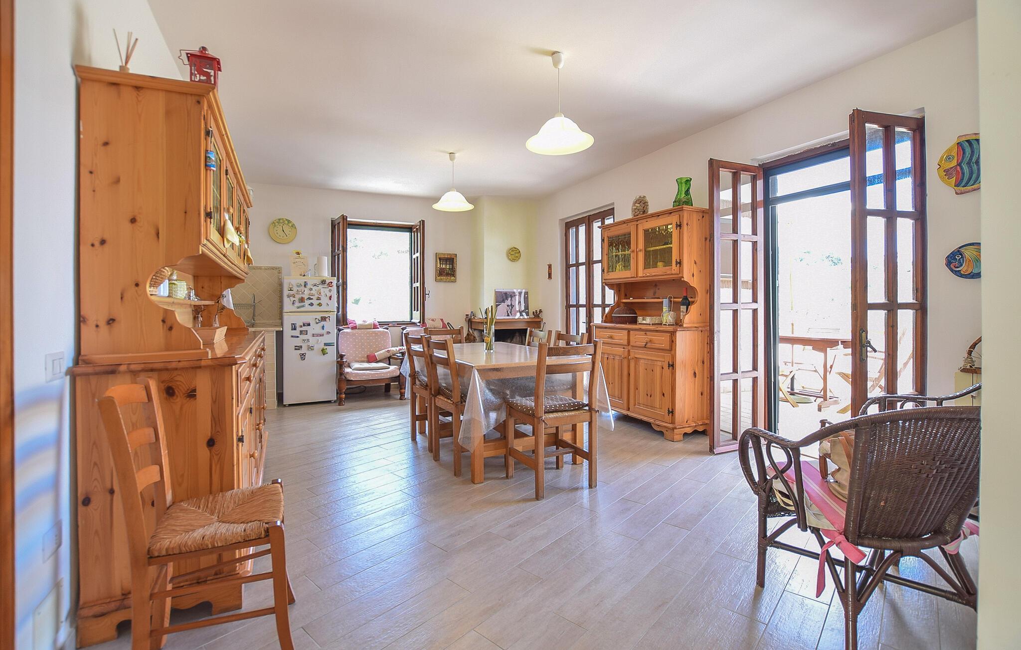 Dette lyse og indbydende feriehus giver jer solrige dage midt i det maleriske landskab. Tryl lækre pastaretter frem sammen i det åbne køkken, og lad den behagelige brise strømme gennem rummene under fælles måltider. På køligere dage kan I tænde op i pejsen og nyde hyggelige spilleaftener med lyden af den sagte knitren fra ilden.