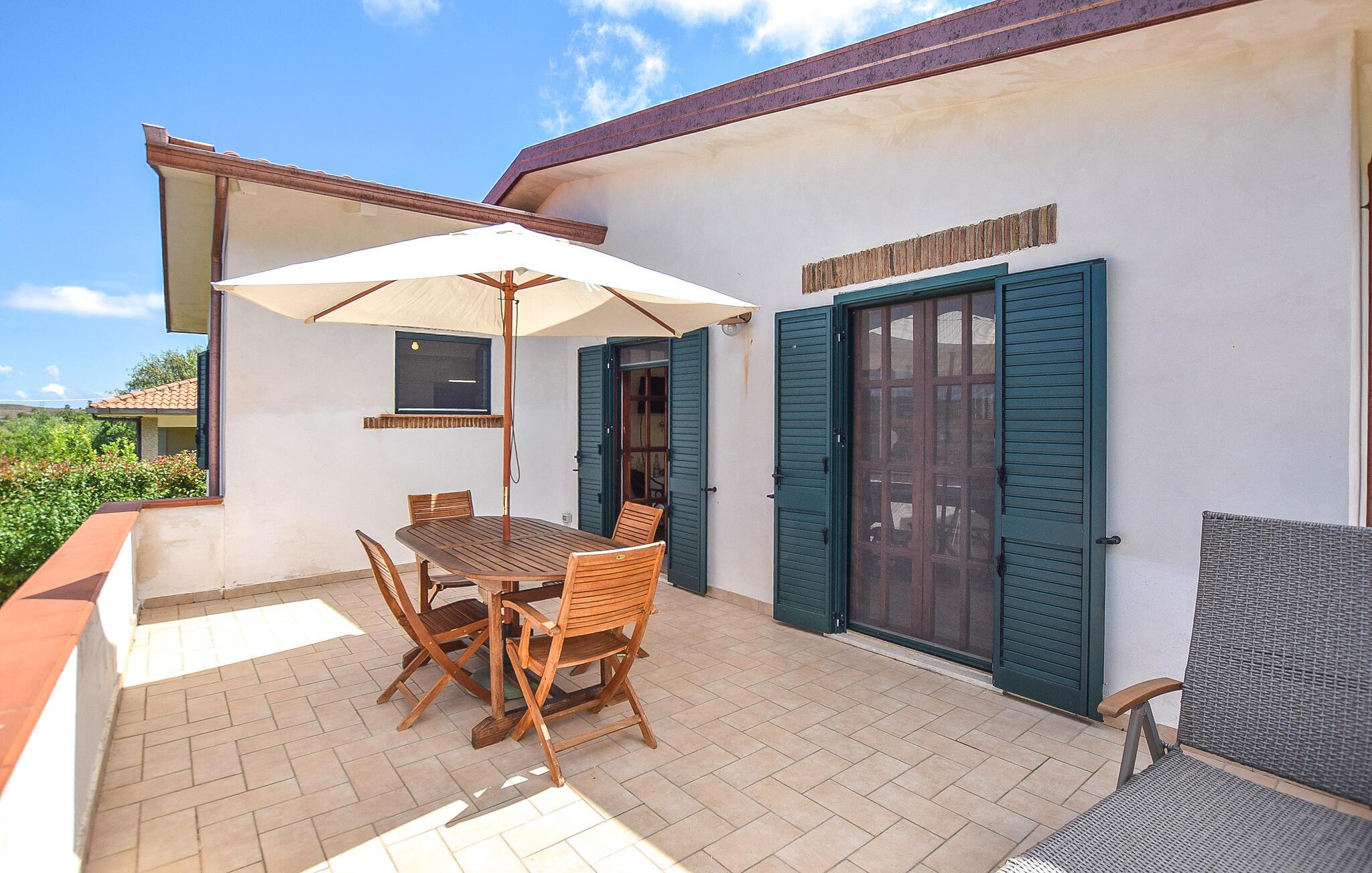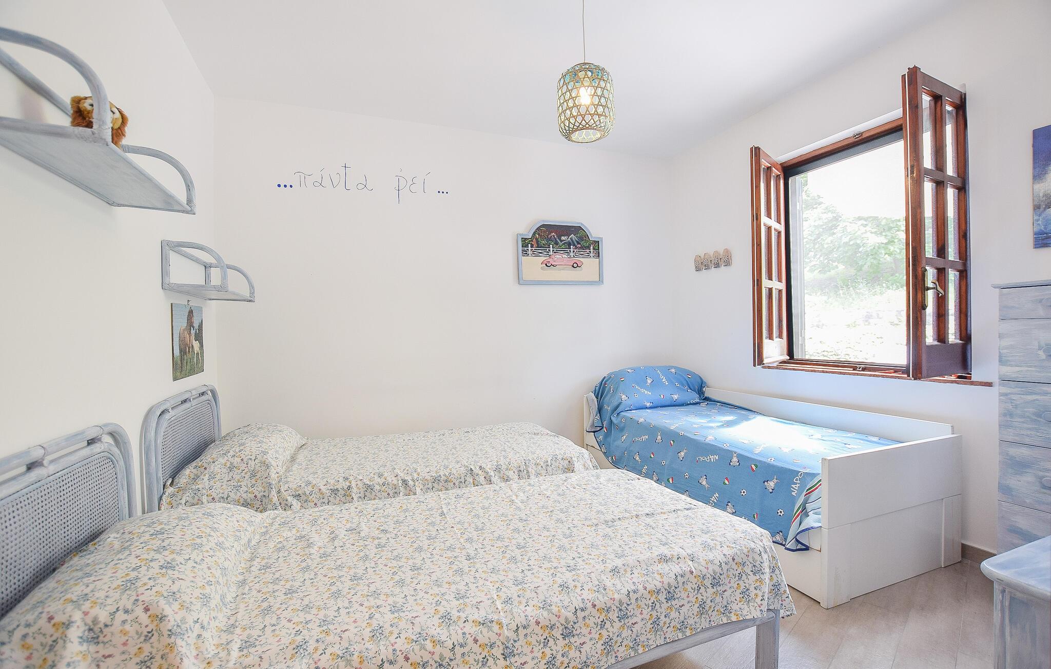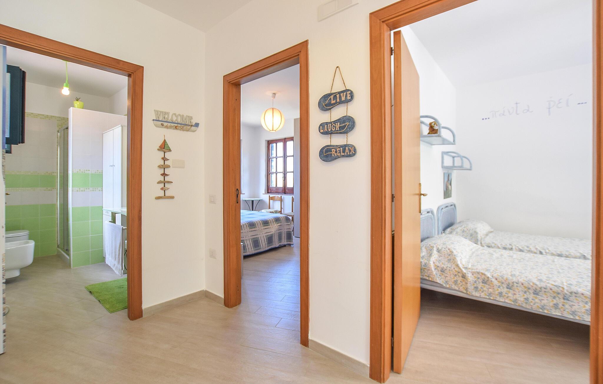 Dette lyse og indbydende feriehus giver jer solrige dage midt i det maleriske landskab. Tryl lækre pastaretter frem sammen i det åbne køkken, og lad den behagelige brise strømme gennem rummene under fælles måltider. På køligere dage kan I tænde op i pejsen og nyde hyggelige spilleaftener med lyden af den sagte knitren fra ilden.