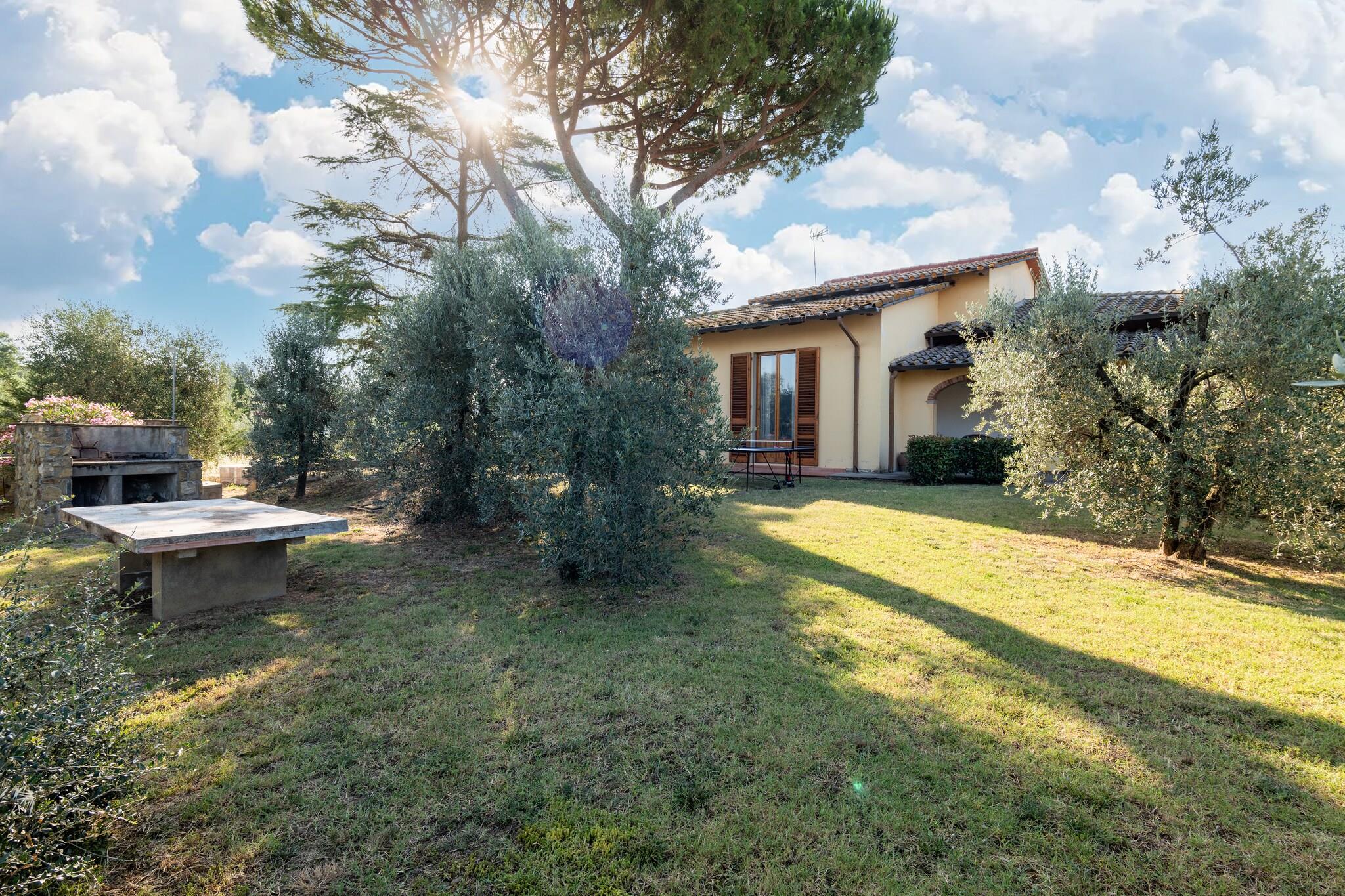 Nyd en afslappende ferie i dette lyse og komfortable dobbelthus, kun 600 m fra den charmerende middelalderlandsby Pergine Valdarno. Huset er designet med komfort i tankerne og kan prale af rummelige interiører og store vinduer, der indrammer panoramaudsigt over bølgende bakker med vinmarker, olivenlunde og middelhavsgrønt. Ideelt til familier eller vennegrupper. Huset er fordelt på en stueetage og et loft. Stueetagen har en rummelig stue med spiseplads og et fuldt udstyret tekøkken. Ovenpå tilbyder loftet et dobbeltværelse med eget brusebad, et værelse med to enkeltsenge, et andet dobbeltværelse med eget brusebad og et fjerde soveværelse med to enkeltsenge. Der er også et komplet badeværelse for ekstra bekvemmelighed. Ejendommen ligger på en fuldt indhegnet grund på 4.800 m² og tilbyder Wi-Fi, aircondition, parkering og uafhængig adgang via en privat have. Udforsk skønheden i Øvre Valdarno, inklusive Casentino Forests National Park, perfekt til vandreture, cykling eller ridning. Dagsture til Arezzo, Cortona og Trasimenosøen er inden for rækkevidde, og shoppere vil elske Prada Outlet (12 km) og Valdichiana Village (53 km). Værtsfamilien bor privat bag ejendommen, hvilket sikrer gæsternes fuldstændige privatliv.