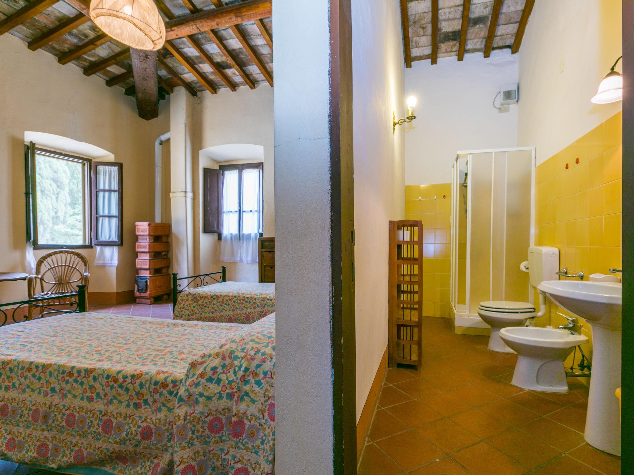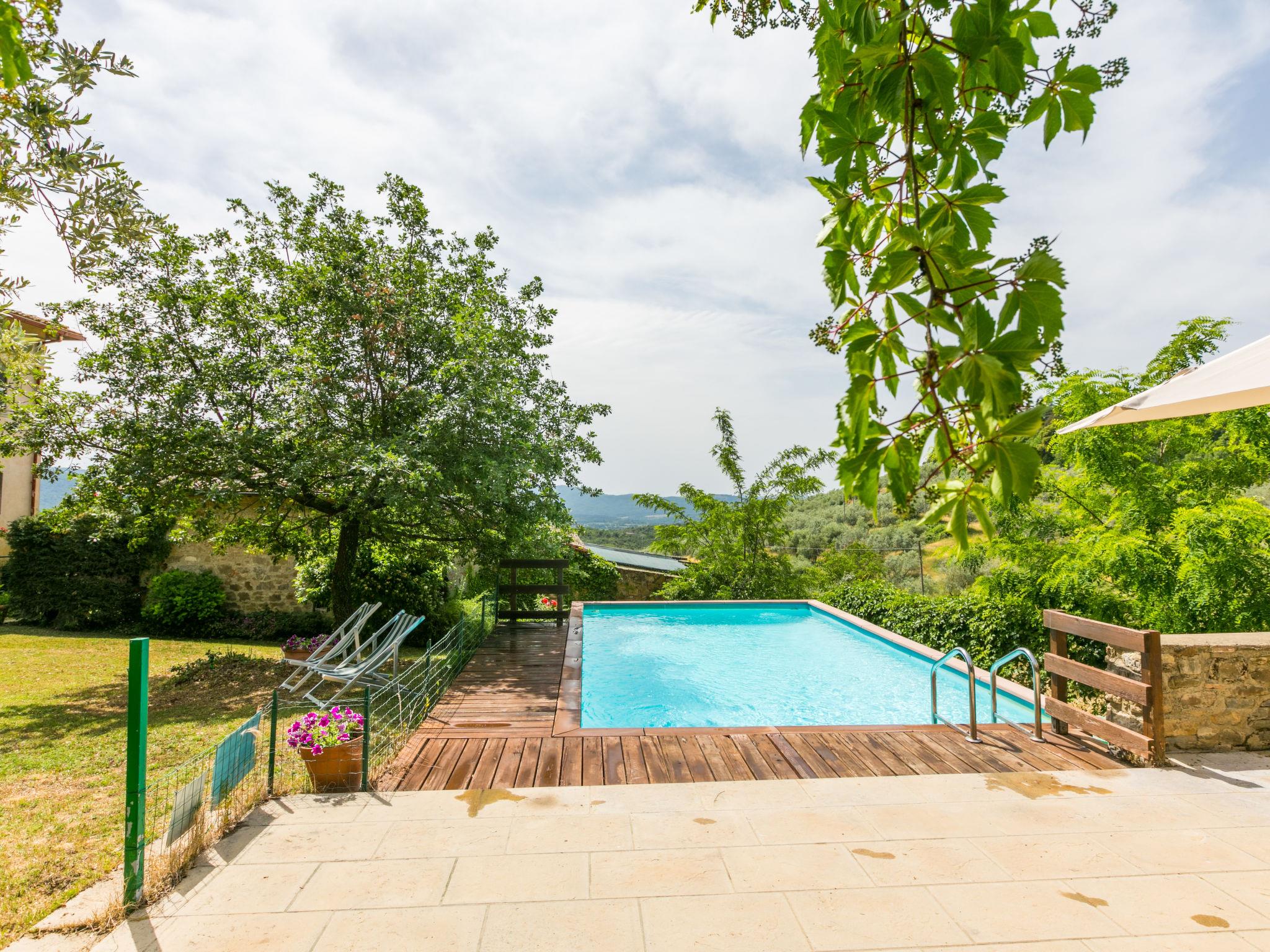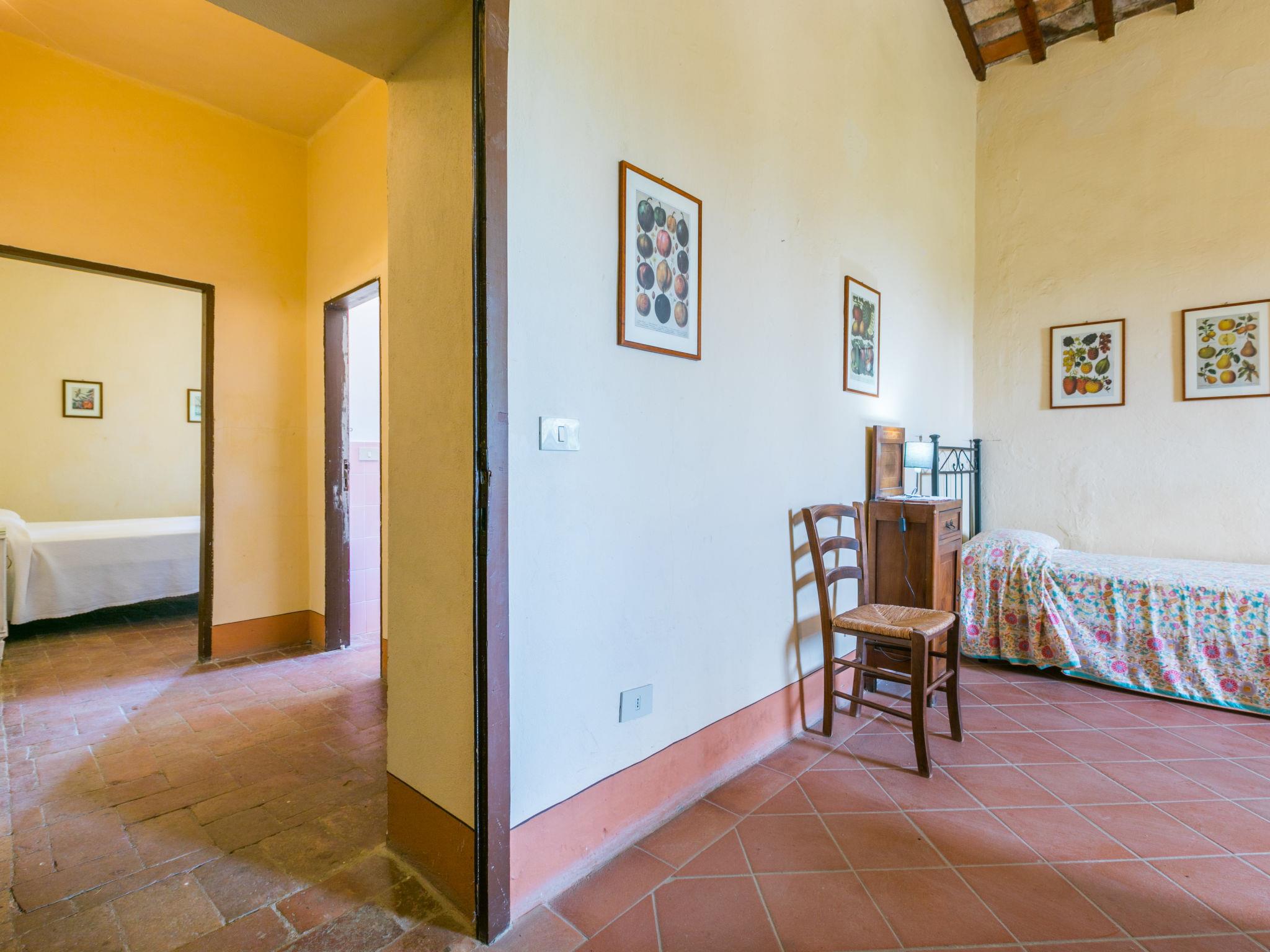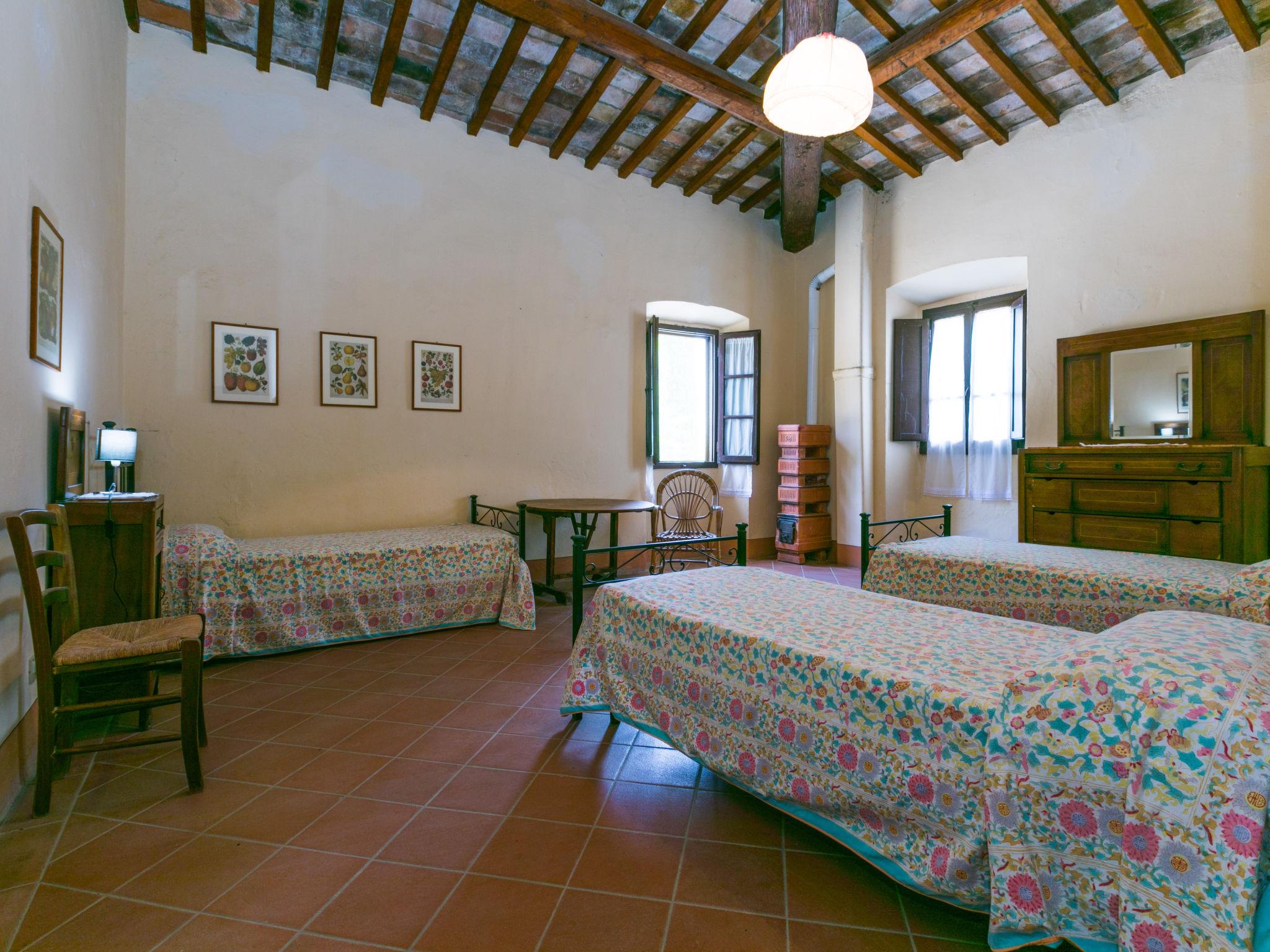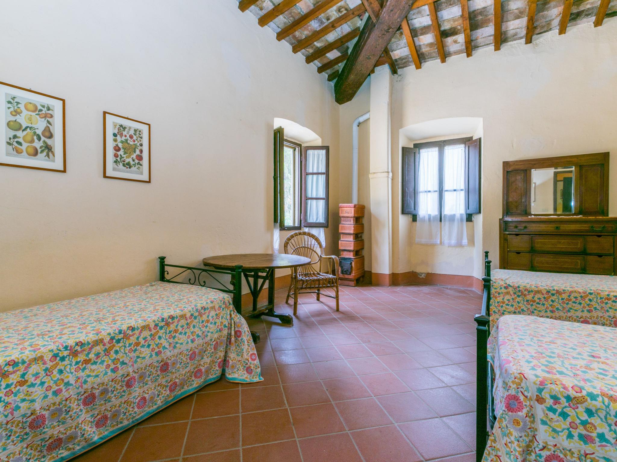 Country house "Buca dei Merli", from the 17th century. 2 km from the centre of Pergine Valdarno, 4 km from the centre of Laterina, 8 km from the centre of Levane, in the countryside. Private: property 200 m2 (fenced), natural garden, meadow, swimming pool (above ground) (9 x 4 m, seasonal availability: 30.May. - 19.Sep.). Motor access (3 km via unmade road). Parking on the premises. Shop 4 km, supermarket 8 km, bus stop 2 km. Nearby attractions: Castello di Montozzi, Arezzo 20 km, Cortona 45 km, Firenze 65 km. Please note: car recommended.