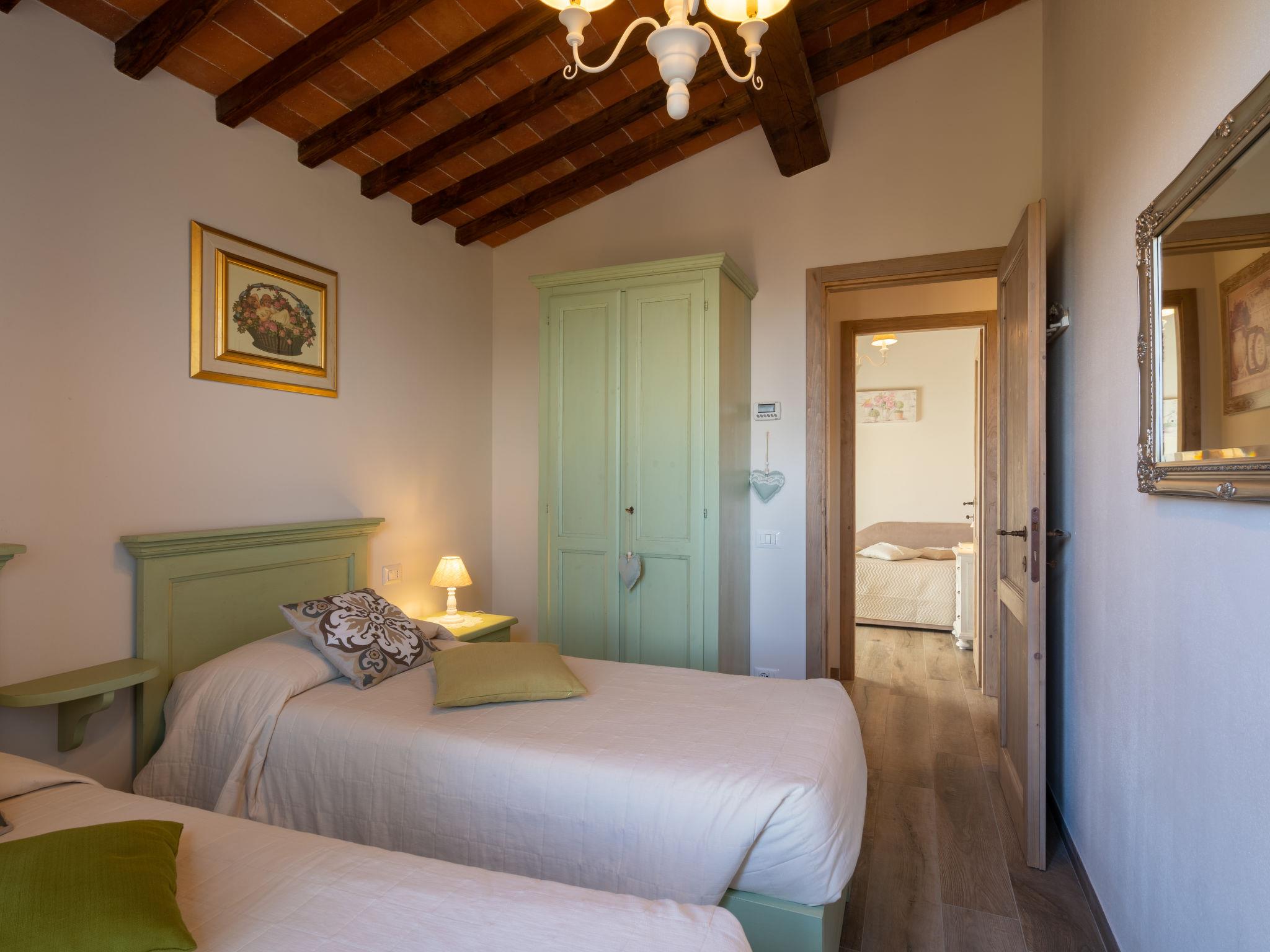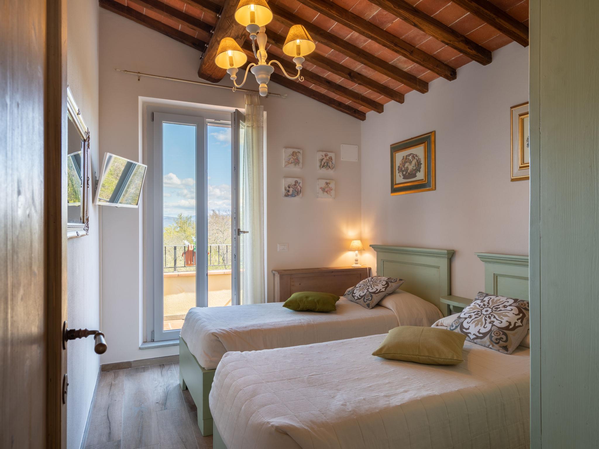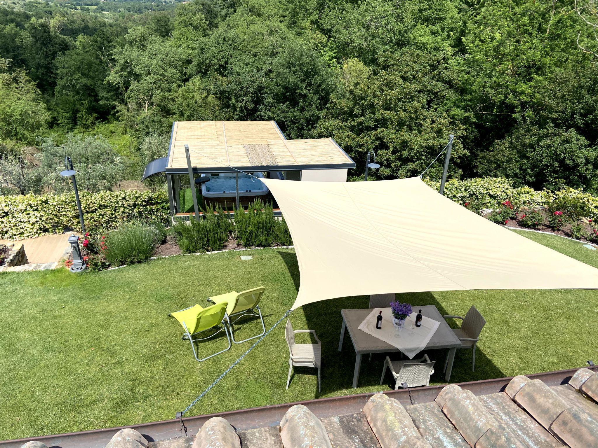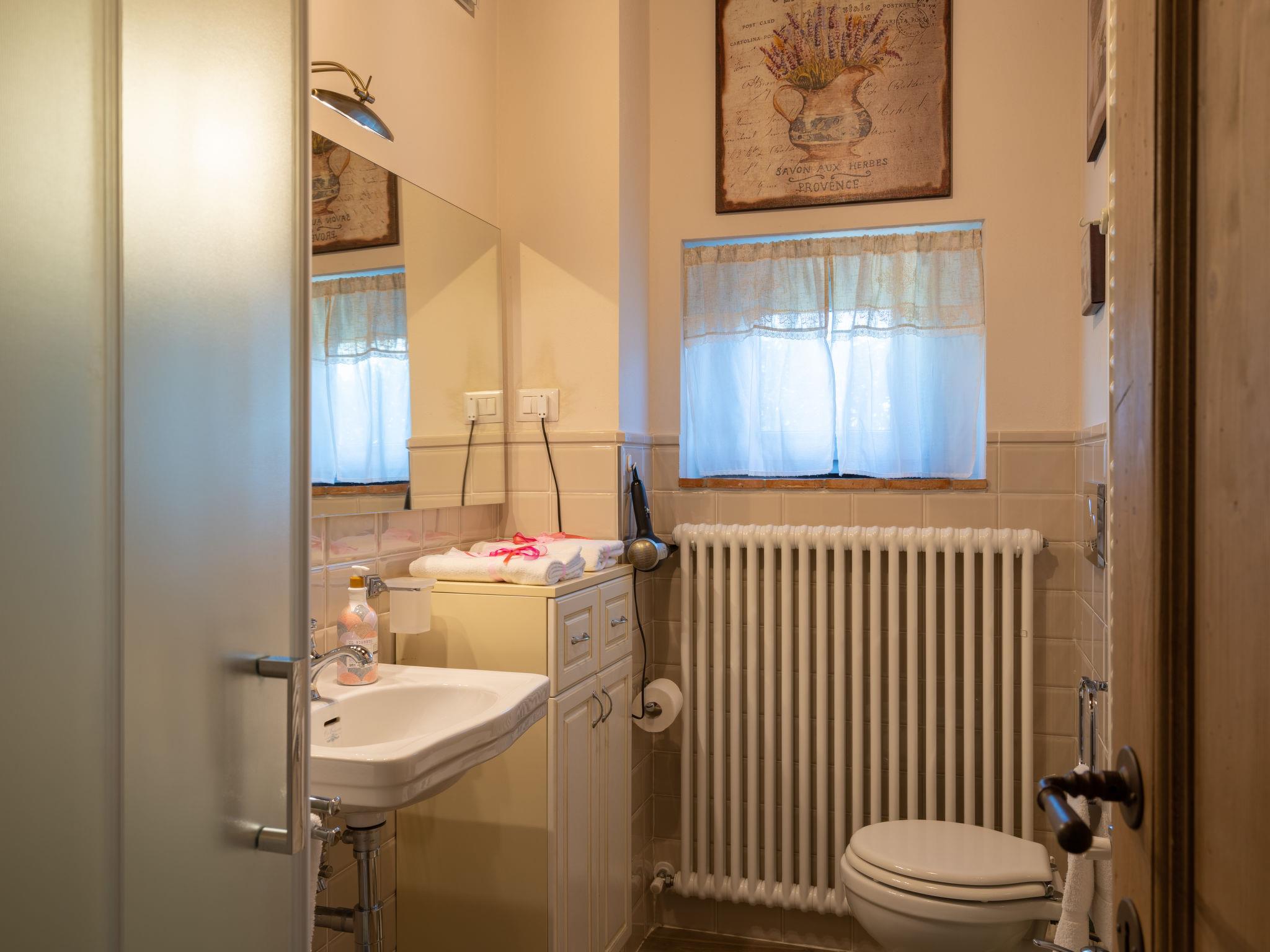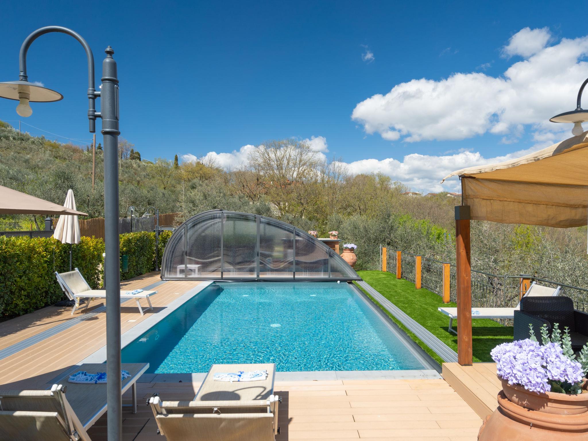 Comfortable single-family house "Pianelli". 1 km from the centre of Pergine Valdarno, 15 km from the centre of Arezzo, 40 km from the centre of Siena, on a slope, in the countryside. Private: property 1'500 m2 (fenced), terraced garden lawn and wildlife garden, swimming pool heated (8 x 4 m, seasonal availability: 10.Apr. - 25.Oct., extra). Outdoor shower, pergola, terrace, garden furniture, barbecue, pool maintenance by the owner/gardener. In the house: sauna (extra). Hot tub (extra). Burglar alarm system. 500 m long motor access (via unmade road). Parking (for 2 cars) on the premises. E-charging station. Supermarket 1 km, bus stop 1 km. Nearby attractions: Arezzo 20 km, Firenze 65 km, Monte San Savino 29 km, Cortona 48 km, Castiglion Fiorentino 37 km. Guarded residence.