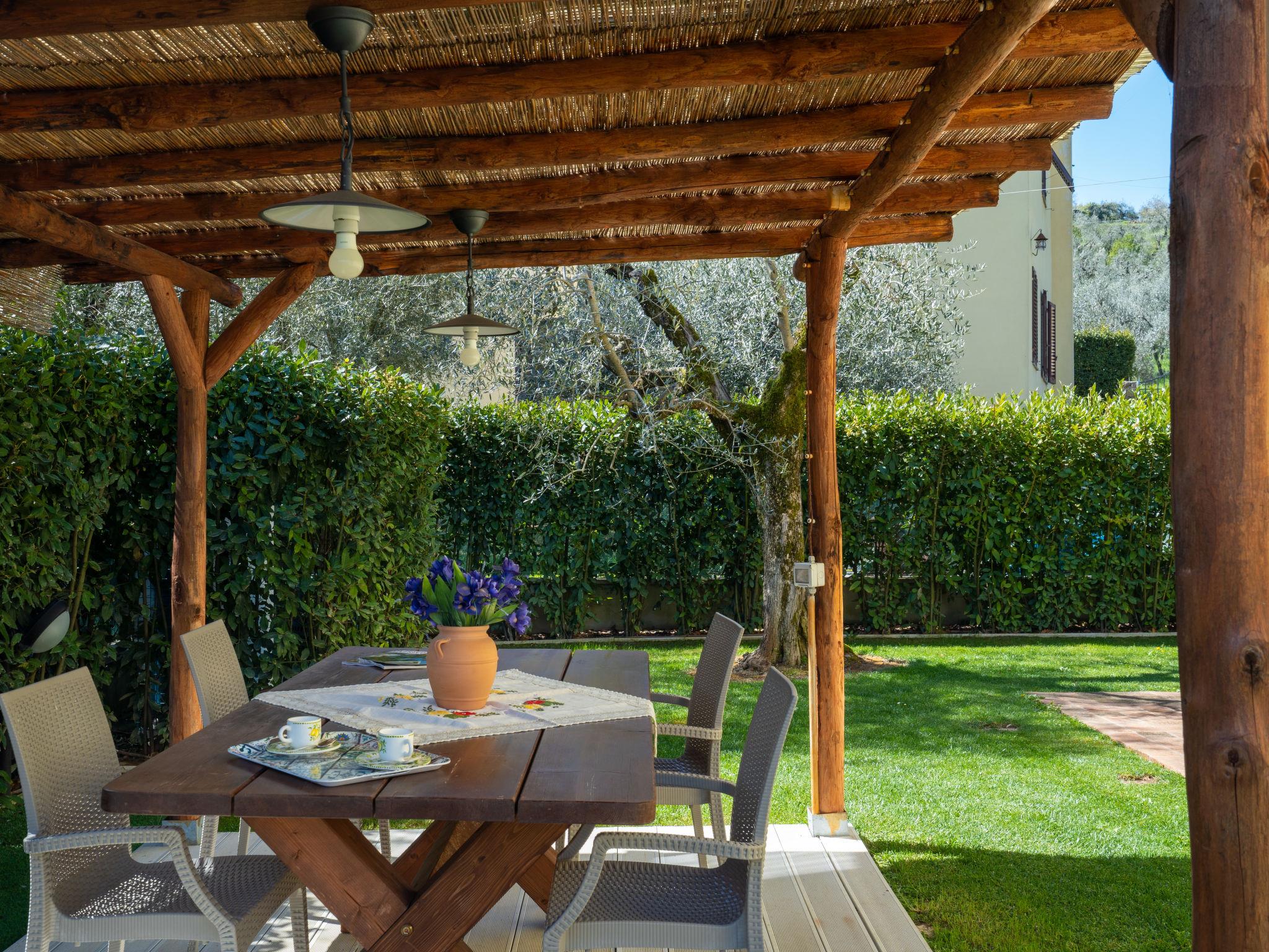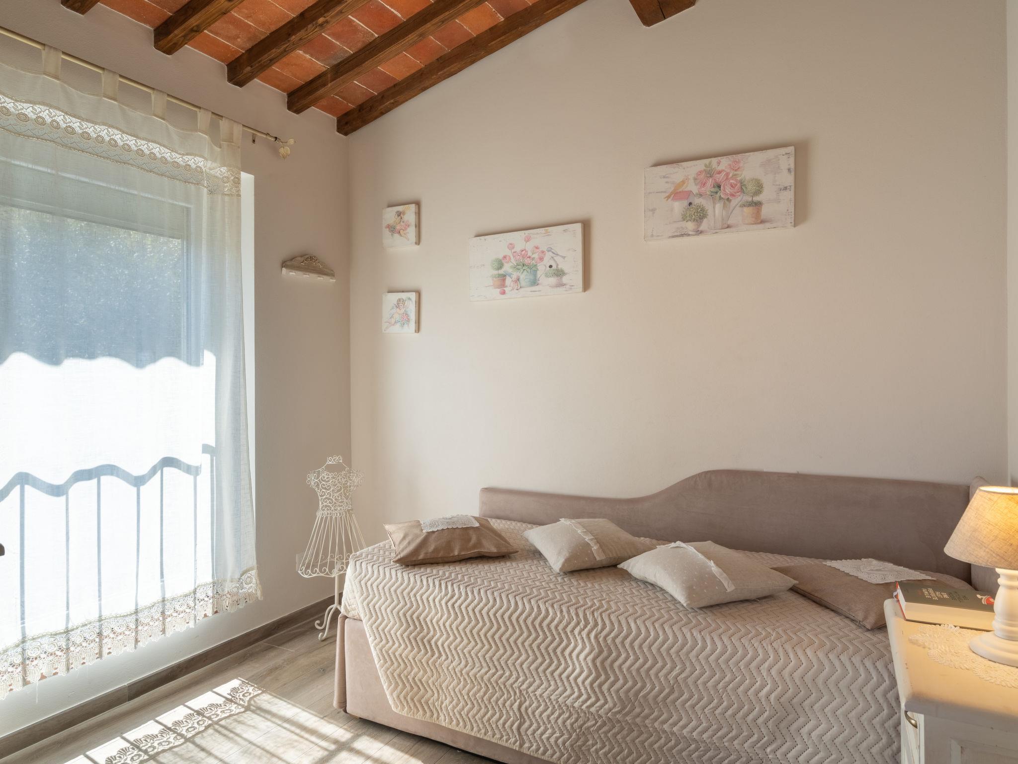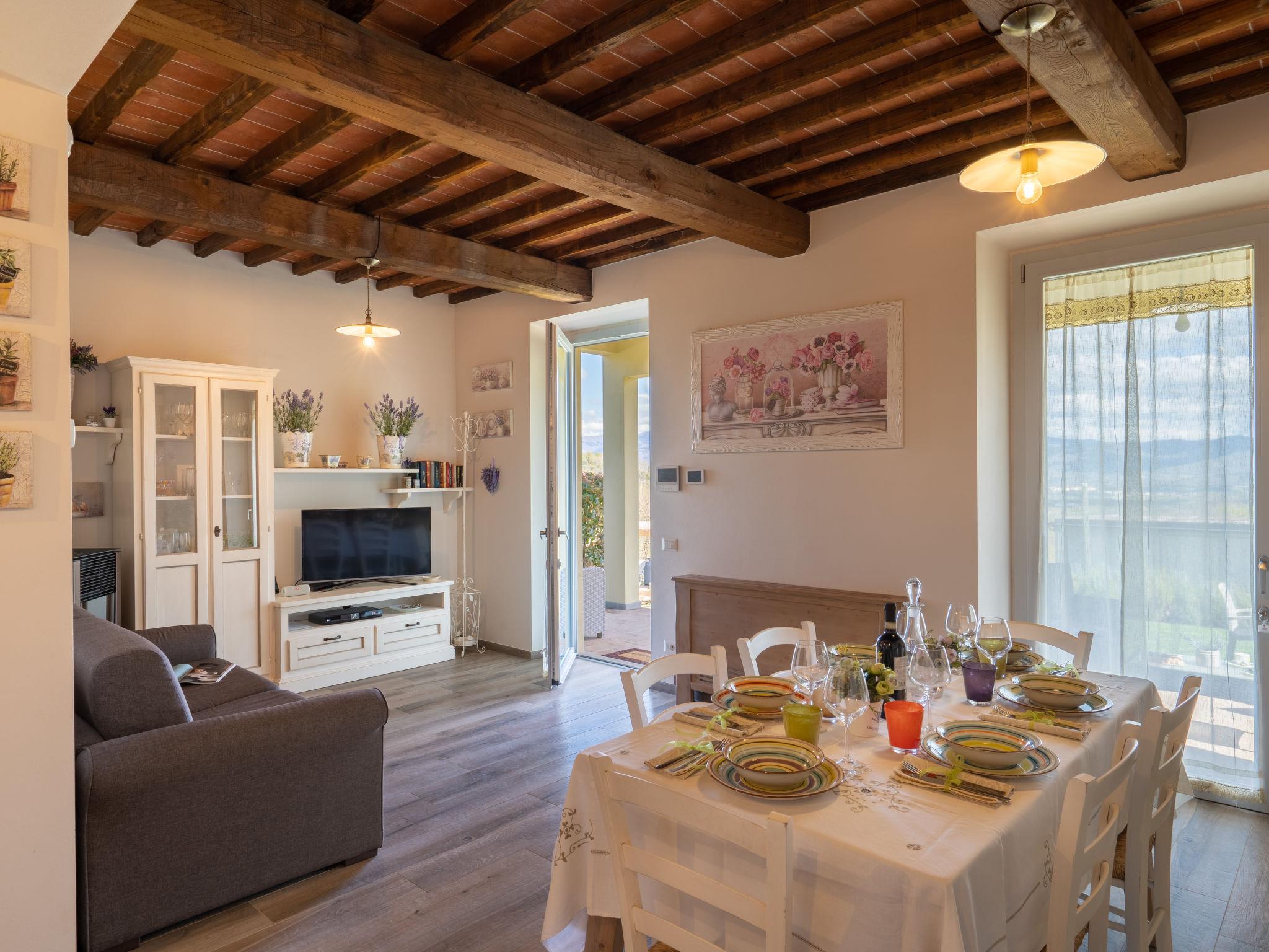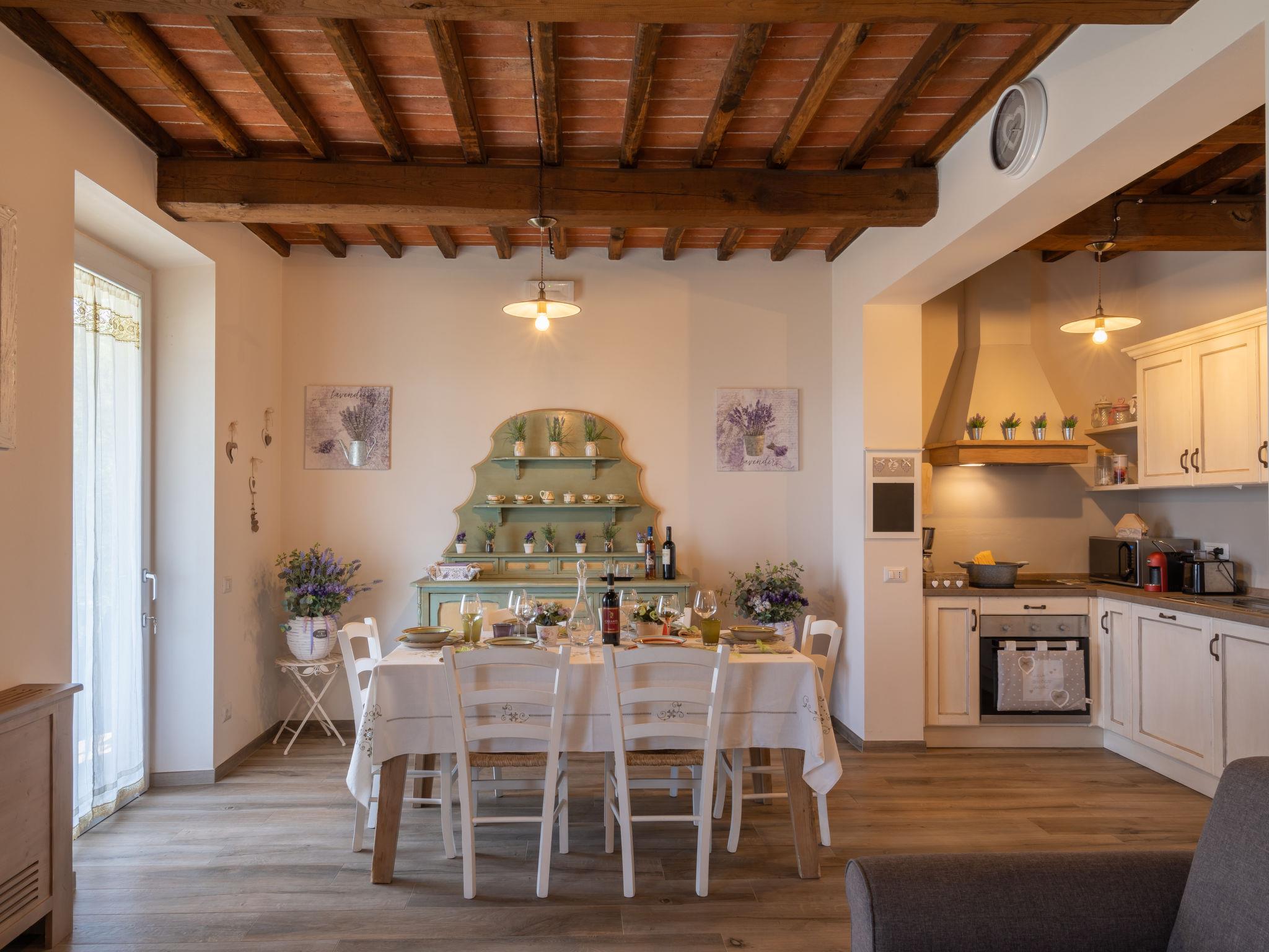 Comfortable single-family house "Pianelli". 1 km from the centre of Pergine Valdarno, 15 km from the centre of Arezzo, 40 km from the centre of Siena, on a slope, in the countryside. Private: property 1'500 m2 (fenced), terraced garden lawn and wildlife garden, swimming pool heated (8 x 4 m, seasonal availability: 10.Apr. - 25.Oct., extra). Outdoor shower, pergola, terrace, garden furniture, barbecue, pool maintenance by the owner/gardener. In the house: sauna (extra). Hot tub (extra). Burglar alarm system. 500 m long motor access (via unmade road). Parking (for 2 cars) on the premises. E-charging station. Supermarket 1 km, bus stop 1 km. Nearby attractions: Arezzo 20 km, Firenze 65 km, Monte San Savino 29 km, Cortona 48 km, Castiglion Fiorentino 37 km. Guarded residence.