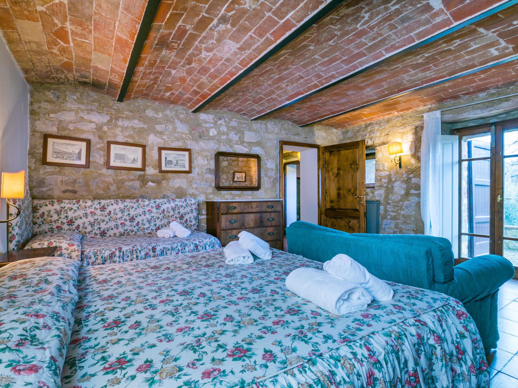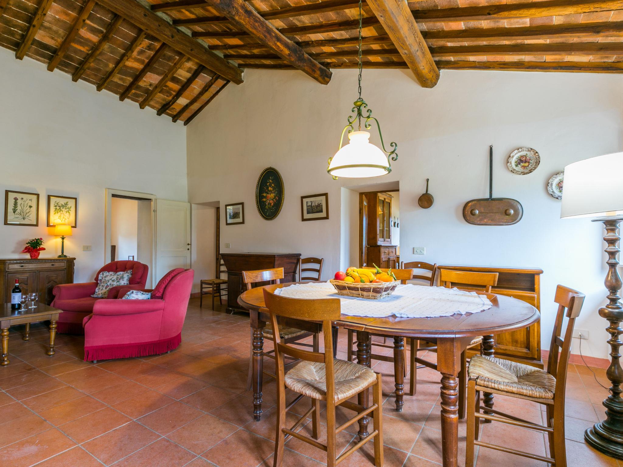 "rustico" cottage "Il Laghetto". 4 km from the centre of Pergine Valdarno, 25 km from the centre of Arezzo, 35 km from the centre of Siena, in a quiet position. Private: property, trees, natural garden, meadow, swimming pool (above ground) (8 x 4 m, seasonal availability: 15.May. - 01.Oct.). Table tennis. Motor access (2.9 km via unmade road). Parking on the premises. Shop 4 km, supermarket 5 km, bus stop 2.1 km, railway station "Laterina" 3 km. Nearby attractions: Castello di Montozzi reception 1.8 km. Local sale of farm products.