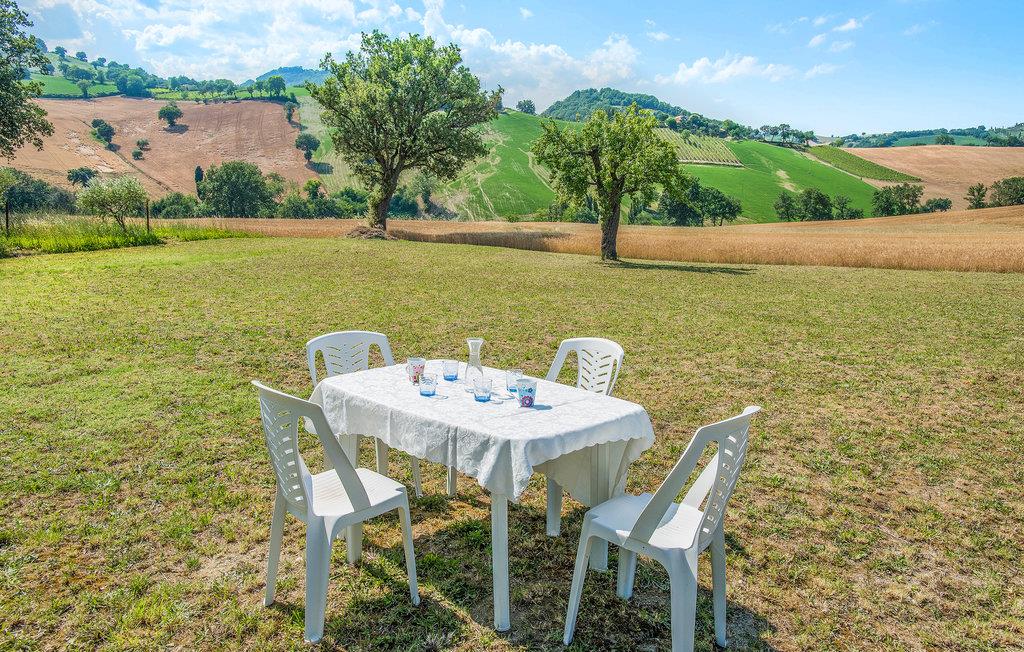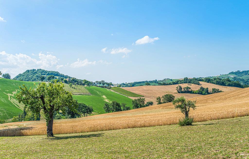 I bakkerne tæt på landsbyen Montevecchio ligger denne ferielejlighed. Denne typisk italienske landsby i kommunen Pergola i provinsen Pesaro består udelukkende af bondegårde. Landsbyens navn skyldes den gamle slægt af greven af Montevecchio. Den ligger ved Adriaterkysten, 34 km sydøst for kystbyen Fano. I vil nyde områdets autentiske rigdom: Landskabet, kulturen, duftene og smagen af de lokale traditioner. Fra jeres ferieadresse har I muligheden for at besøge byer som Urbino, middelalderlandsbyer, borge og museer. Regionen har meget at byde på til turister: Sportsmuligheder, landliv og indkøbsstrøg. Af de fire huse i bebyggelsen tjener kun denne som feriebolig. Bygningerne har bibeholdt regionens autentiske charme. Lejligheden er komfortabelt og praktisk indrettet. Tilkørsel ad ca. 800 m grusvej.