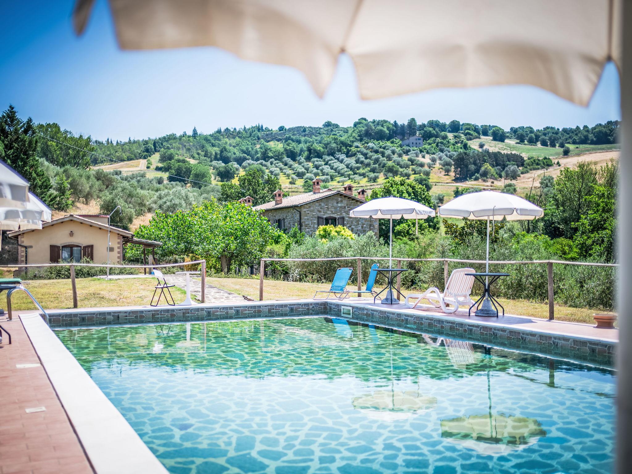 Cosy, comfortable working farm "Giuncheto". For shared use: property 40 ha, garden 1 ha, swimming pool (6 x 12 m, depth 140 cm, seasonal availability: 15.May. - 30.Sep.). Outdoor shower. 500 m long bumpy motor access. Parking on the premises. Grocery 5 km, supermarket 5 km, restaurant 5 km, bar 5 km, bus stop 5 km, railway station "Roma -Firenze" 22 km, bathing lake "Trasimeno" 37 km. Nearby attractions: Assisi 17 km, Gubbio 30 km, San Feliciano 38 km, Spello 36 km, Bevagna 36 km. Please note: car recommended. The owner does not accept any youth groups. Fishing [permit required]. The owner lives on the same property. The tap water has no drinking water quality.