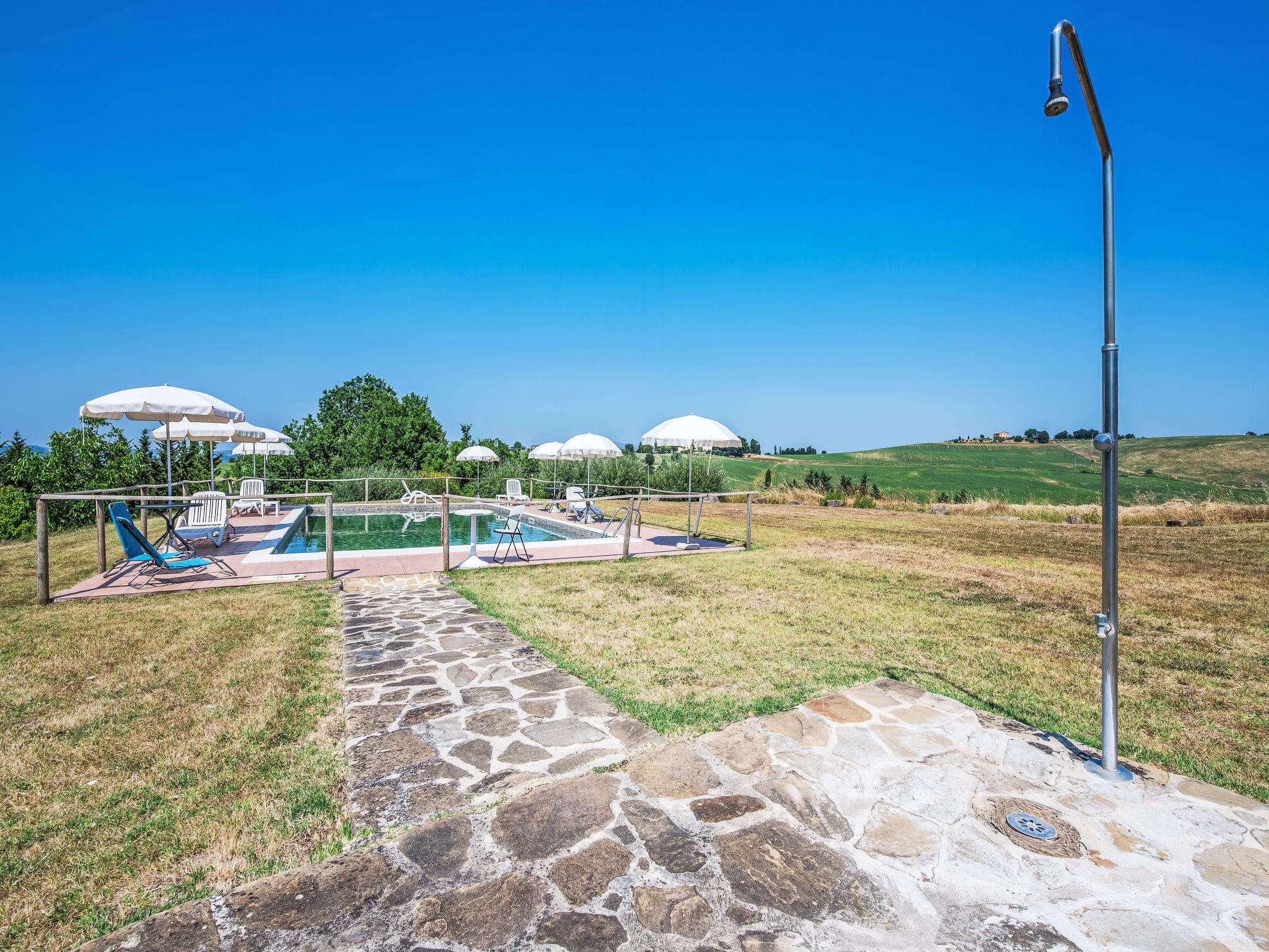 Cosy, comfortable working farm "Giuncheto". For shared use: property 40 ha, garden 1 ha, swimming pool (6 x 12 m, depth 140 cm, seasonal availability: 15.May. - 30.Sep.). Outdoor shower. 500 m long bumpy motor access. Parking on the premises. Grocery 5 km, supermarket 5 km, restaurant 5 km, bar 5 km, bus stop 5 km, railway station "Roma -Firenze" 22 km, bathing lake "Trasimeno" 37 km. Nearby attractions: Assisi 17 km, Gubbio 30 km, San Feliciano 38 km, Spello 36 km, Bevagna 36 km. Please note: car recommended. The owner does not accept any youth groups. Fishing [permit required]. The owner lives on the same property. The tap water has no drinking water quality.